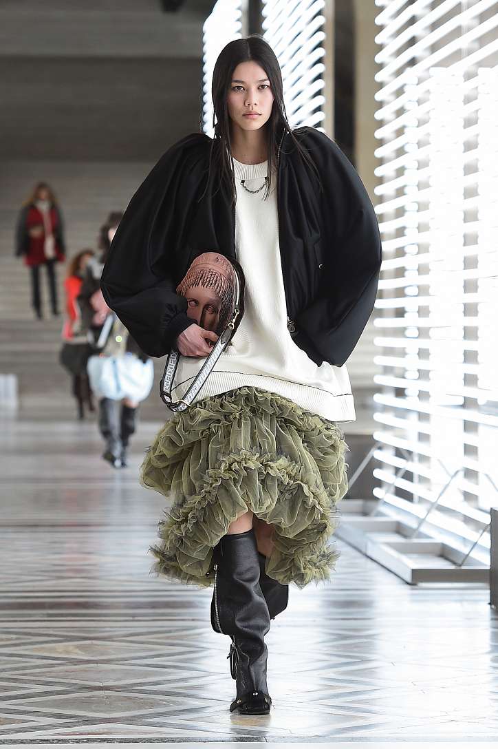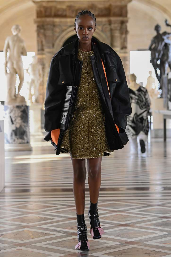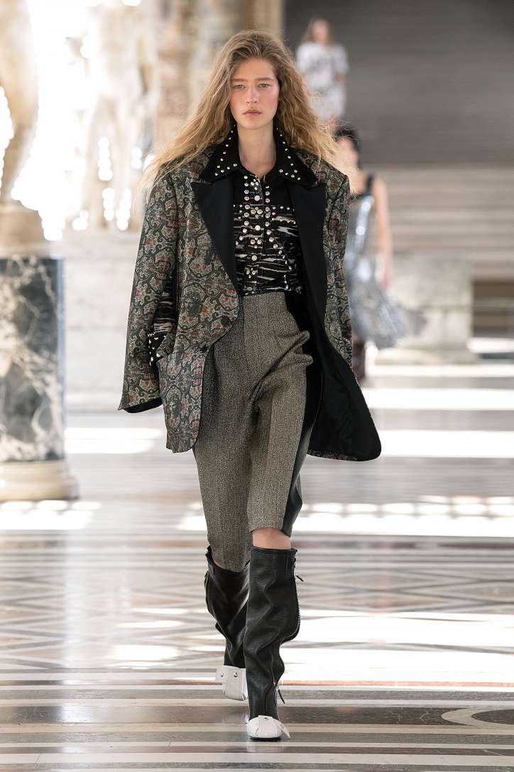Пандемия, вынужденная изоляция и взлетевшая в высь популярность спортивных штанов сподвигли многих дизайнеров на мозговой штурм – в поисках чего-то неординарного. И Николя Жескьер – один из них. В своей новой коллекции он вновь старательно стирает грань между мужским и женским гардеробом, экспериментируя с силуэтами, материалами и фактурами. Пышные юбки с оборками он чередует с бомберами с объёмными рукавами-крыльями, а платья-кольчуги - с куртками-оверсайз.