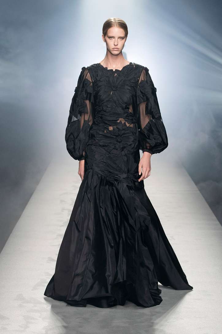 Выполненная в минималистичной и строгой черно-белой гамме, изредка озаряемая всплесками золотого сияния, коллекция получилась чувственной, романтичной, вдохновлённой воспоминаниями, но без ностальгических ноток.