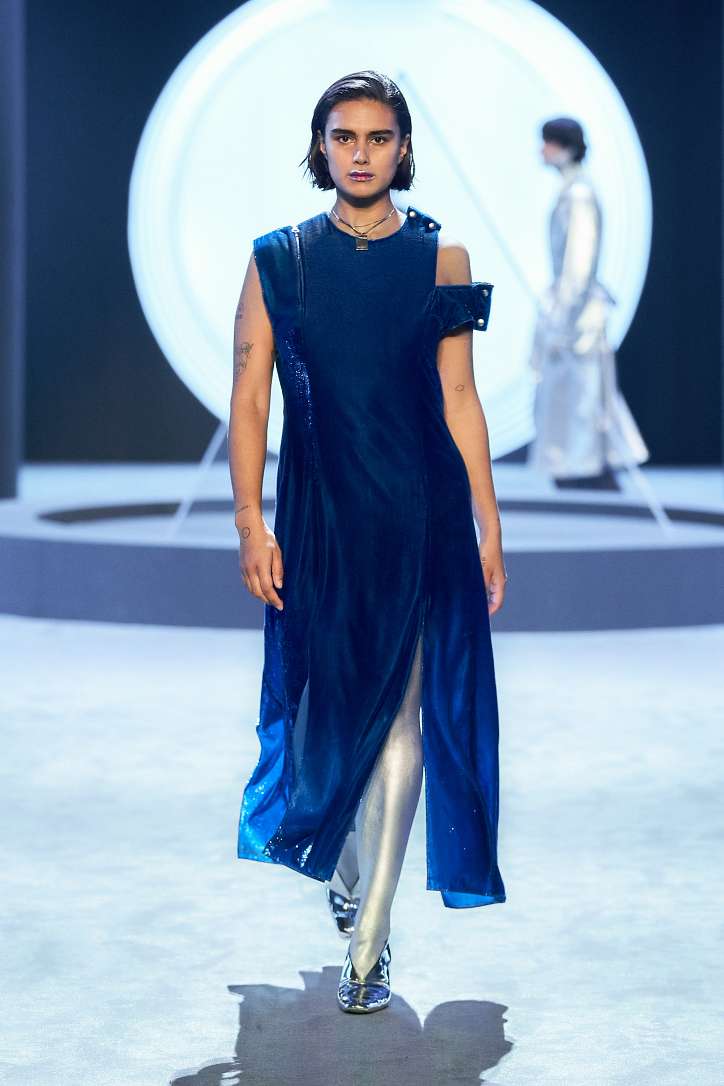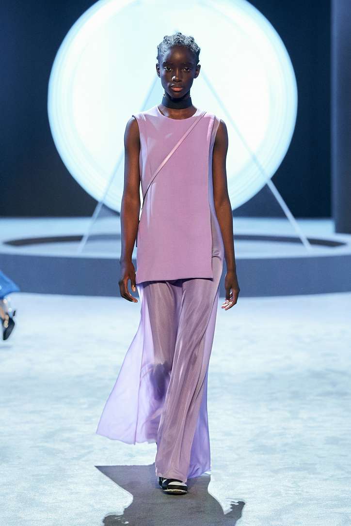 Пол Эндрю решил попробовать себя в режиссуре (вдохновлённый удачным сотрудничеством с Лукой Гуаданьино в прошлом сезоне) – и снял научно-фантастический фильм. Виртуальная реальность, компьютерная графика и отсылки к фильму «Гаттака» в виде освещённых тоннелей и пролетающих «за окном» космических кораблей стали декорациями для коллекции, в которую вошли футуристические боди и комбинезоны, длинные пальто, жакеты и брюки из ПВХ (кстати, биоразлагаемого).