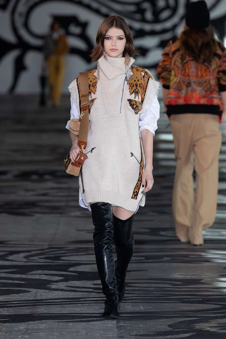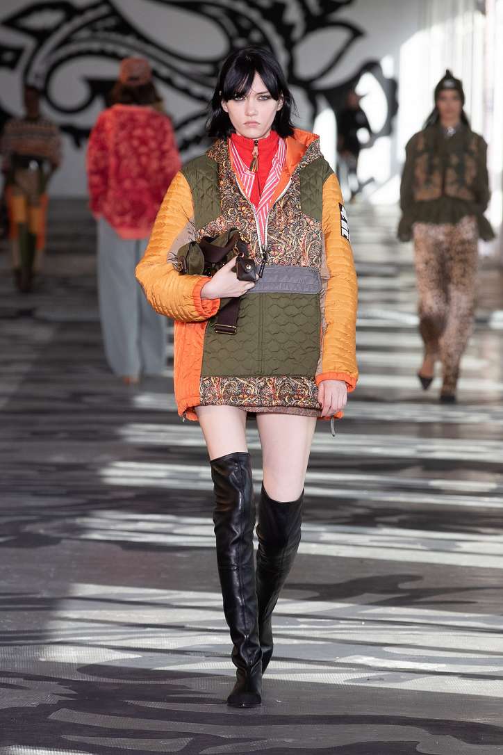 Выйдя из «зоны комфорта» и ещё дальше дистанцируясь от своей богемной эстетики, дизайнер предлагает примерить городской стиль: стёганные куртки и пальто в стиле пэчворк, уютный трикотаж и толстовки, выстиранные джинсы и леггинсы, бомберы и широкие брюки, парки и пуховики.