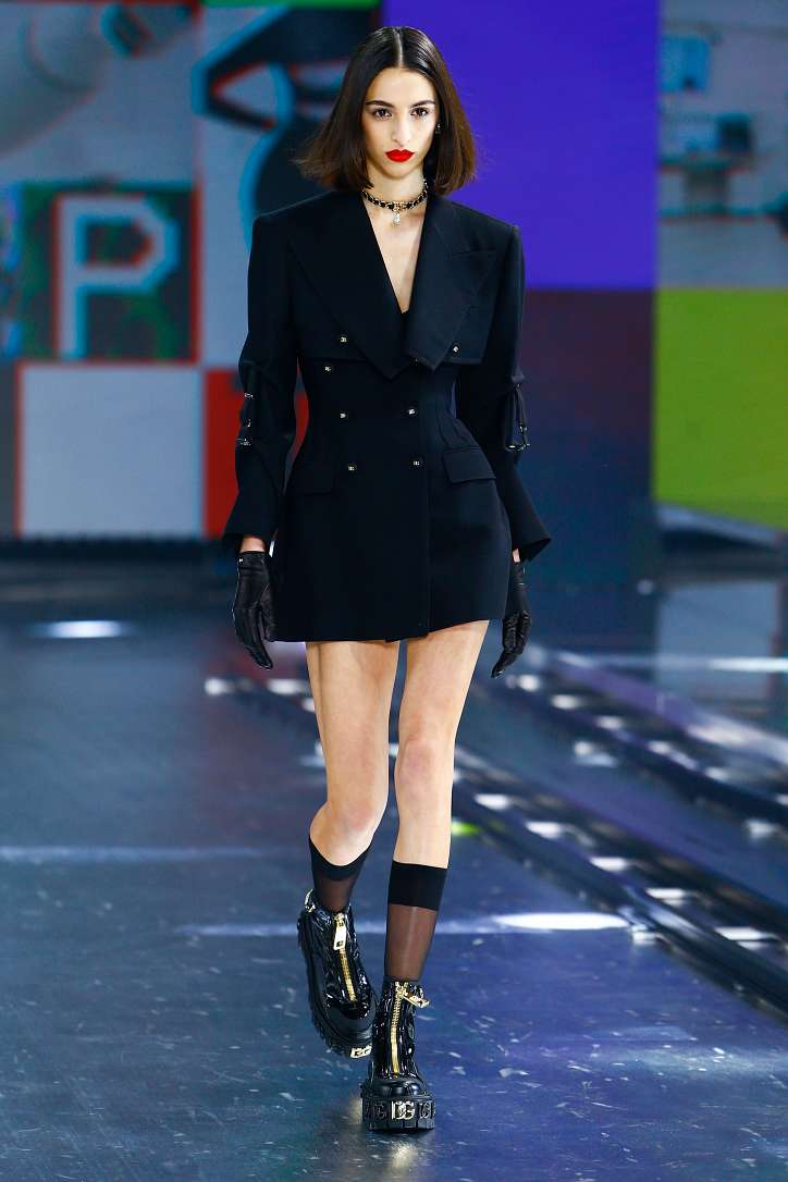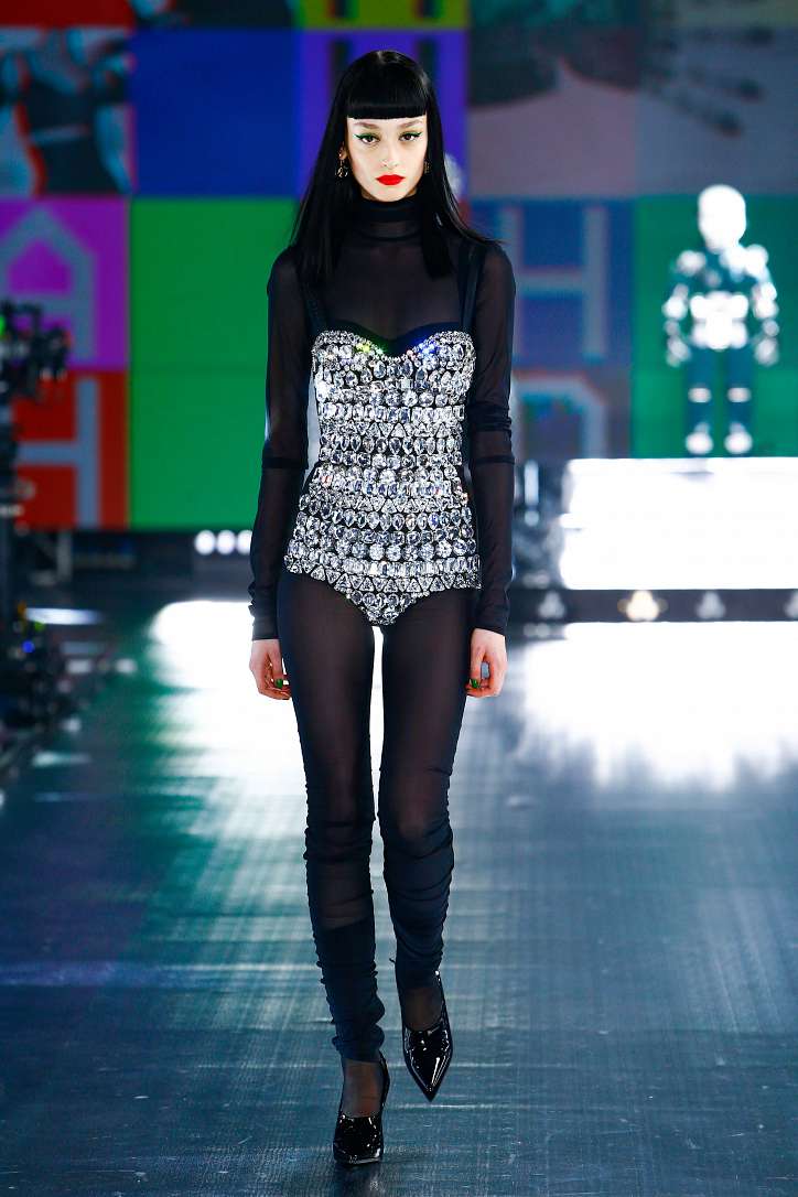 Свою новую коллекцию итальянский дуэт посвятил нашей новой цифровой реальности, так что появление на подиуме роботов вместе с моделями было вполне оправдано. Но переосмыслению подвергся не только формат шоу, но и сама экспериментальная одежда: Доменико Дольче и Стефано Габбана предлагают микс из силуэтов-оверсайз, футуристического дизайна, высокотехнологичных материалов, металлика, ярких цветов, блестящих фактур, пластика, шерсти и «веганских» вещей.