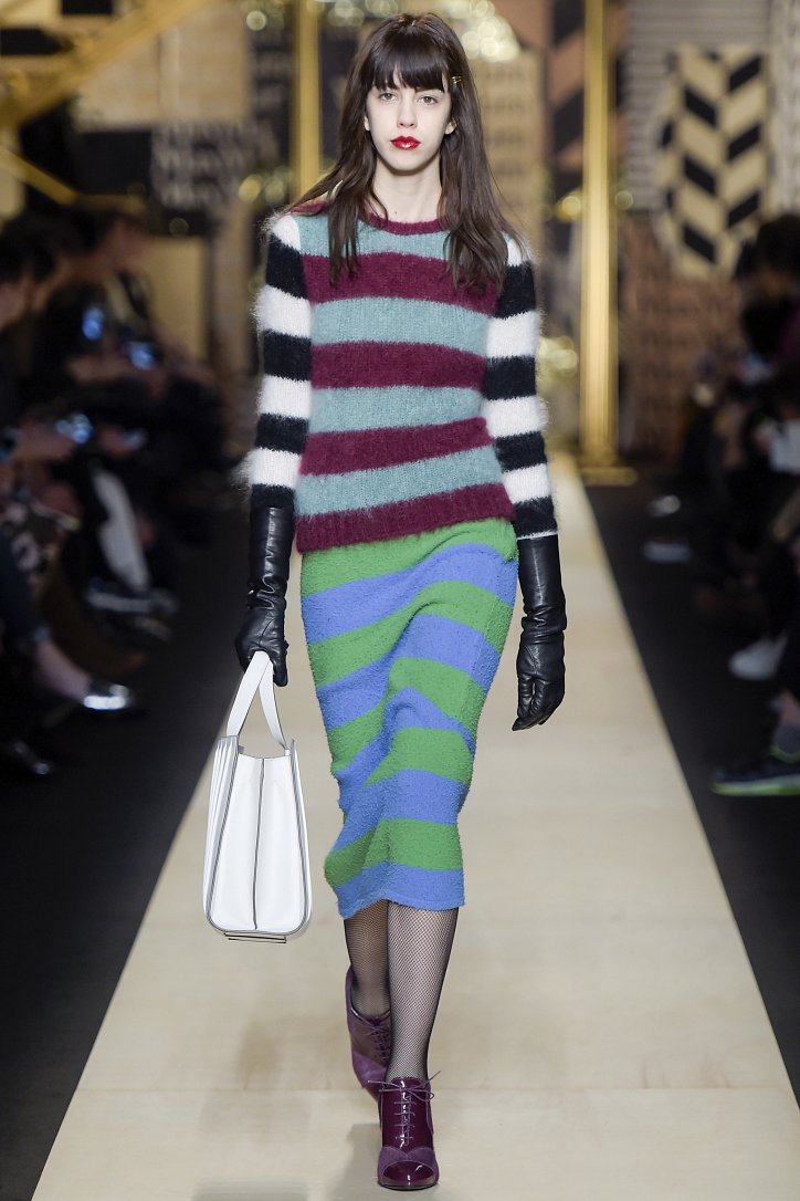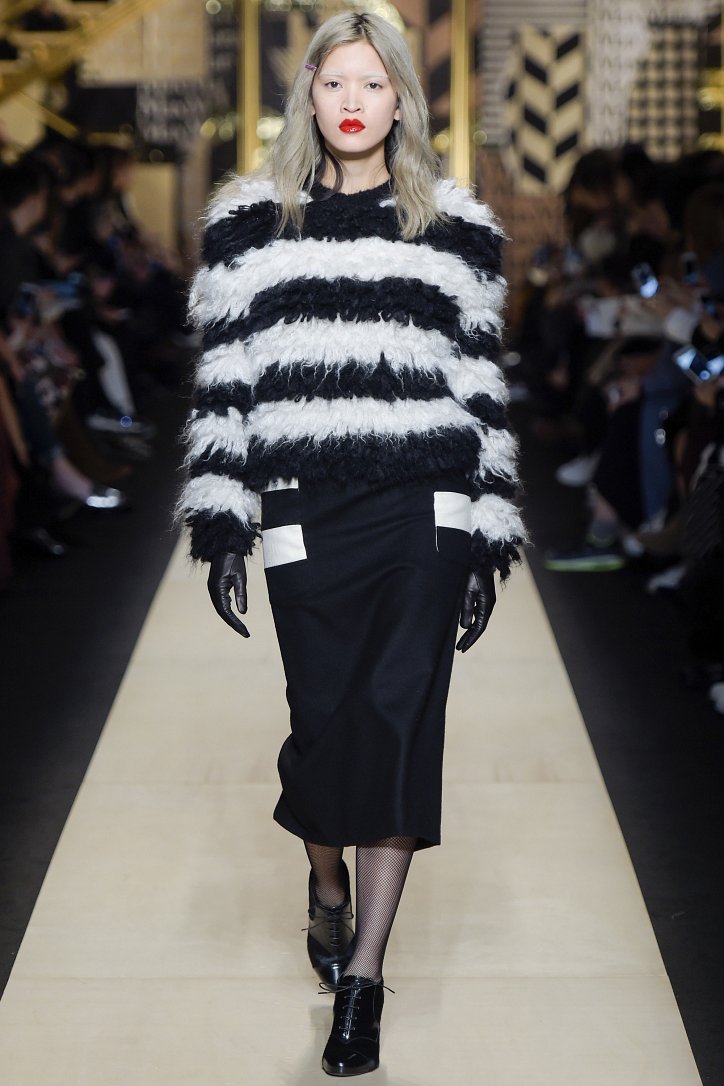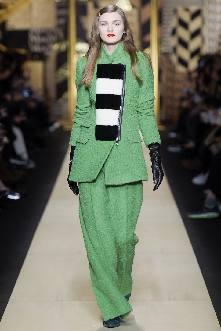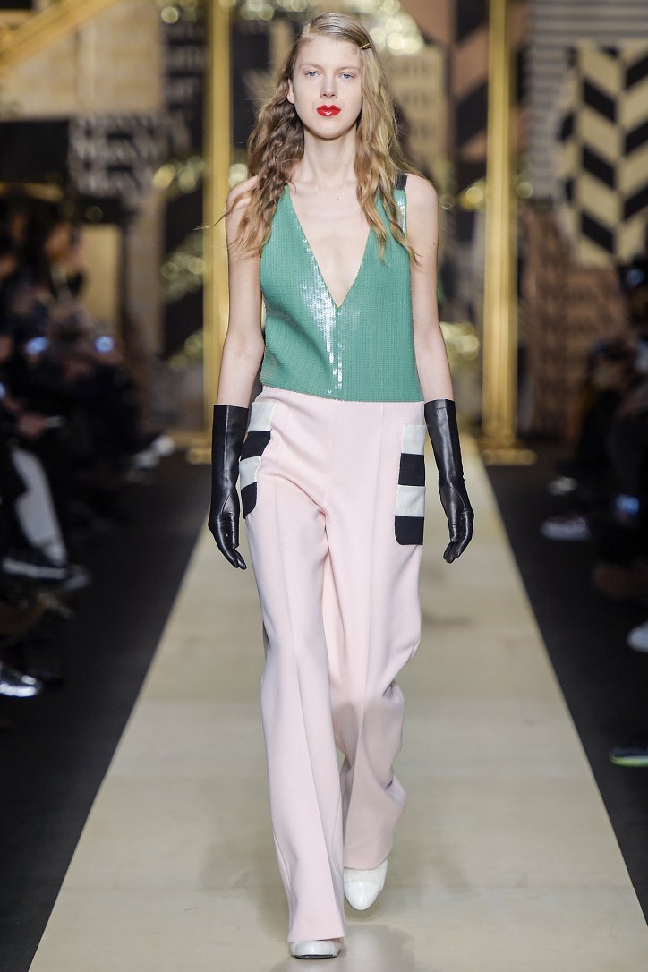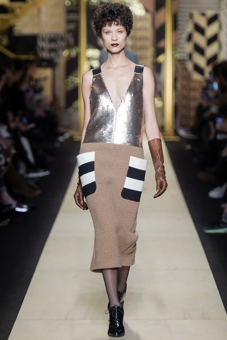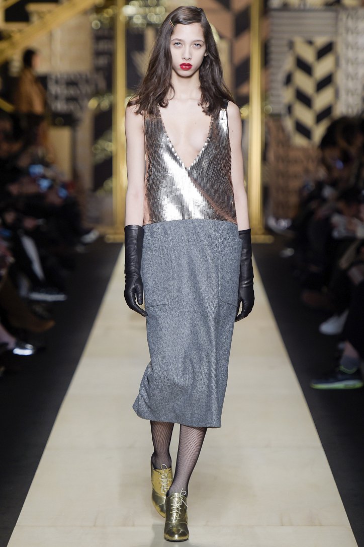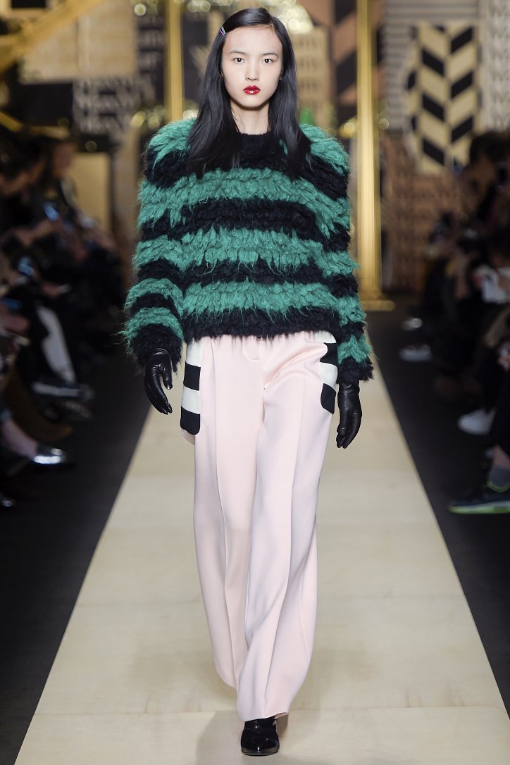 Ничто не предвещало неожиданностей: «фирменные» пальто цвета camel открыли показ новой коллекции Max Mara осень-зима 2016-2017. Но затем гости дефиле с удивлением стали замечать, что модели в бежевых пальто как-то странно поблескивают… Вначале мерцание исходило от обуви, а затем и мини-комбинезон под классическим пальто вспыхнул золотом! Дальше начался настоящий хоровод из расшитых пайетками пуловеров и «позолоченных» длинных пальто, ярких «мазков» оранжевого и голубого в верхней одежде, трикотаже и обуви, смелых сочетаний синего и зеленого в образах, комбинировании фактур и всевозможных полосок!