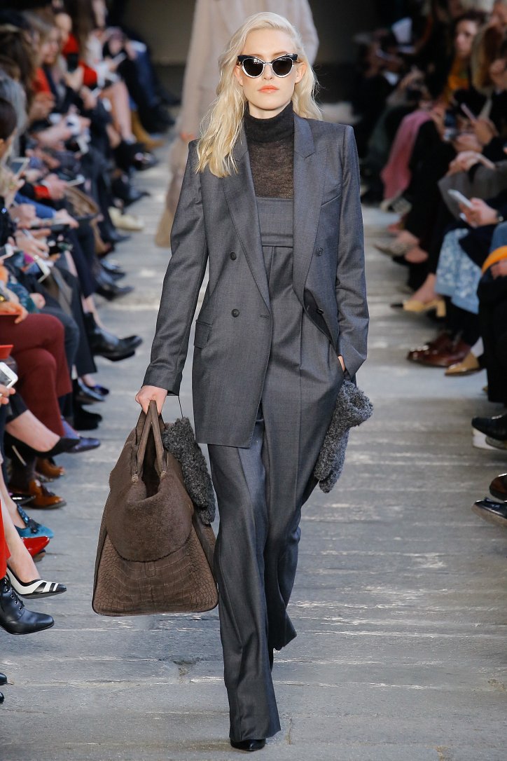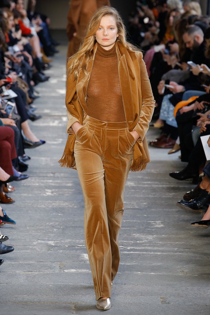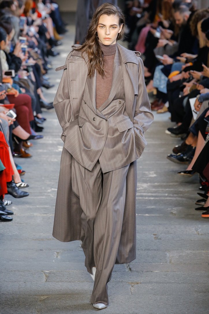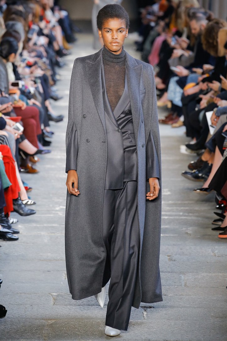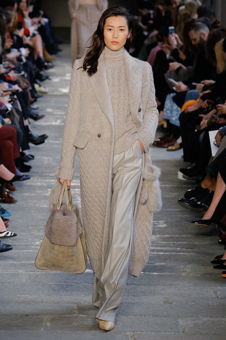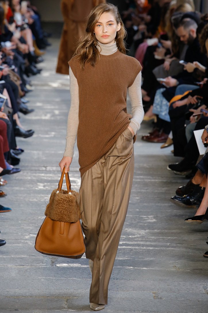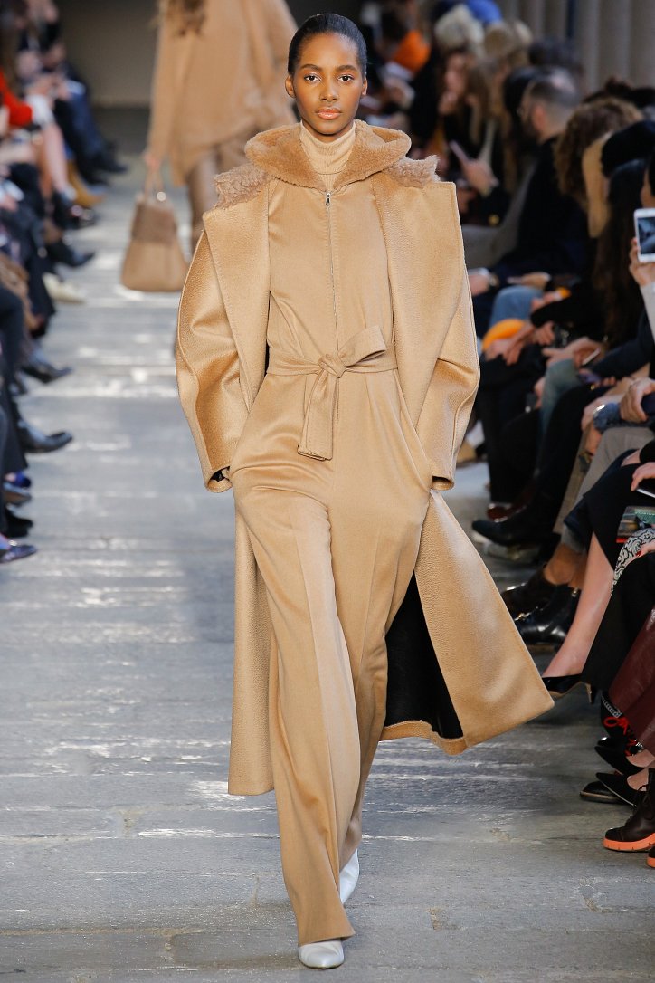 Что может быть лучше и уютнее бежево-коричневой палитры? Только несколько оттенков коричневого, собранных в одном образе! Любовь Max Mara к этой цветовой гамме всем давно известна, а новая коллекция Max Mara осень-зима 2017-2018 стала тому еще одним подтверждением. Модели демонстрировали «фирменные» длинные пальто свободного (и очень свободного) силуэта, мягкие пуловеры с косами, широкие брюки, полупрозрачные водолазки, костюмы и юбки-карандаш – все это выглядело невероятно уютно, тепло и «вкусно» - благодаря сочетанию оттенков карамели, коньяка, молочного шоколада, ванили и других теплых оттенков коричневого, которые дизайнеры немного «разбавили» красными, черными и серыми луками.