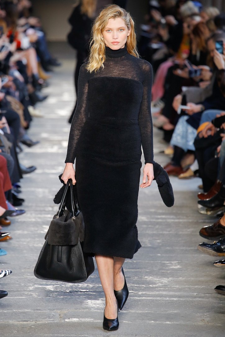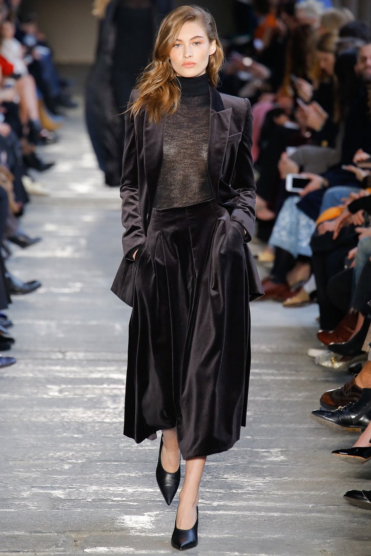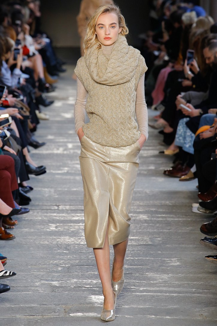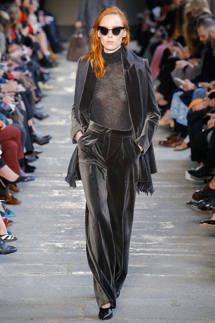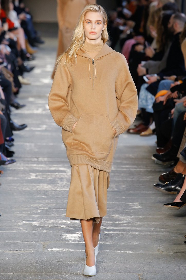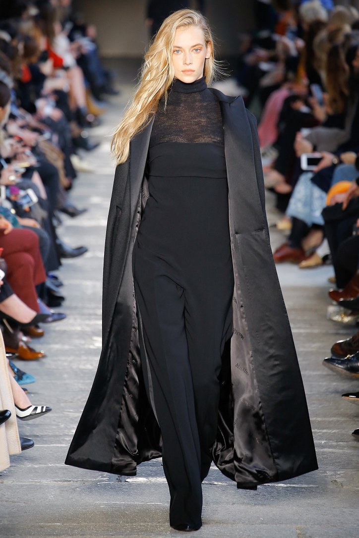 Что может быть лучше и уютнее бежево-коричневой палитры? Только несколько оттенков коричневого, собранных в одном образе! Любовь Max Mara к этой цветовой гамме всем давно известна, а новая коллекция Max Mara осень-зима 2017-2018 стала тому еще одним подтверждением. Модели демонстрировали «фирменные» длинные пальто свободного (и очень свободного) силуэта, мягкие пуловеры с косами, широкие брюки, полупрозрачные водолазки, костюмы и юбки-карандаш – все это выглядело невероятно уютно, тепло и «вкусно» - благодаря сочетанию оттенков карамели, коньяка, молочного шоколада, ванили и других теплых оттенков коричневого, которые дизайнеры немного «разбавили» красными, черными и серыми луками.