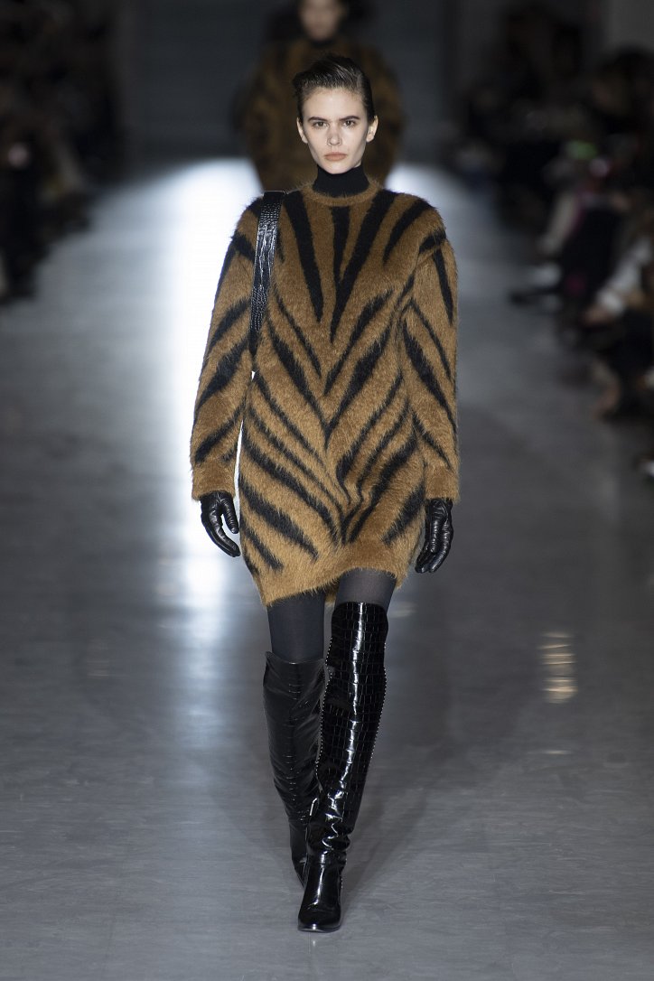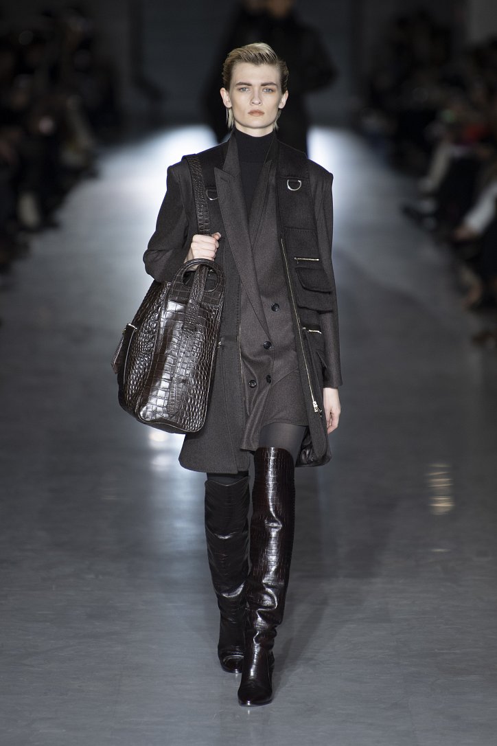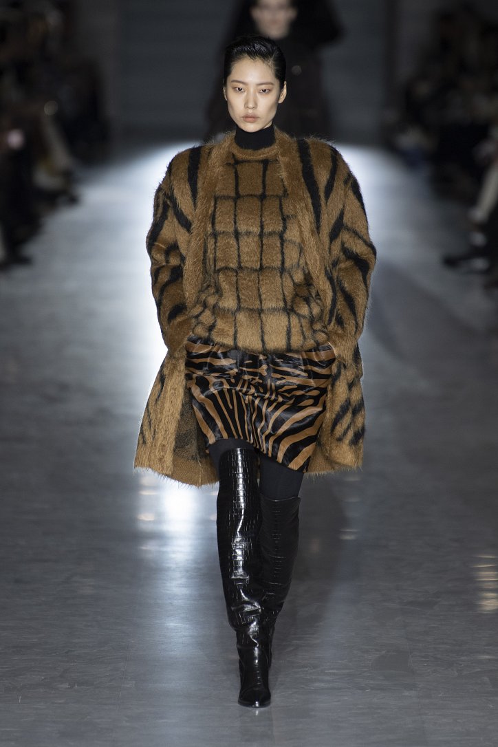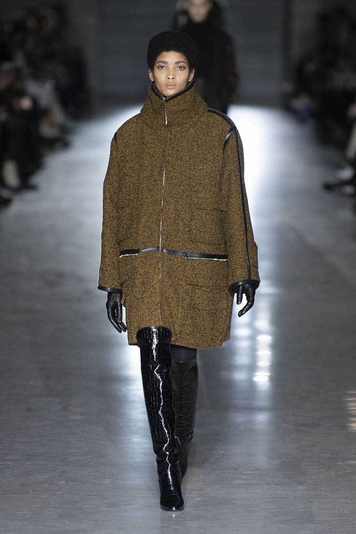 Оригинальную интерпретацию получили и кардиганы – их будущей зимой можно будет надевать поверх костюма. Что, правда, последний – с мини-юбкой, спрятавшейся под жакетом, и яркого, кислотного цвета. Но неон – скорее, исключение: явными фаворитами были бежево-коричневые оттенки.