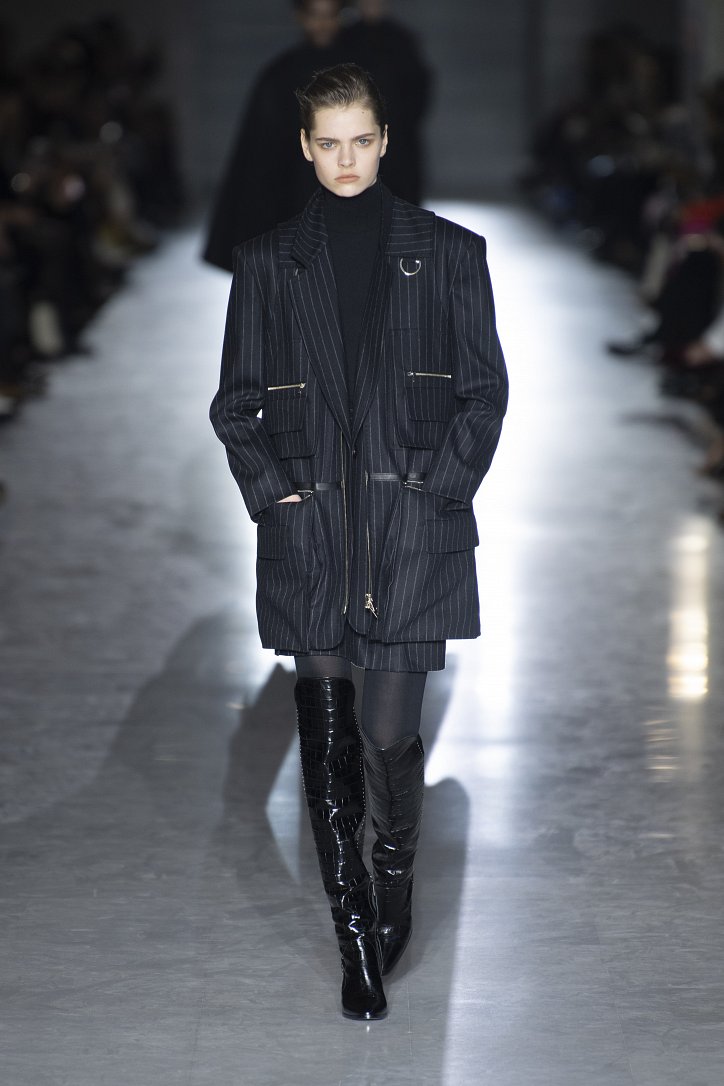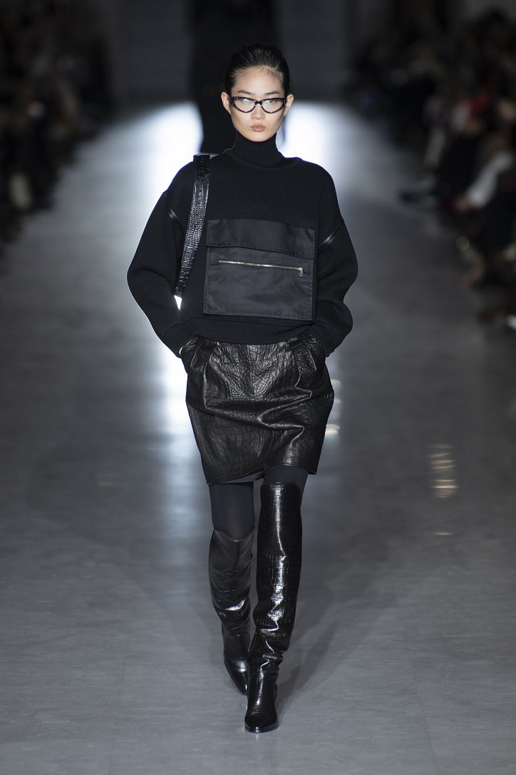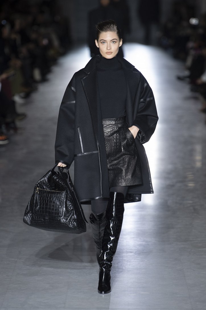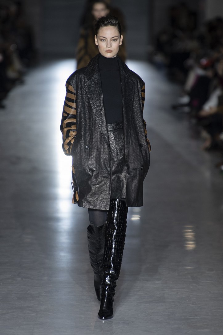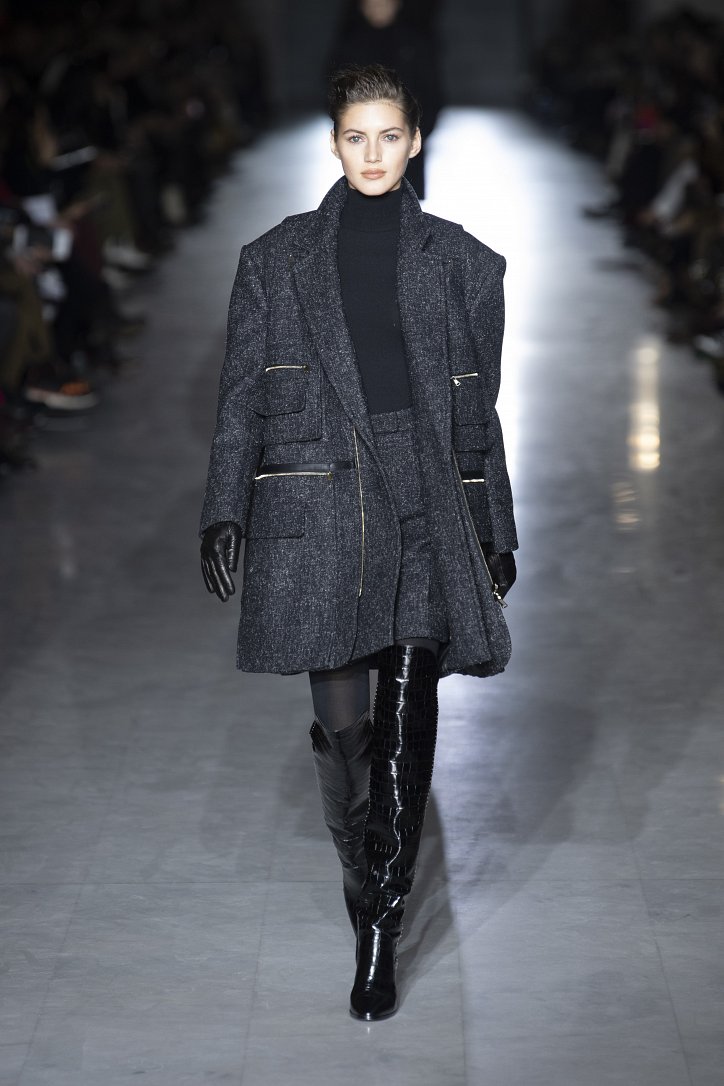 Оригинальную интерпретацию получили и кардиганы – их будущей зимой можно будет надевать поверх костюма. Что, правда, последний – с мини-юбкой, спрятавшейся под жакетом, и яркого, кислотного цвета. Но неон – скорее, исключение: явными фаворитами были бежево-коричневые оттенки.