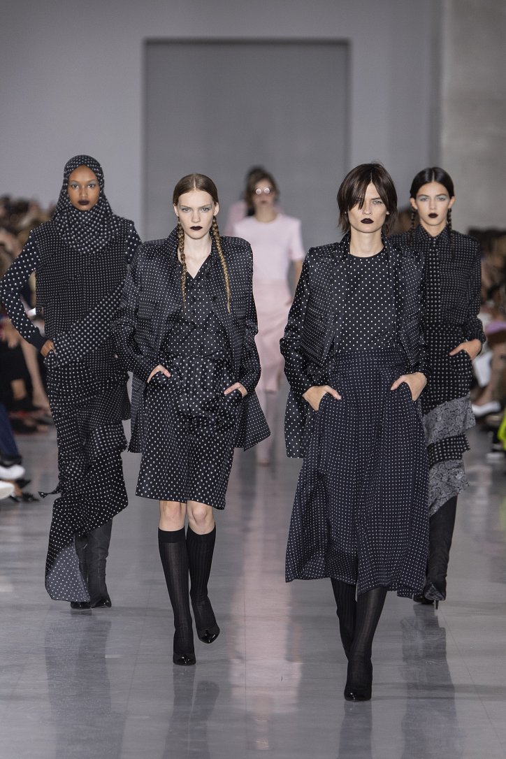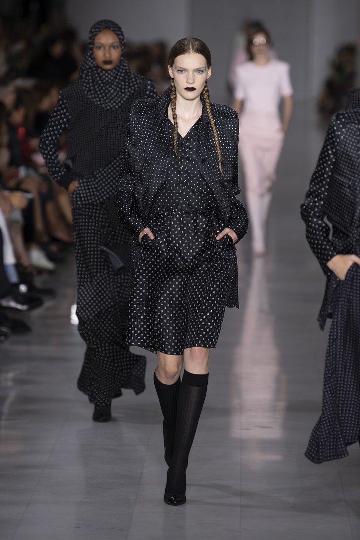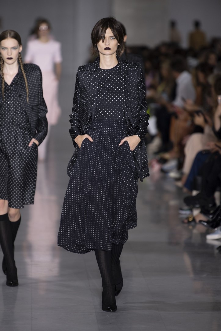 Как водится, цветовая гамма «шпионского гардероба» - не привлекающая к себе внимания: оттенки бежевого, серого, черный и белый. Среди принтов – только горошек. Да и тот – меленький и почти потерявшийся на черном фоне. Даже знаменитое пальто Max Mara «замаскировалось» - в новой коллекции оно приобрело оттенок льда.