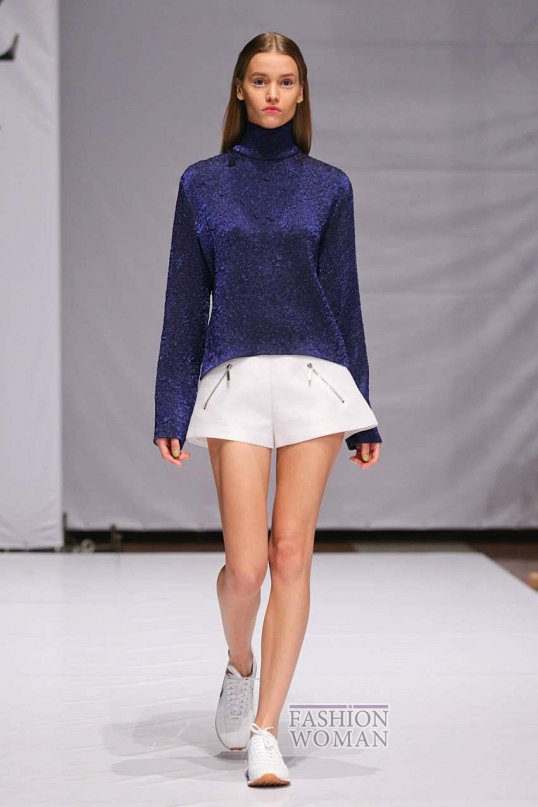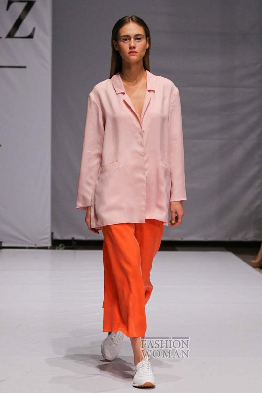 Спортивная форма и стиль 90-х стал основным вдохновением для дизайнера Яси Миночкиной (Yasya Minochkina). Основная ориентация - это расслабленность, простота и комфорт, отсюда пижамные шелковые костюмы, укороченные объемные брюки, прозрачные бомперы, короткие топы, юбки трапеции и мешковатые водолазки.