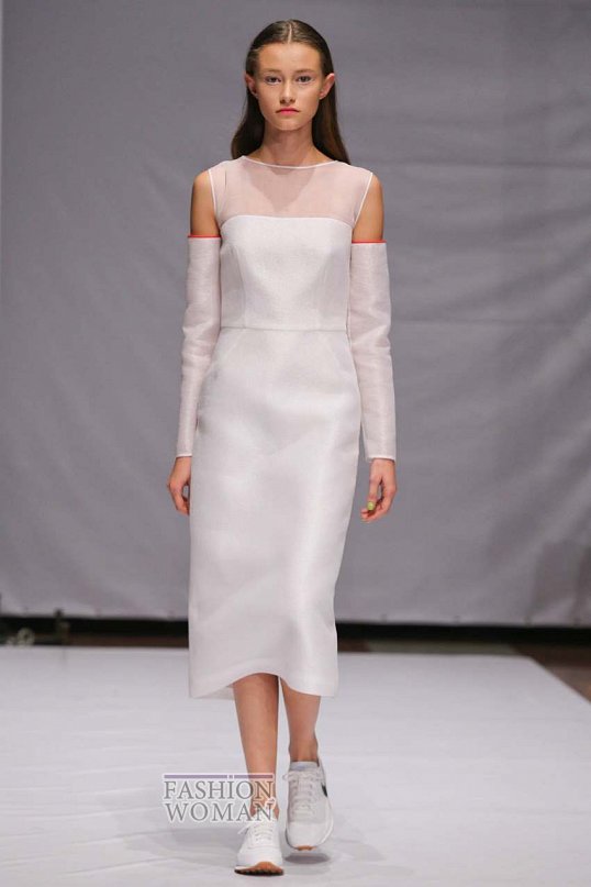Основу коллекции составили романтичные сарафаны на тонких бретельках, женственные топы и юбки с перфорацией, полупрозрачные многослойные платья, легкие пальто, изящные комбинезоны с шортами и простые лаконичные топы.