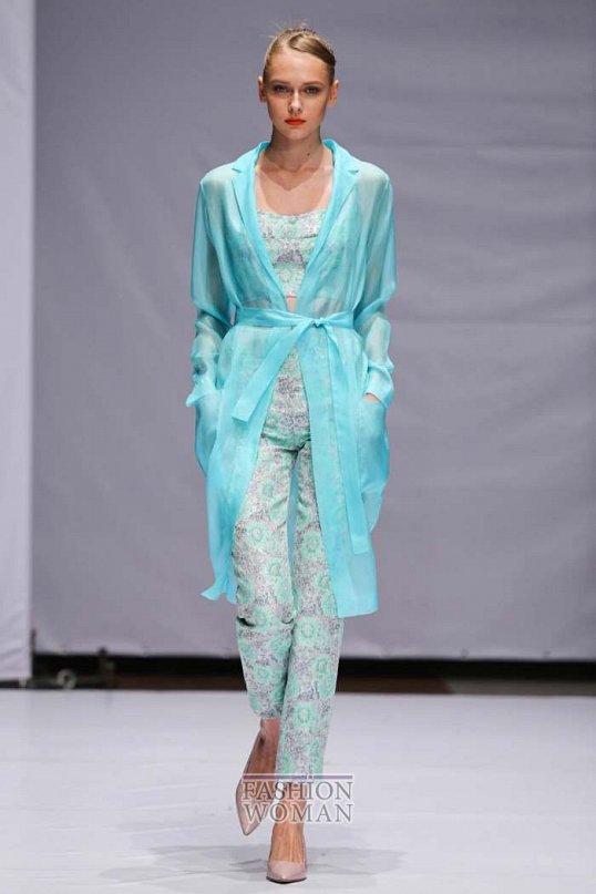 На подиуме были представлены нежные и романтичные образы с легким уклоном в ретро. В цветовой палитре преобладали нежные пастельные оттенки - бледно-голубой, конфетно-розовый, жемчужный, серебристо-серый.