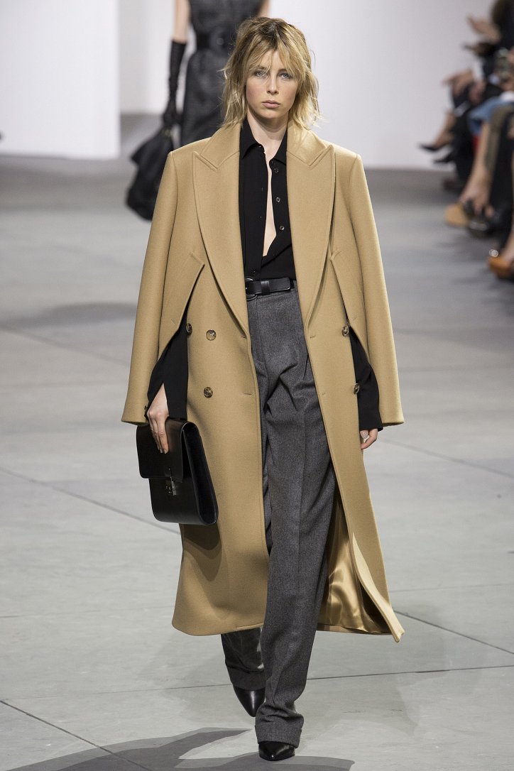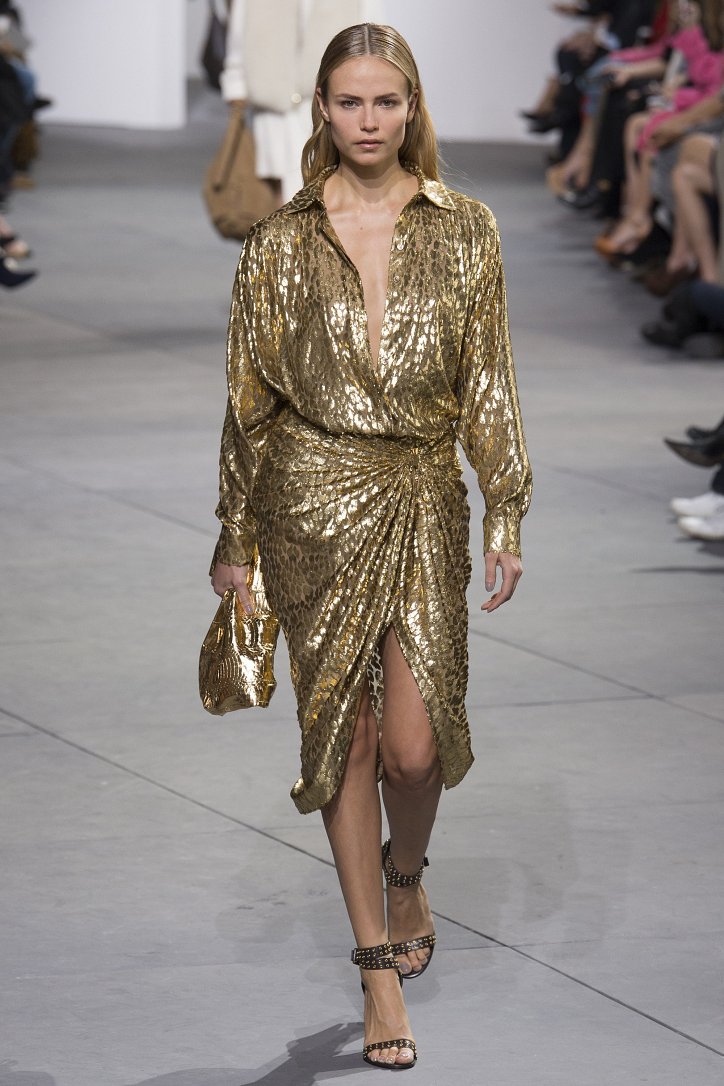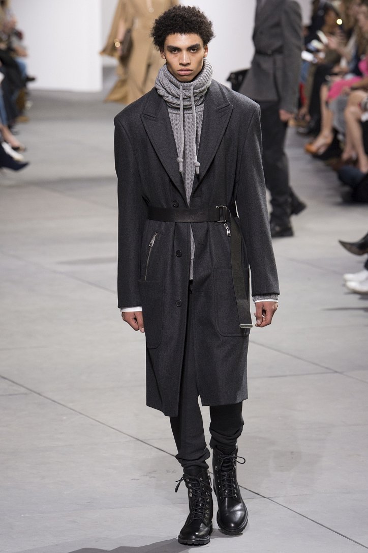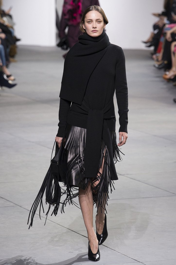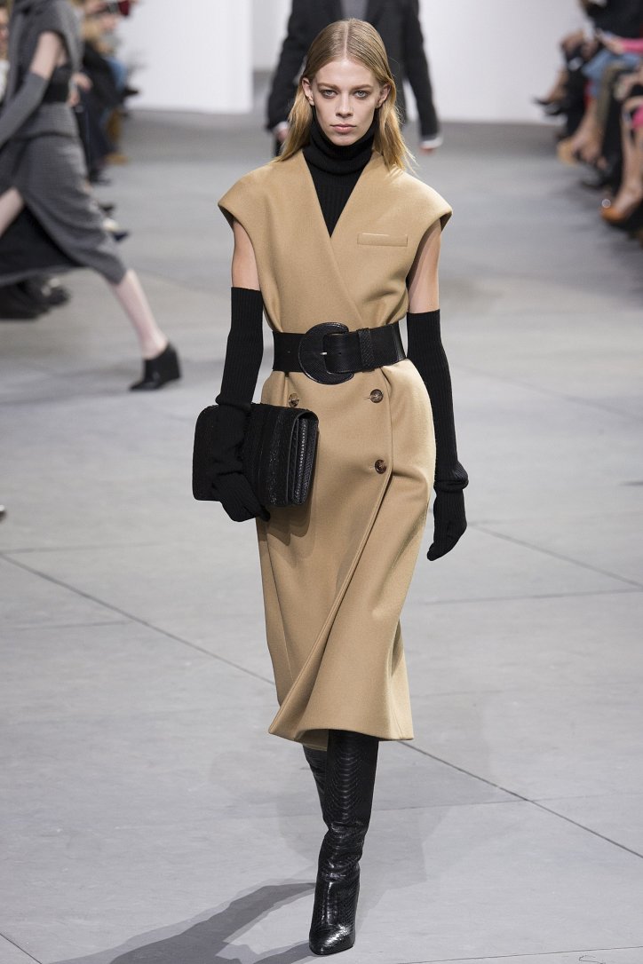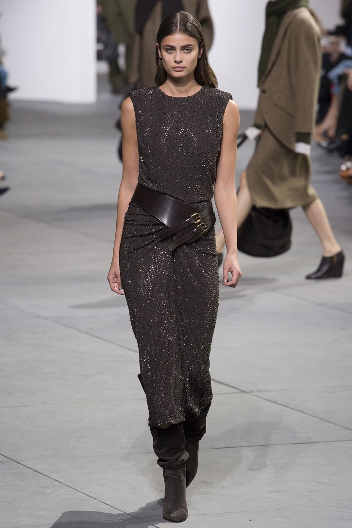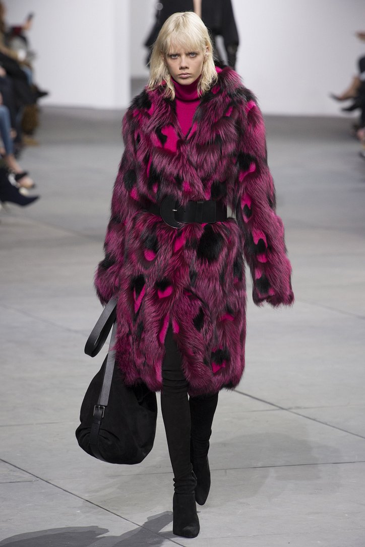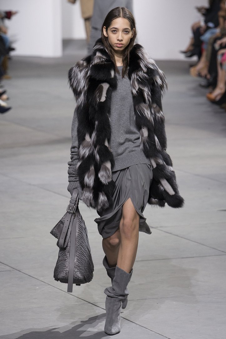 Излюбленный стиль Майкла Корса – настоящая «американская» классика – простая и элегантная. Такой получилась и новая коллекция для сезона осень-зима 2017-2018, которую дизайнер создал для современных женщин – уверенно делающий карьеру и при этом не теряющих своего шарма и женственности. Оглянувшись в прошлое, Майкл Корс взял за основу моду 70-ых, и создал идеальный повседневный гардероб для осени и зимы. В нем были идеально скроенные шерстяные костюмы и пальто, трикотажные платья и приталенные рубашки, кожаные плащи и роскошные шубы, широкие брюки и юбки-миди. Элегантность и стиль одежды и аксессуаров подчеркивала и цветовая палитра, в которой преобладали бежевый, винный и серые оттенки.