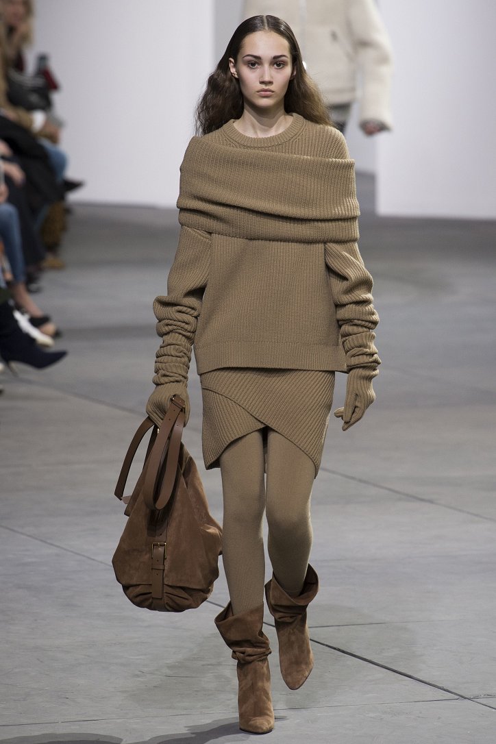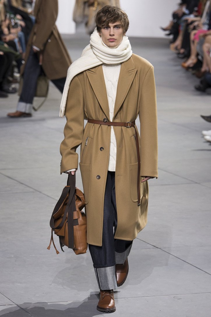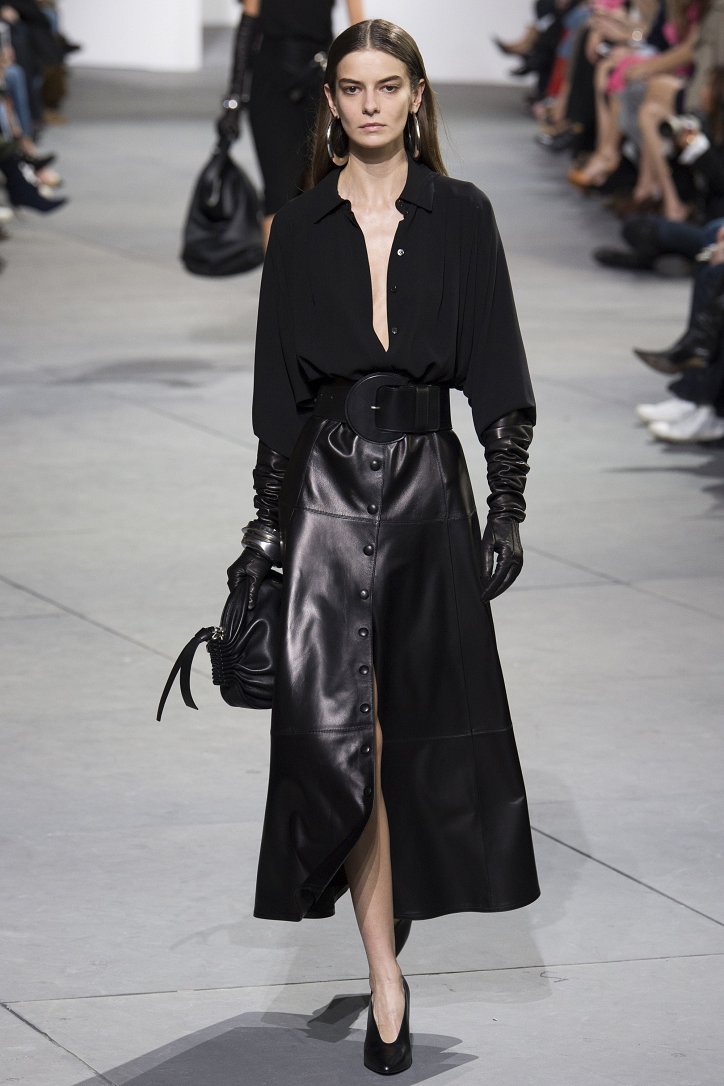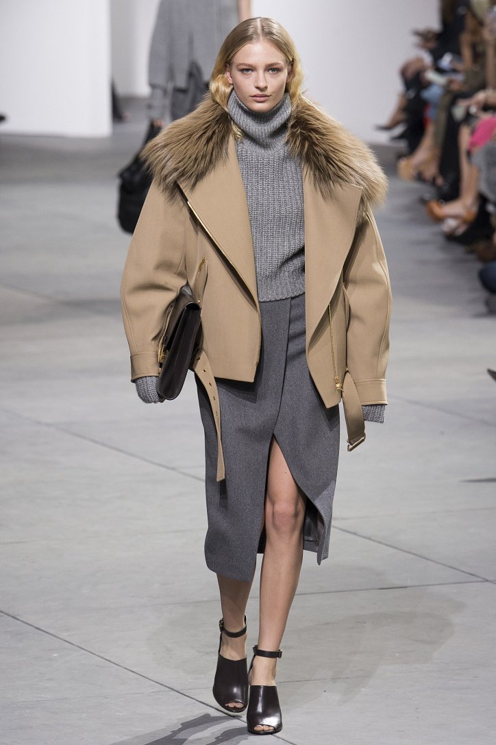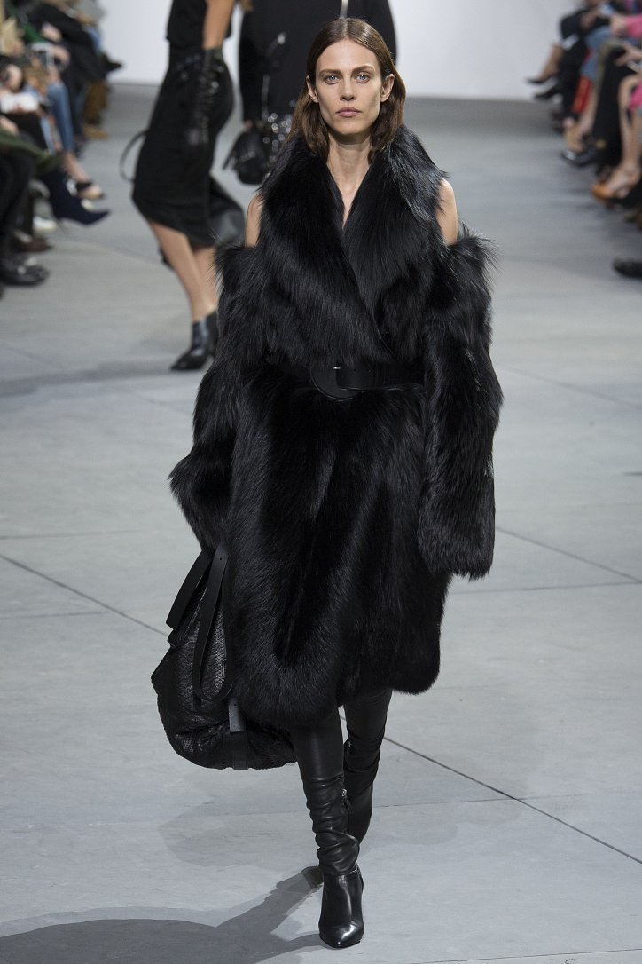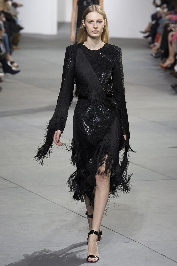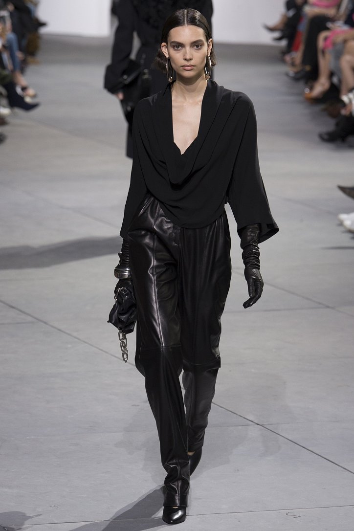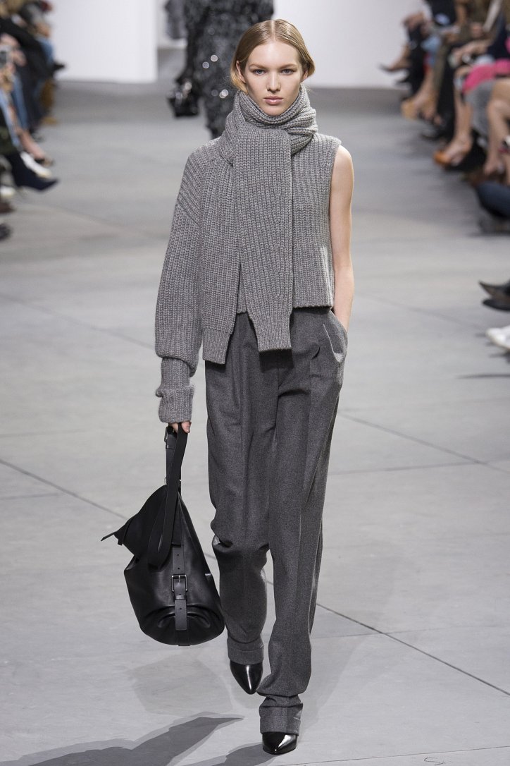 Излюбленный стиль Майкла Корса – настоящая «американская» классика – простая и элегантная. Такой получилась и новая коллекция для сезона осень-зима 2017-2018, которую дизайнер создал для современных женщин – уверенно делающий карьеру и при этом не теряющих своего шарма и женственности. Оглянувшись в прошлое, Майкл Корс взял за основу моду 70-ых, и создал идеальный повседневный гардероб для осени и зимы. В нем были идеально скроенные шерстяные костюмы и пальто, трикотажные платья и приталенные рубашки, кожаные плащи и роскошные шубы, широкие брюки и юбки-миди. Элегантность и стиль одежды и аксессуаров подчеркивала и цветовая палитра, в которой преобладали бежевый, винный и серые оттенки.