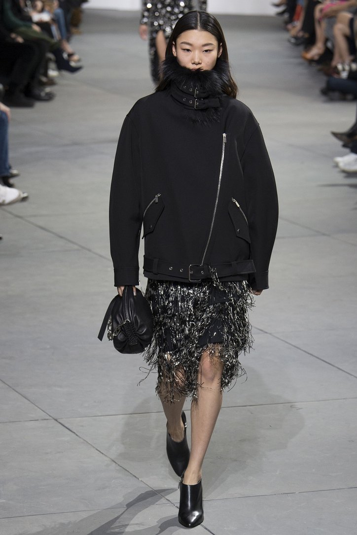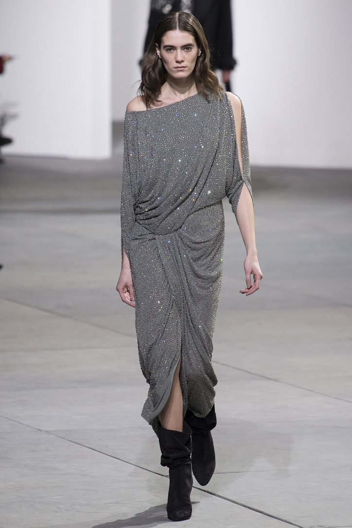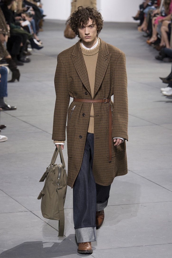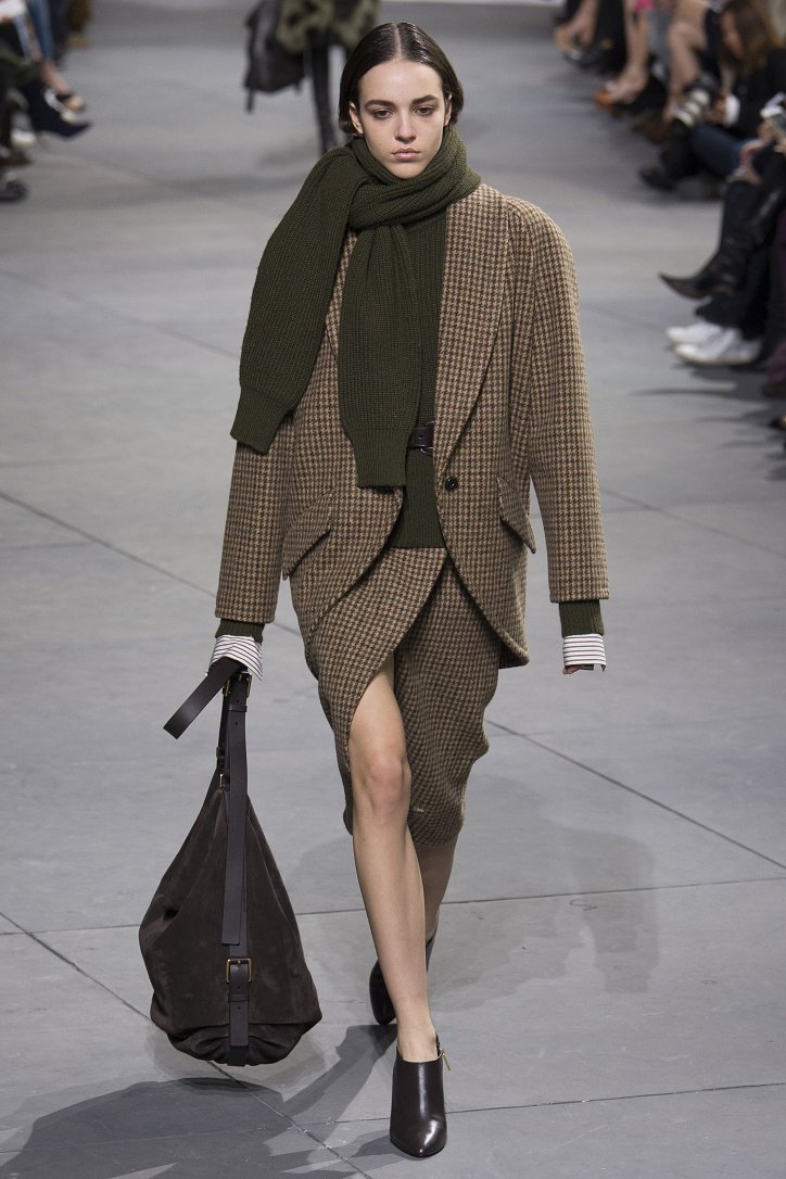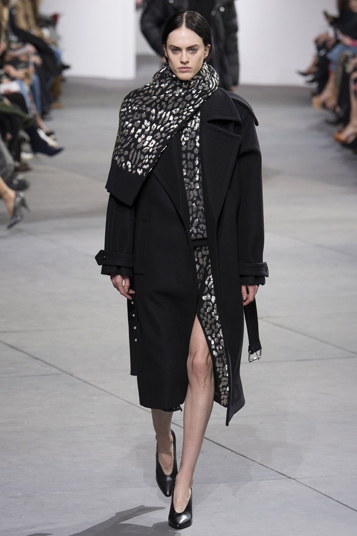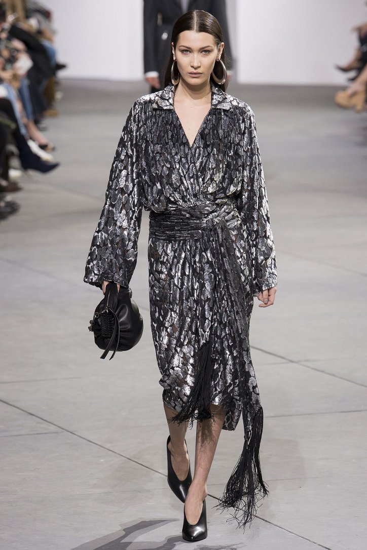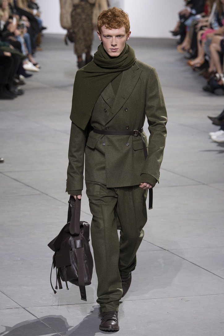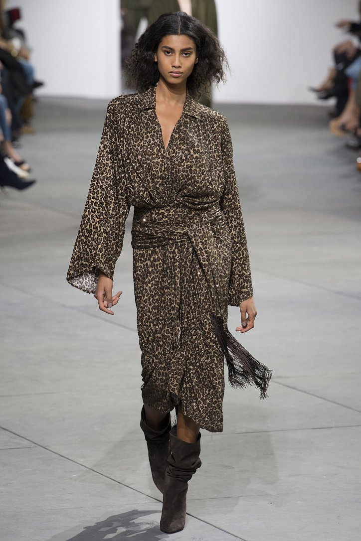 Излюбленный стиль Майкла Корса – настоящая «американская» классика – простая и элегантная. Такой получилась и новая коллекция для сезона осень-зима 2017-2018, которую дизайнер создал для современных женщин – уверенно делающий карьеру и при этом не теряющих своего шарма и женственности. Оглянувшись в прошлое, Майкл Корс взял за основу моду 70-ых, и создал идеальный повседневный гардероб для осени и зимы. В нем были идеально скроенные шерстяные костюмы и пальто, трикотажные платья и приталенные рубашки, кожаные плащи и роскошные шубы, широкие брюки и юбки-миди. Элегантность и стиль одежды и аксессуаров подчеркивала и цветовая палитра, в которой преобладали бежевый, винный и серые оттенки.