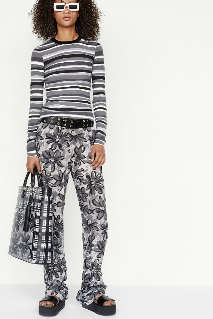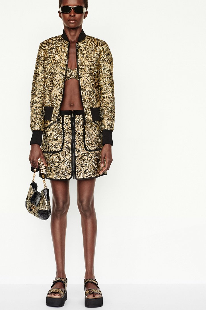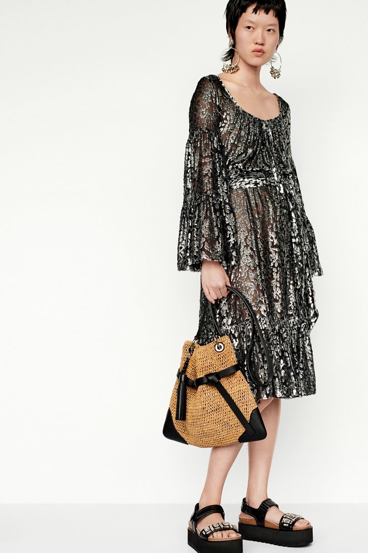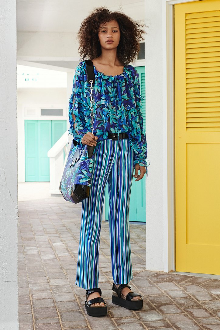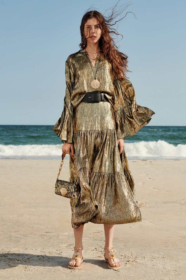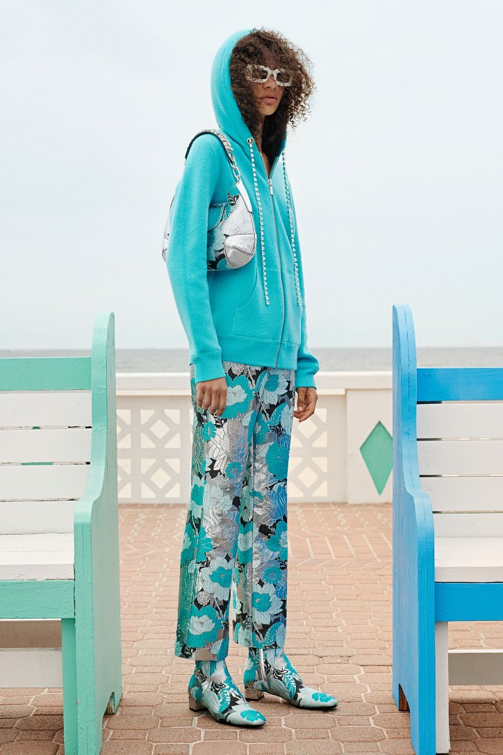 Мягкий кашемир и платья из парчи, летящие сарафаны и платья в клеточку, яркая полоска и тропические принты, соломка и перфорированная кожа, сандалии на плоской пробковой подошве и большие сумки-тоуты, спортивные костюмы из сетки и ажурные платья, связанные крючком, яркие толстовки, укороченные брюки, легкие свободные блузы и мини-платья, полностью расшитые пайетками – дизайнер умело «модернизировал» ретро, добавил к нему спорт-шика и новомодных трендов. Гламур шестидесятых оказался очень актуален в этой новой интерпретации!