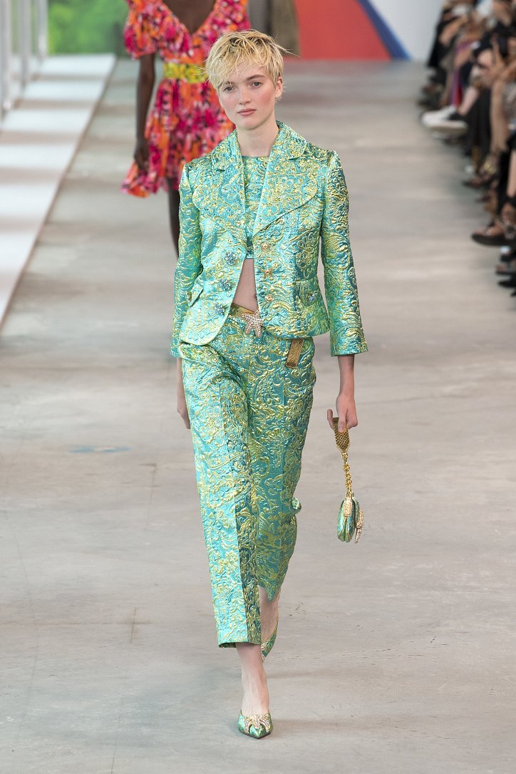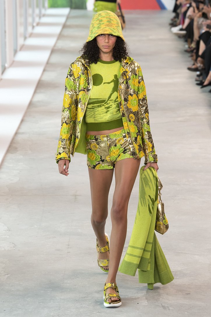 Дизайнер предусмотрел буквально все: и одежду для пляжного отдыха, и луки на случай прохладной погоды и, конечно же, не забыл и о вечеринках – на этот случай в коллекции есть брючный костюм и мини-платье из яркой парчи с металлизированным блеском, белый парчовый костюм с шортами и несколько черных ансамблей, которые «легким движением руки» превращаются в купальник (если вдруг будет соответствующее настроение).