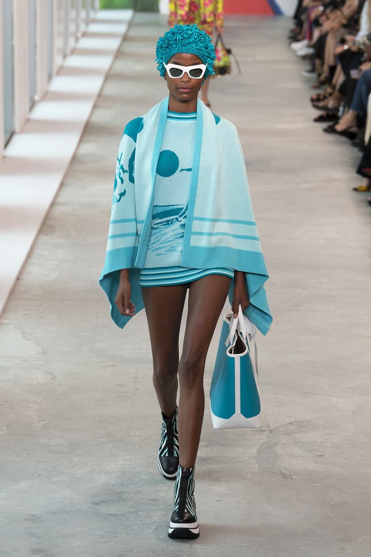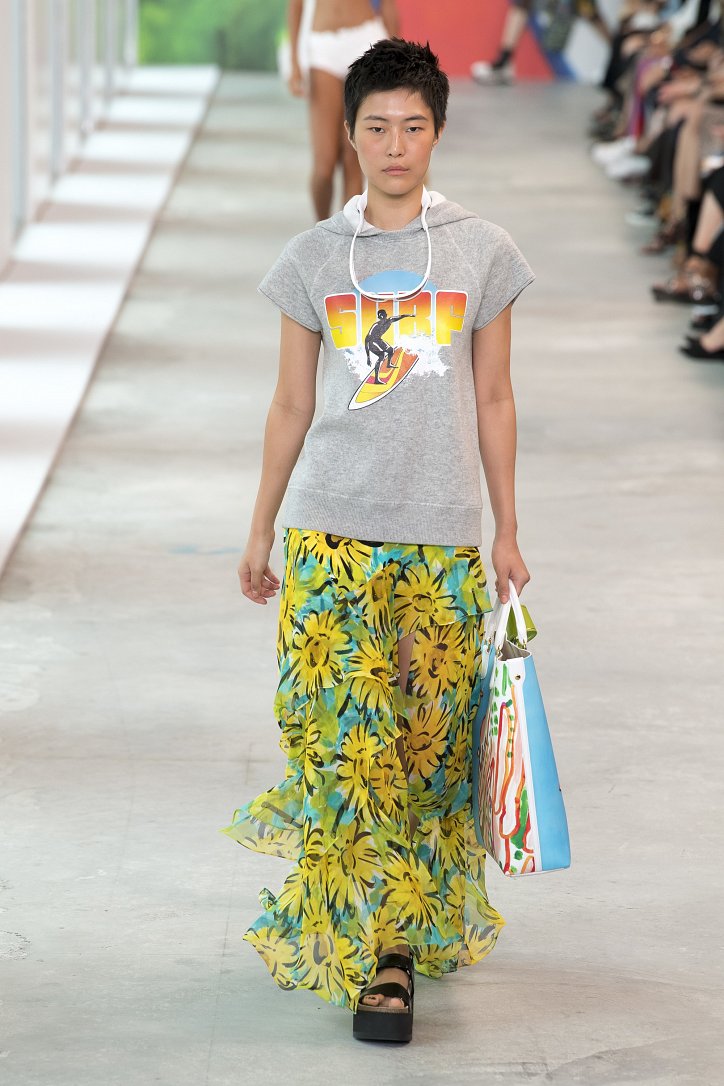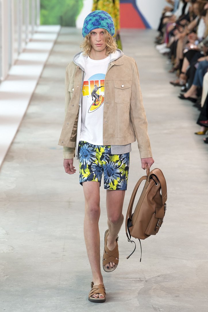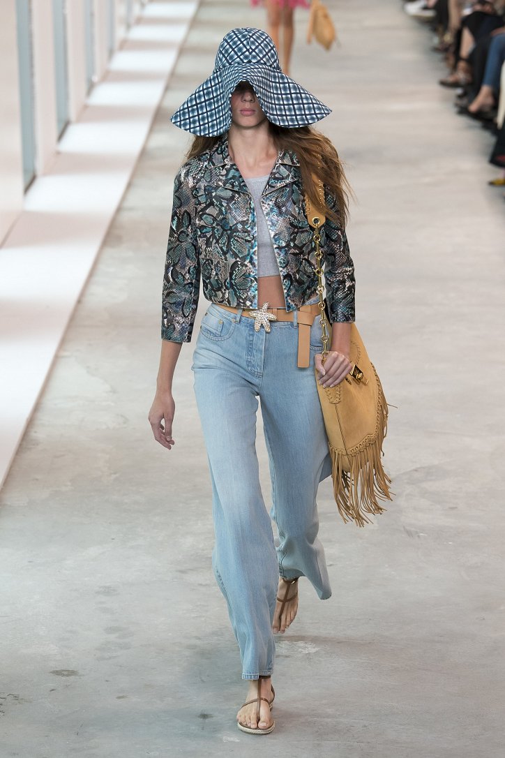 Легкие хлопковые платья в ярких оттенках лимона и арбуза, серфинговые рубашки, мини-шорты, пестрые принтованные куртки, брюки с лампасами, джинсовые платья и вязаные меланжевые худи, светлые джинсы и брюки-карго, юбки с бахромой и кашемировые пуловеры, широкополые шляпки и вязаные ажурные панамы, купальники и сумки с ручной росписью - коллекция Michael Kors буквально излучает отпускное настроение!