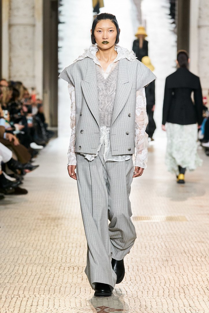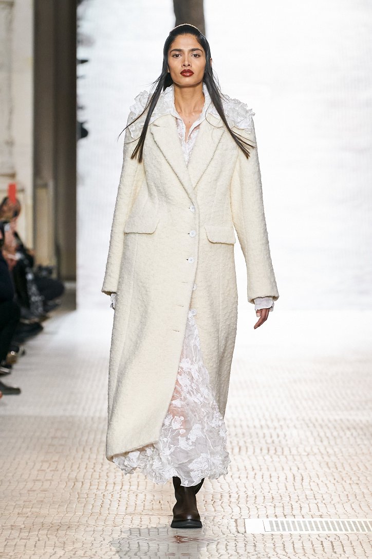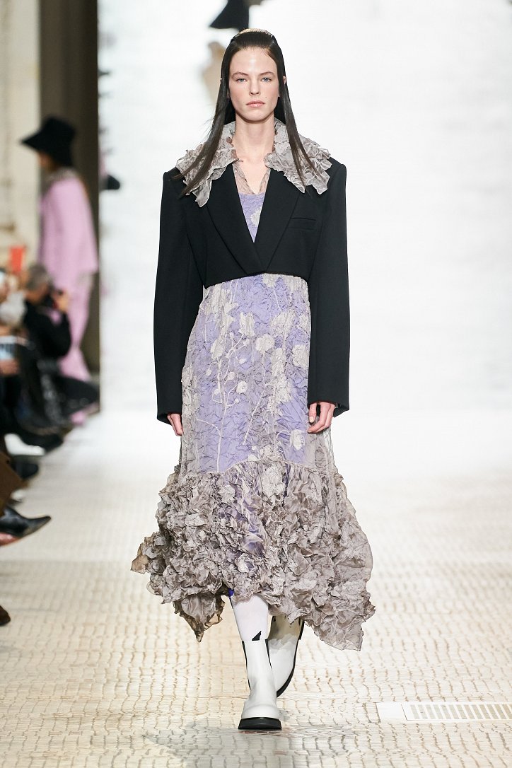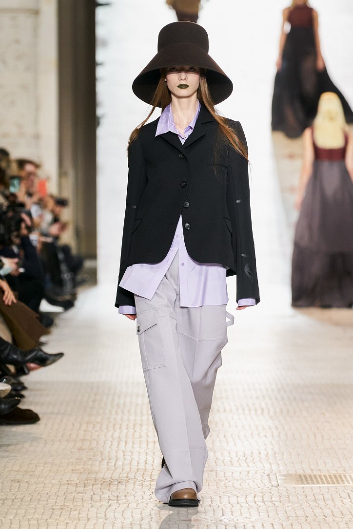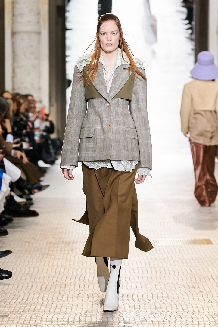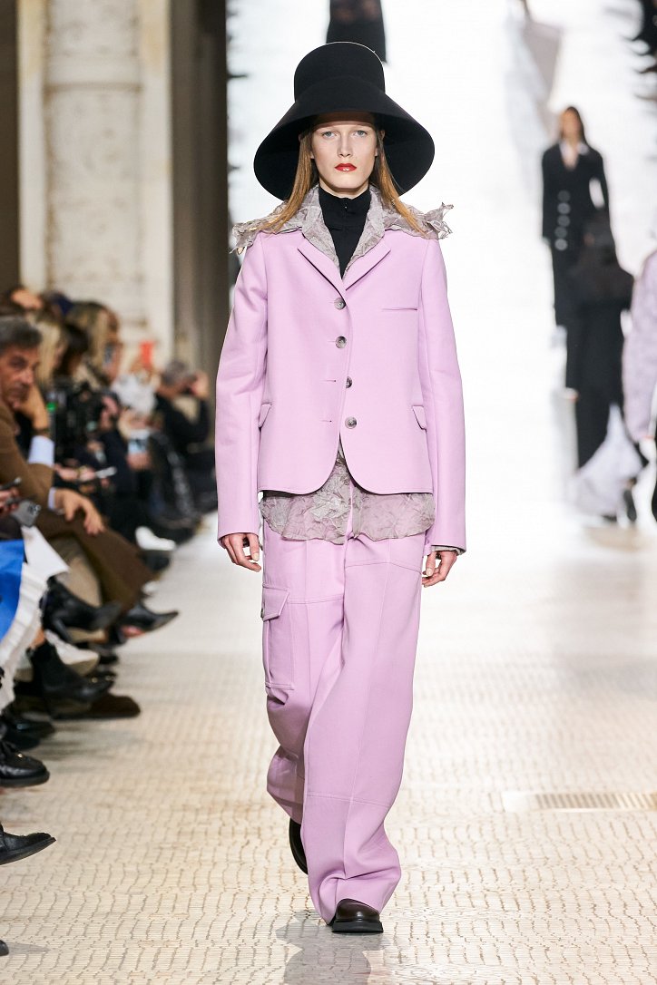 Опора на опыт Старых Мастеров помогла дизайнерам Lisi Herrebrugh и Rushemy Botter создать новую коллекцию Nina Ricci. Возврат к наследию Нины Риччи придал ей неоромантическое звучание, а отсылки к полотнам голландского живописца Кеса ван Донгена осветлили цветовую палитру: дизайнеры взяли мягкие смешанные оттенки из ранних работ и смелые, более дерзкие – из творений парижского периода. Интересным оказалось и сочетание мягкой женственности (то, чем издавна знаменит дом моды) и мужского силуэта – отголоска прошлого опыта дизайнеров, создававших не так давно мужскую одежду. Наиболее показательными в этом плане были обрезанные клетчатые жакеты, из-под которых выглядывали полы шифоновых сорочек с едва заметным принтом «тон в тон». Были в коллекции и широкие брюки палаццо, и шелковые платья, и пальто-оверсайз.