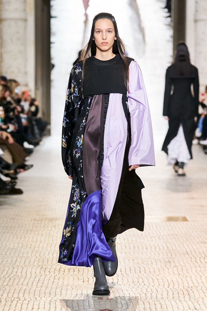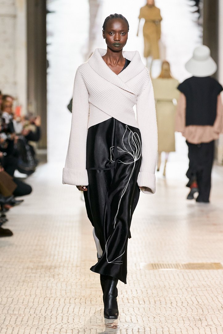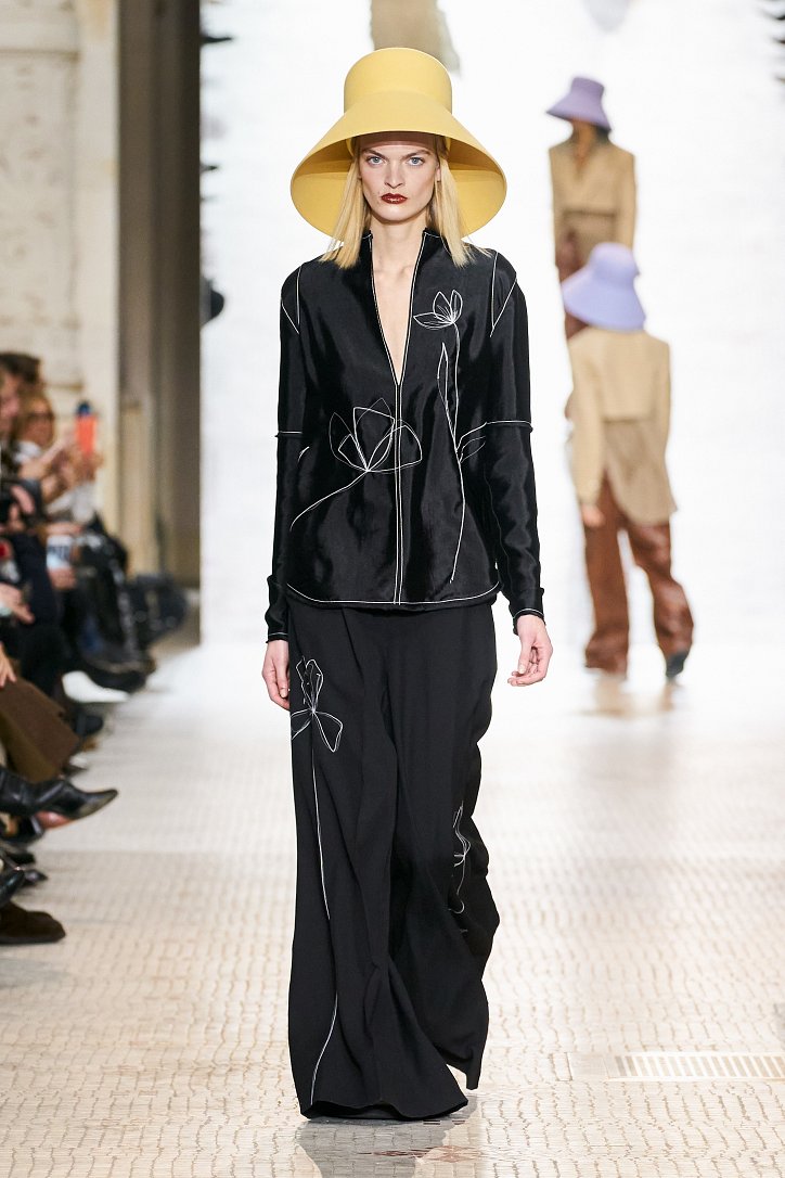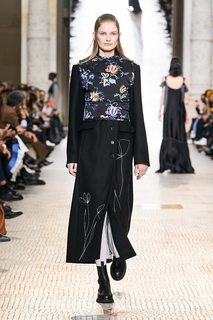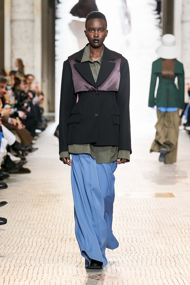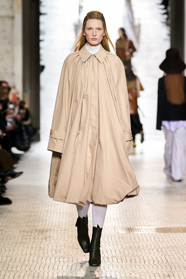 Опора на опыт Старых Мастеров помогла дизайнерам Lisi Herrebrugh и Rushemy Botter создать новую коллекцию Nina Ricci. Возврат к наследию Нины Риччи придал ей неоромантическое звучание, а отсылки к полотнам голландского живописца Кеса ван Донгена осветлили цветовую палитру: дизайнеры взяли мягкие смешанные оттенки из ранних работ и смелые, более дерзкие – из творений парижского периода. Интересным оказалось и сочетание мягкой женственности (то, чем издавна знаменит дом моды) и мужского силуэта – отголоска прошлого опыта дизайнеров, создававших не так давно мужскую одежду. Наиболее показательными в этом плане были обрезанные клетчатые жакеты, из-под которых выглядывали полы шифоновых сорочек с едва заметным принтом «тон в тон». Были в коллекции и широкие брюки палаццо, и шелковые платья, и пальто-оверсайз.