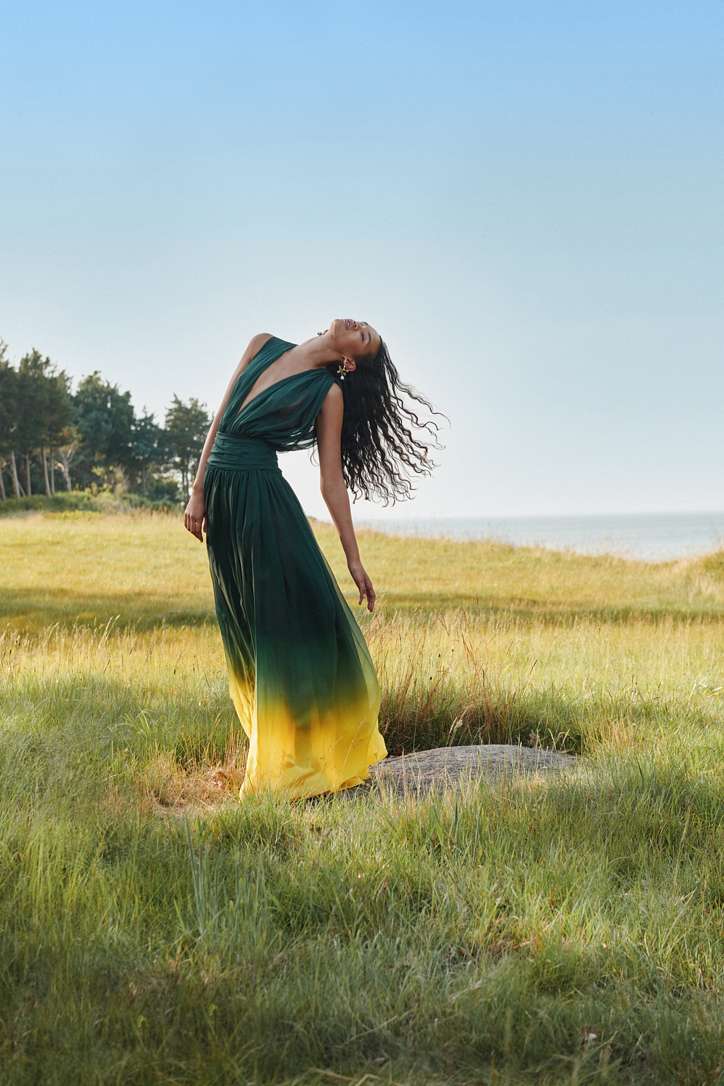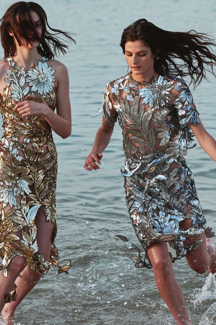 Вдохновение же Фернандо Гарсия и Лаура Ким черпали в фотографиях ландшафтного архитектора Миранды Брукс и работах швейцарского скульптора Уго Рондиноне. Воплотилось это в яркой цветовой палитре, эффекте омбре и цветочной теме, которая раскрывалась в фотопринтах полевых цветов и вышивке пайетками.