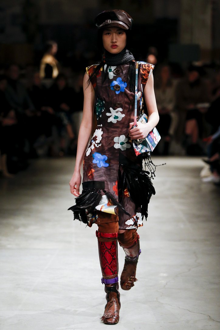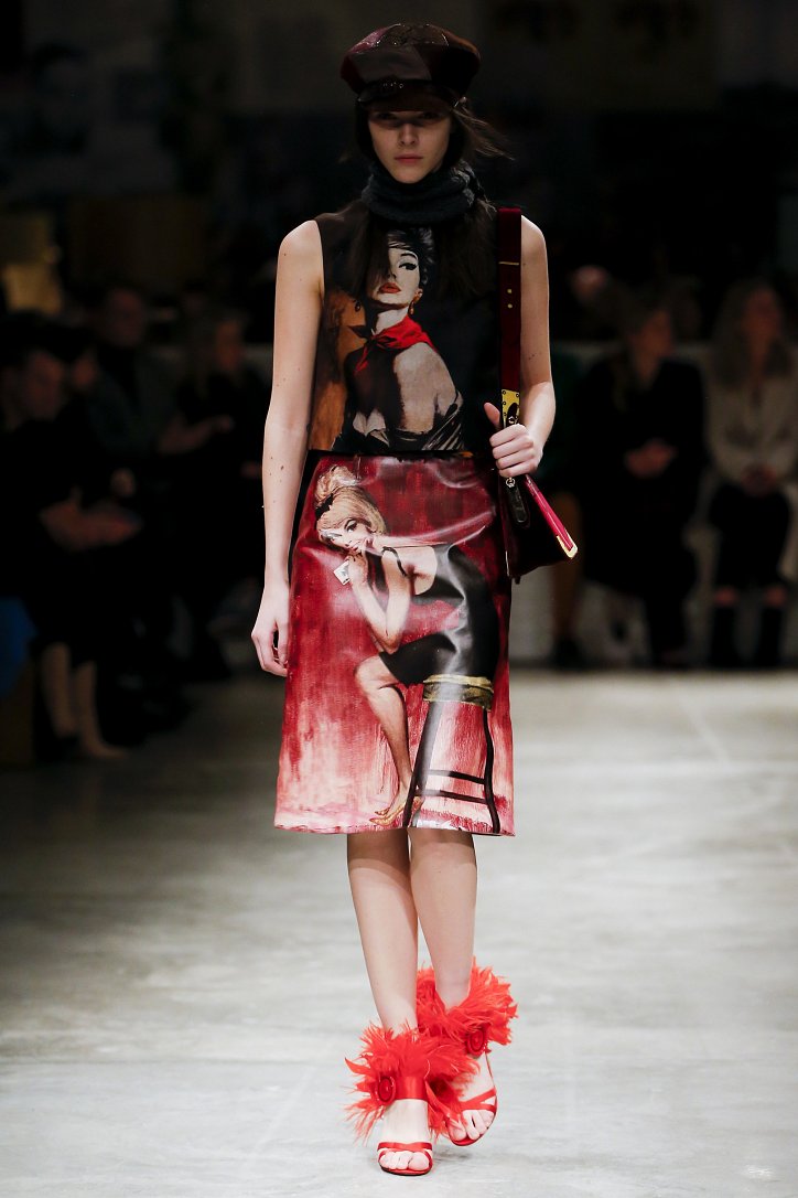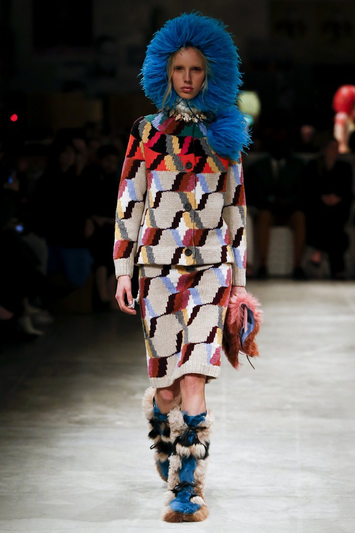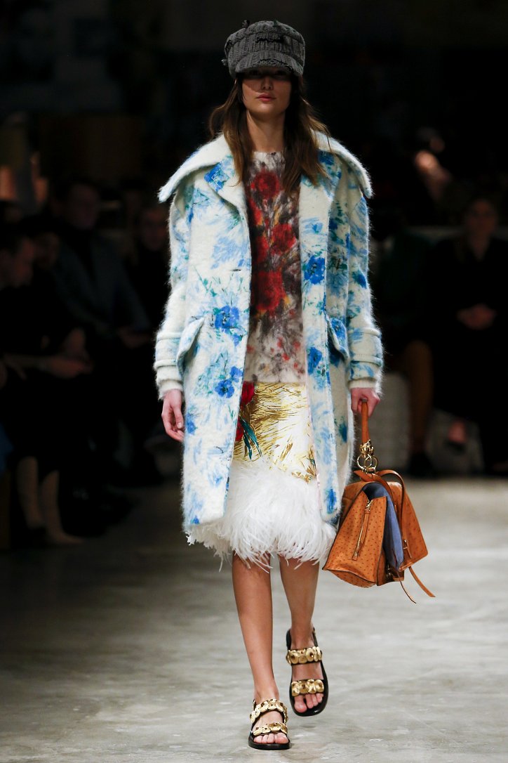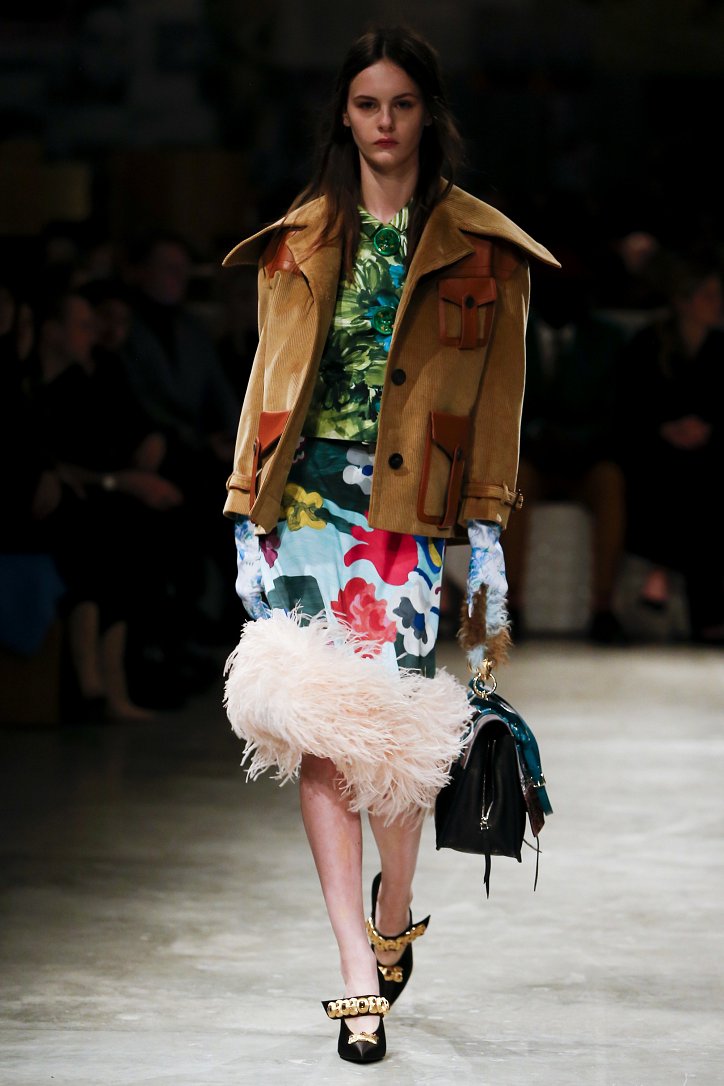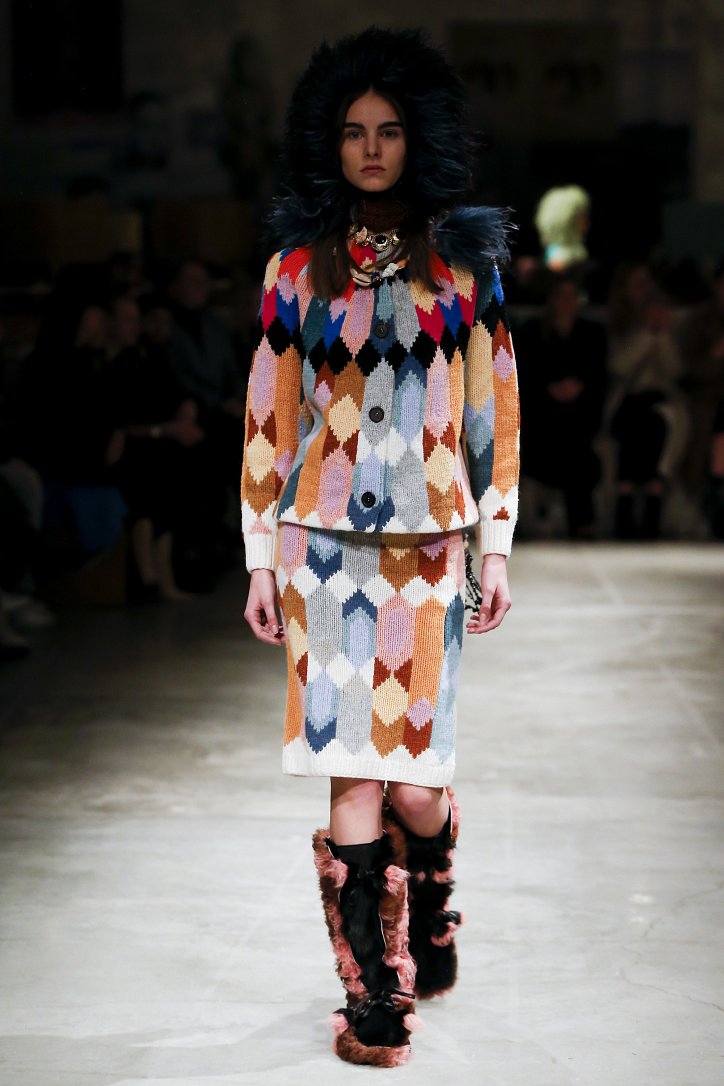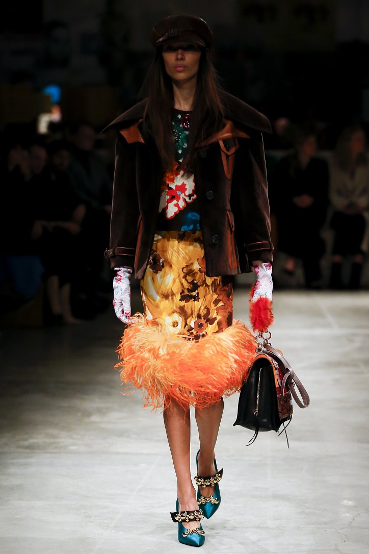 Яркие цвета и смелые сочетания, перья и бахрома, стеклярус и цветной мех – все это можно было увидеть в «Городе женщин», куда пригласила гостей Миучча Прада. Чтобы вместе вспомнить прошлое – когда она была молода и грезила не о моде, а о политике, а в сфере ее интересов были равноправие полов и роль женщины в обществе. О тех временах в коллекции Prada напоминали юбки-миди и цветные пуловеры из мохера, вельветовые брюки и твидовые кепки, модные вязаные кардиганы и обилие пэчворка. Впрочем, назвать коллекцию одой феминизму все же язык не поворачивается: «мешают» кокетливые перья, мягкие фактуры, много трикотажа а-ля hand made, пушистые сапоги и сумки. Что ж, сила женщины – в ее слабости!