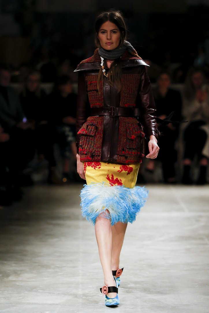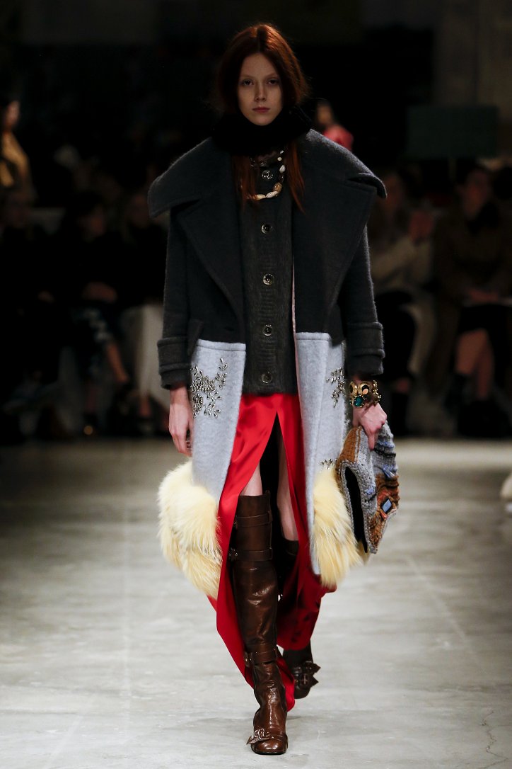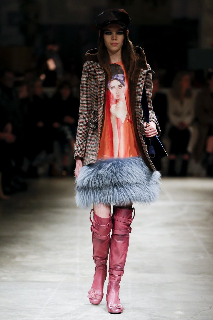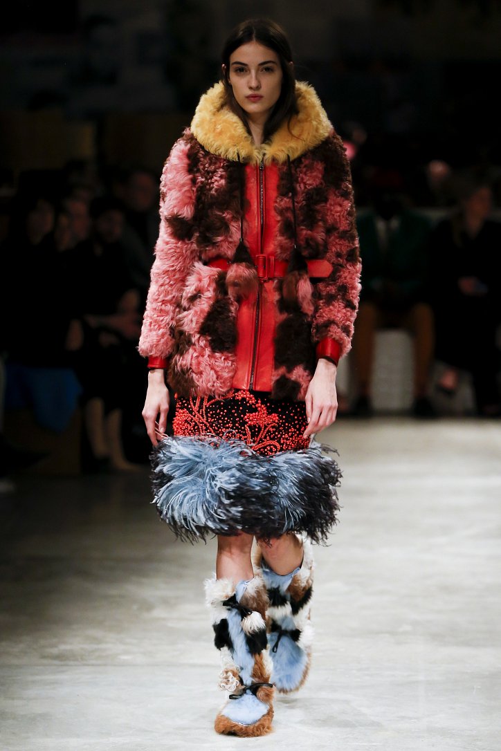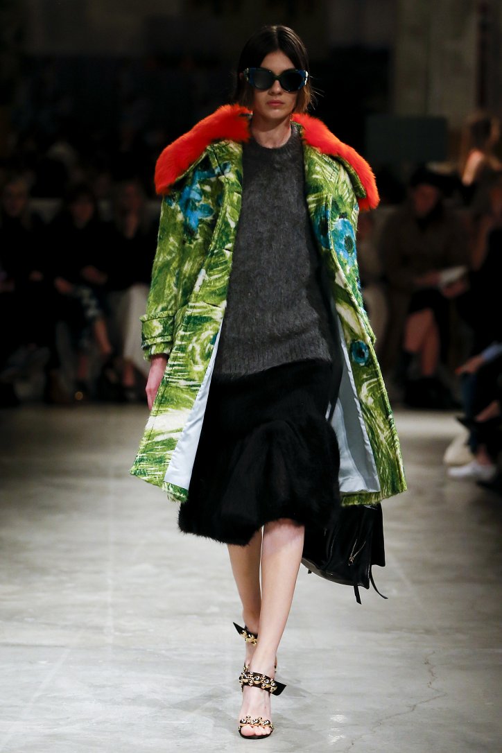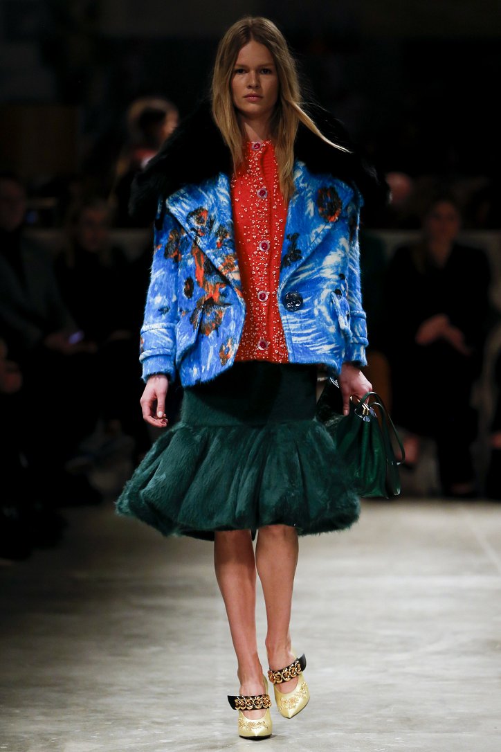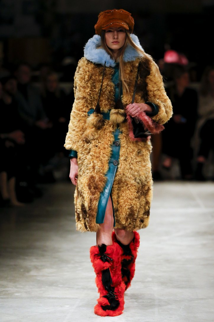 Яркие цвета и смелые сочетания, перья и бахрома, стеклярус и цветной мех – все это можно было увидеть в «Городе женщин», куда пригласила гостей Миучча Прада. Чтобы вместе вспомнить прошлое – когда она была молода и грезила не о моде, а о политике, а в сфере ее интересов были равноправие полов и роль женщины в обществе. О тех временах в коллекции Prada напоминали юбки-миди и цветные пуловеры из мохера, вельветовые брюки и твидовые кепки, модные вязаные кардиганы и обилие пэчворка. Впрочем, назвать коллекцию одой феминизму все же язык не поворачивается: «мешают» кокетливые перья, мягкие фактуры, много трикотажа а-ля hand made, пушистые сапоги и сумки. Что ж, сила женщины – в ее слабости!