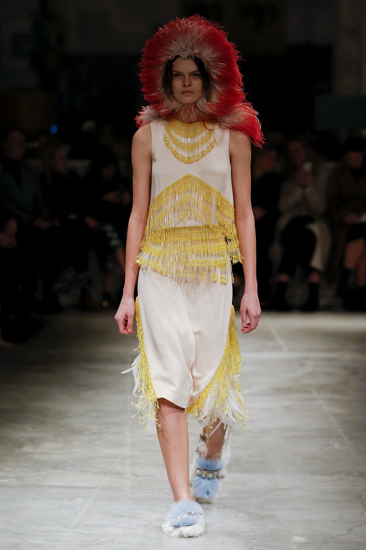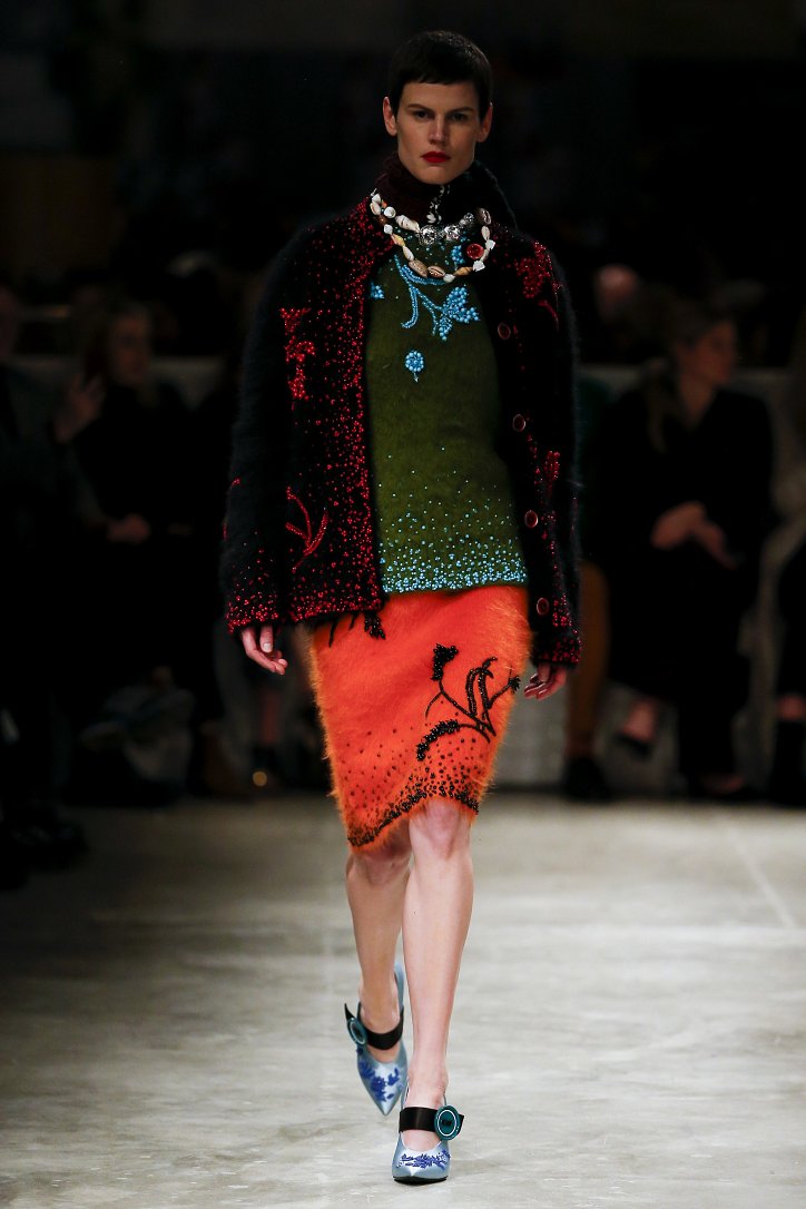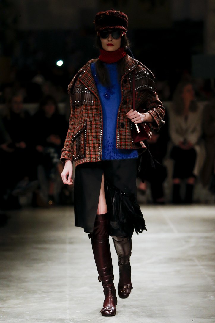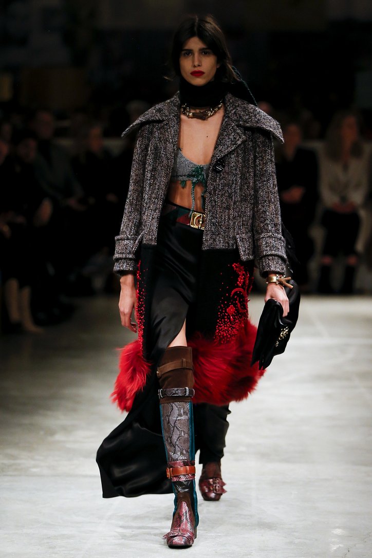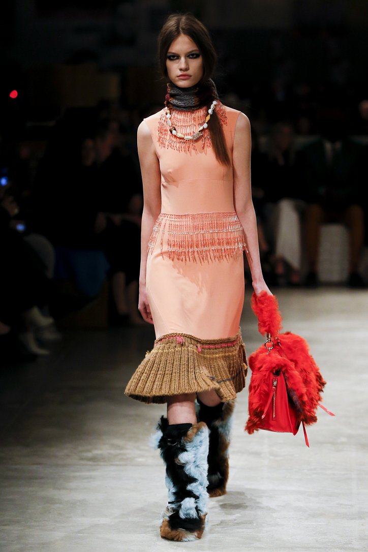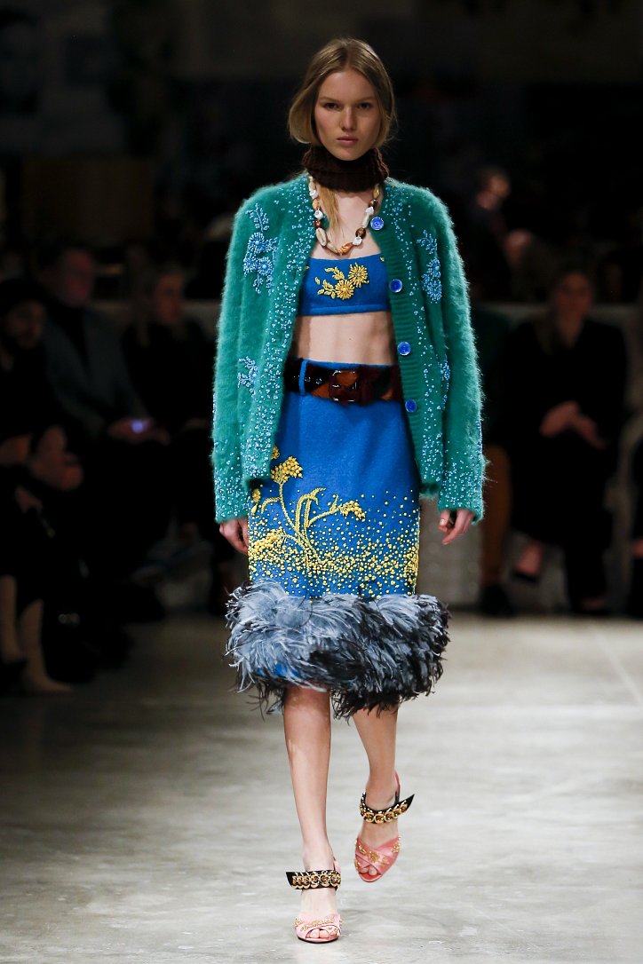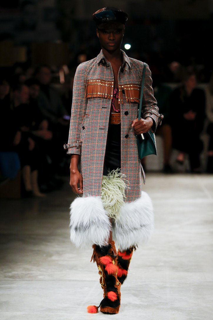 Яркие цвета и смелые сочетания, перья и бахрома, стеклярус и цветной мех – все это можно было увидеть в «Городе женщин», куда пригласила гостей Миучча Прада. Чтобы вместе вспомнить прошлое – когда она была молода и грезила не о моде, а о политике, а в сфере ее интересов были равноправие полов и роль женщины в обществе. О тех временах в коллекции Prada напоминали юбки-миди и цветные пуловеры из мохера, вельветовые брюки и твидовые кепки, модные вязаные кардиганы и обилие пэчворка. Впрочем, назвать коллекцию одой феминизму все же язык не поворачивается: «мешают» кокетливые перья, мягкие фактуры, много трикотажа а-ля hand made, пушистые сапоги и сумки. Что ж, сила женщины – в ее слабости!