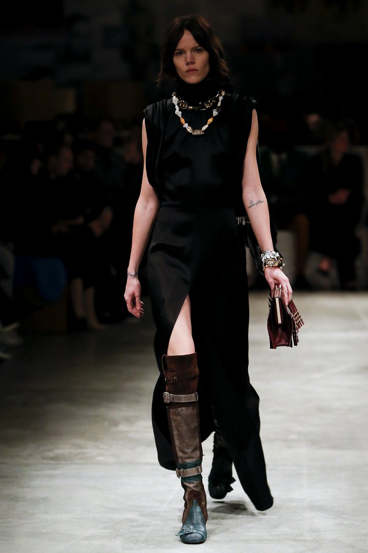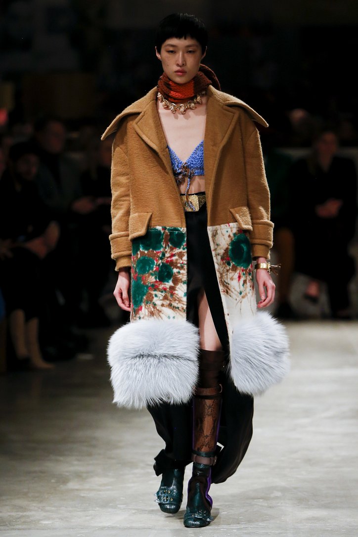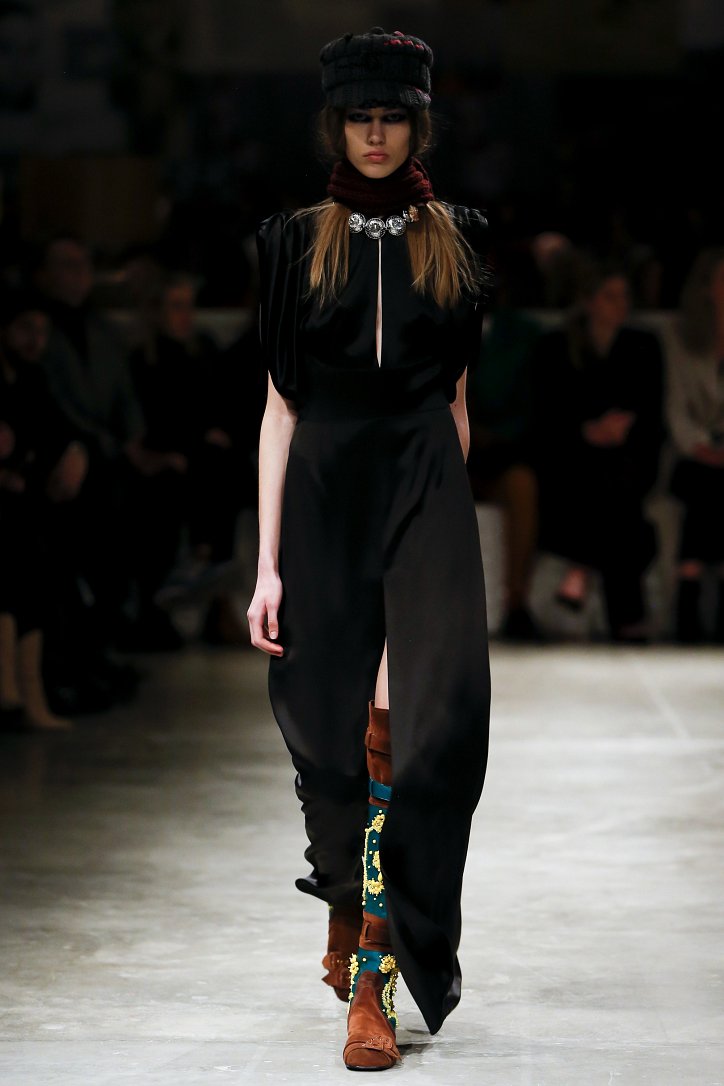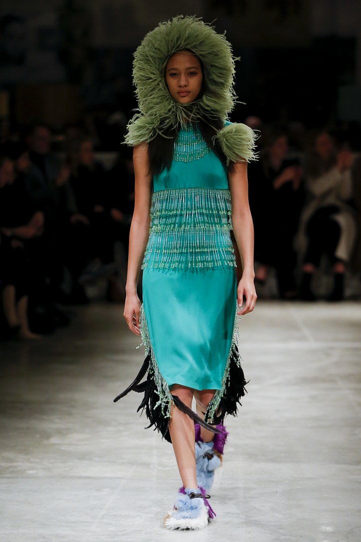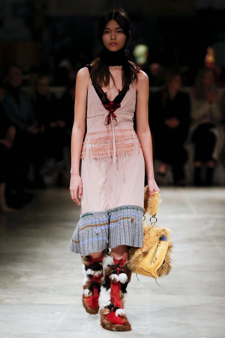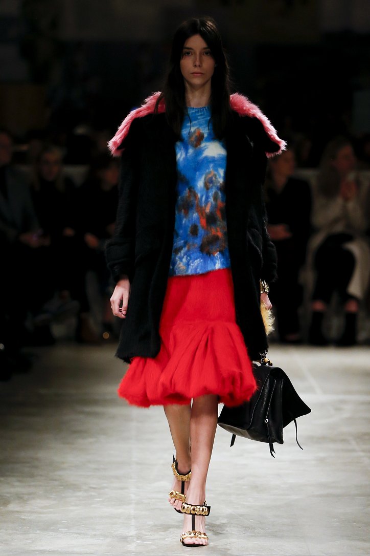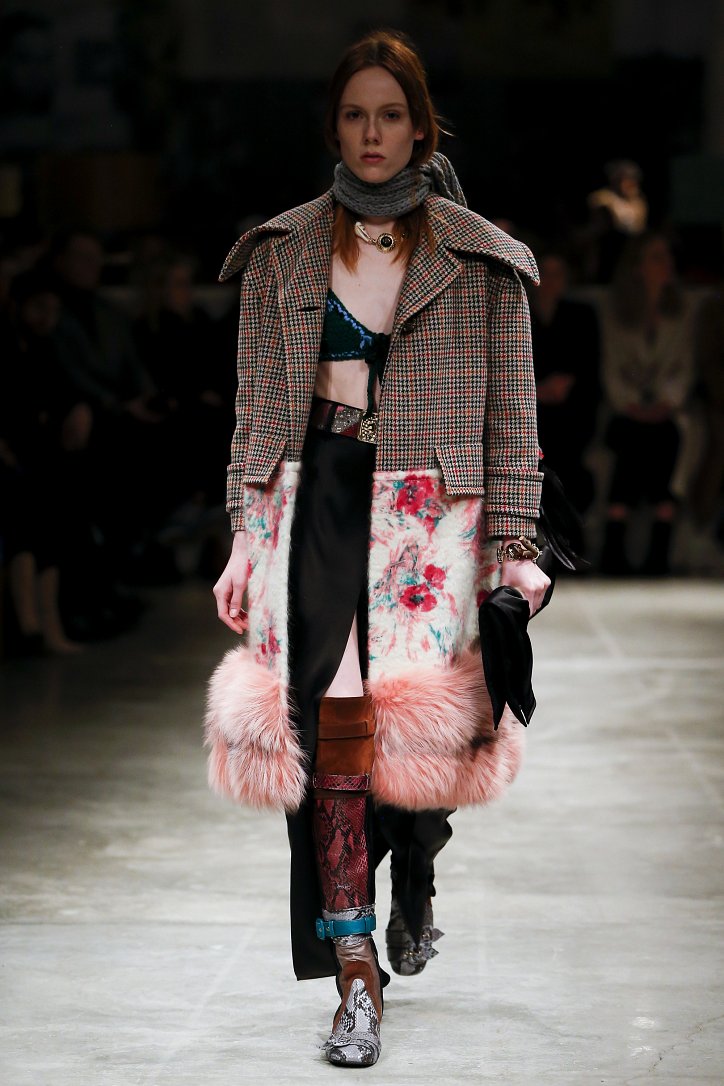Яркие цвета и смелые сочетания, перья и бахрома, стеклярус и цветной мех – все это можно было увидеть в «Городе женщин», куда пригласила гостей Миучча Прада. Чтобы вместе вспомнить прошлое – когда она была молода и грезила не о моде, а о политике, а в сфере ее интересов были равноправие полов и роль женщины в обществе. О тех временах в коллекции Prada напоминали юбки-миди и цветные пуловеры из мохера, вельветовые брюки и твидовые кепки, модные вязаные кардиганы и обилие пэчворка. Впрочем, назвать коллекцию одой феминизму все же язык не поворачивается: «мешают» кокетливые перья, мягкие фактуры, много трикотажа а-ля hand made, пушистые сапоги и сумки. Что ж, сила женщины – в ее слабости!