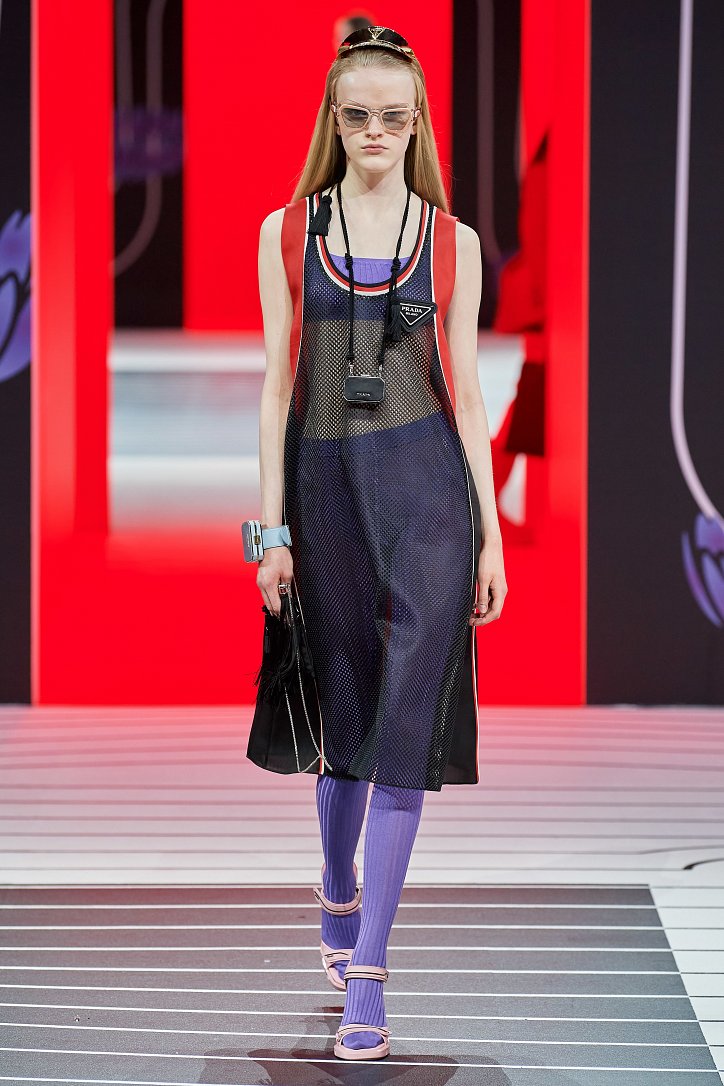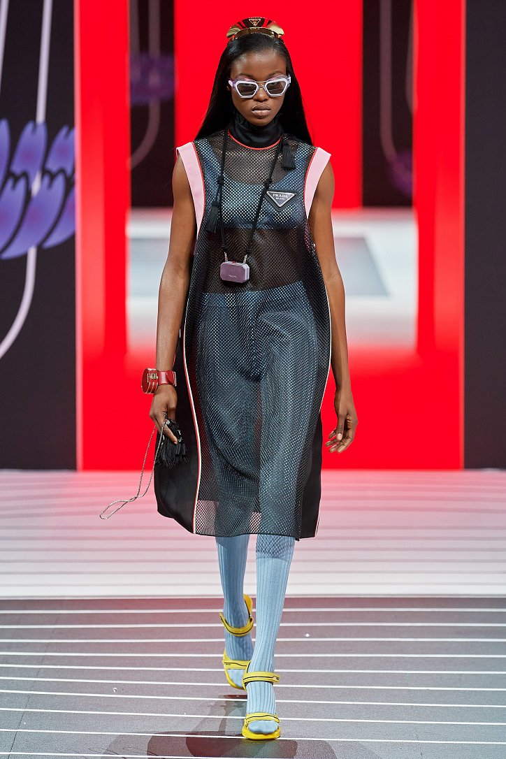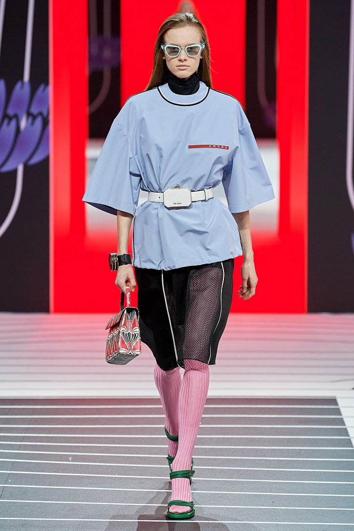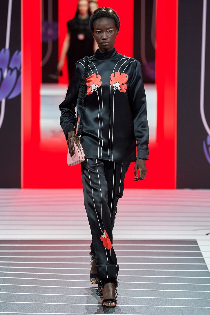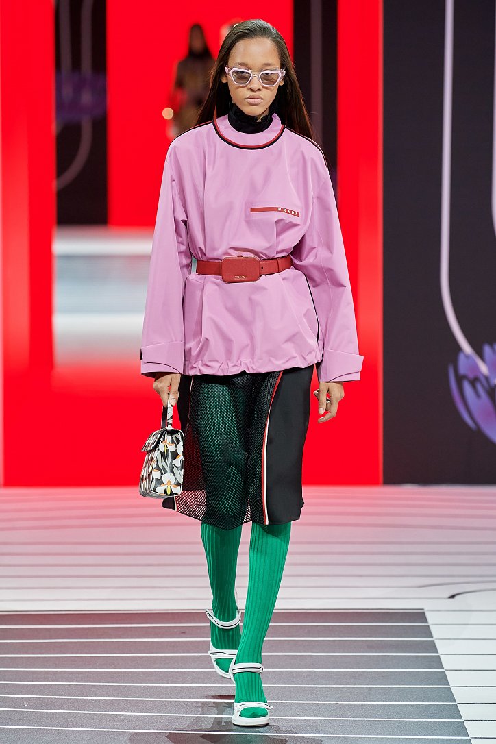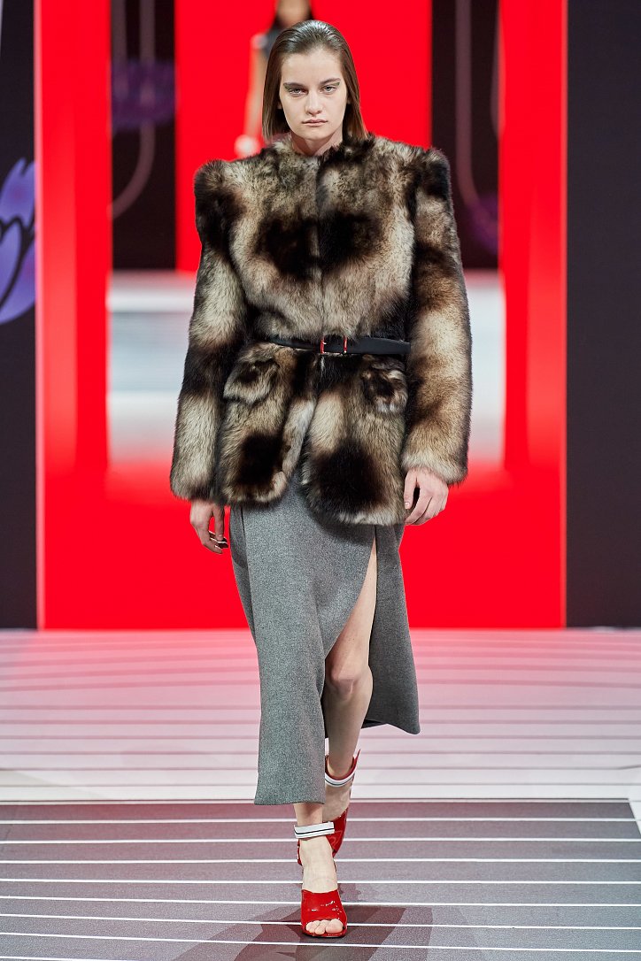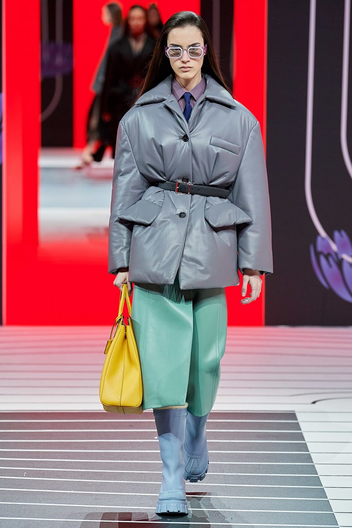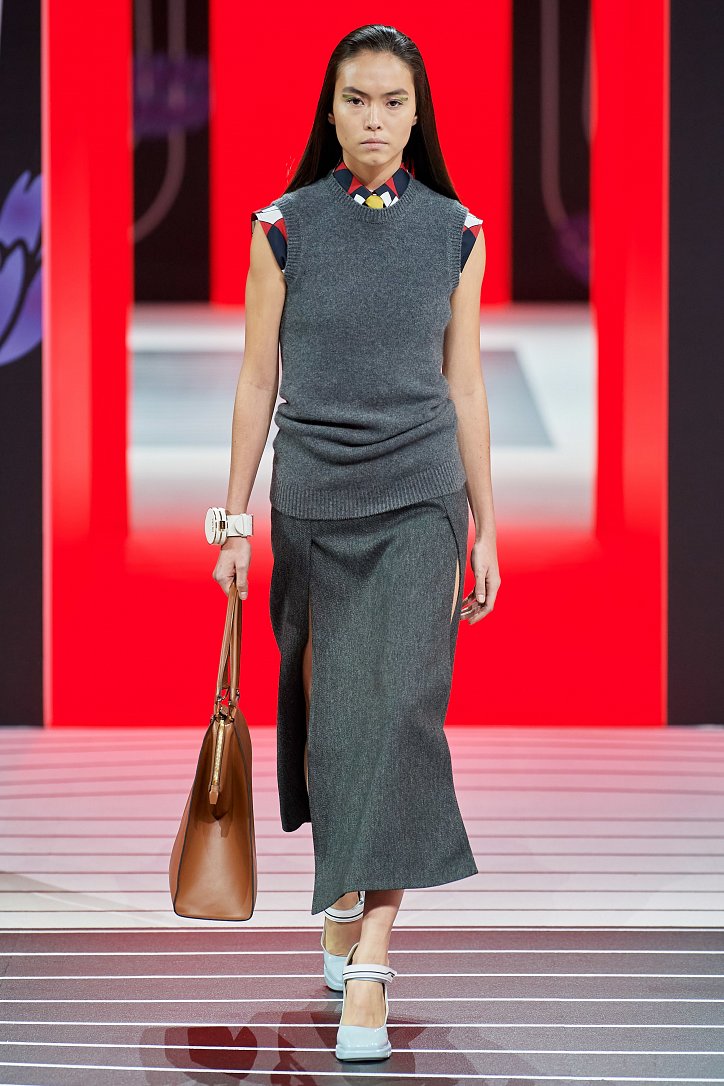 Быть сильной и женственной одновременно – возможно! Именно таким был посыл новой коллекции Prada осень-зима 2020-2021. Миучча Прада решила соединить воедино «гардеробные» атрибуты бизнес-леди и утончённой и даже немного легкомысленной женщины. В результате на подиуме появились модели в классических деловых однобортных жакетах, перехваченных на талии кожаными ремнями, а пару им составили юбки из шелковой бахромы, взлетающий и оголяющей ноги при каждом шаге.