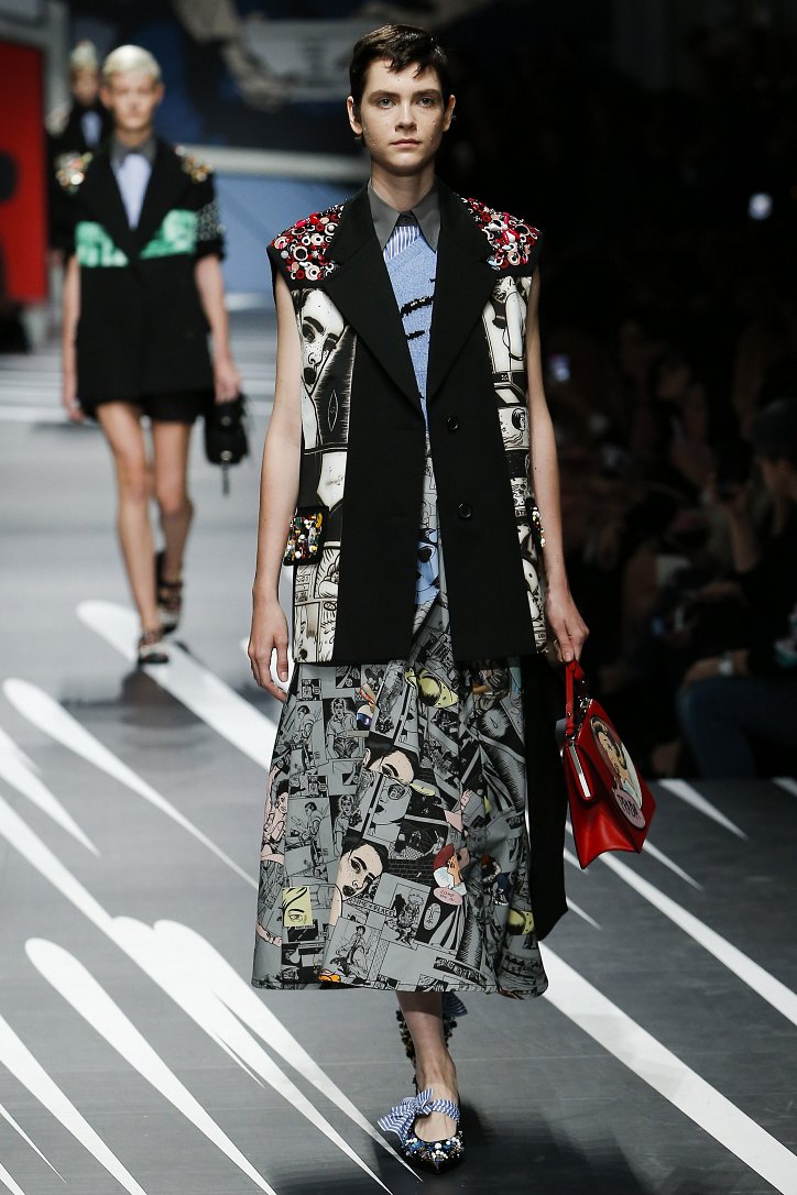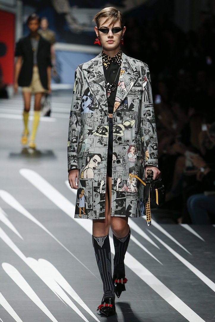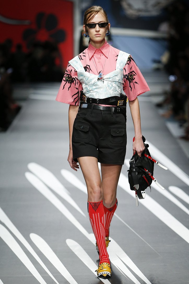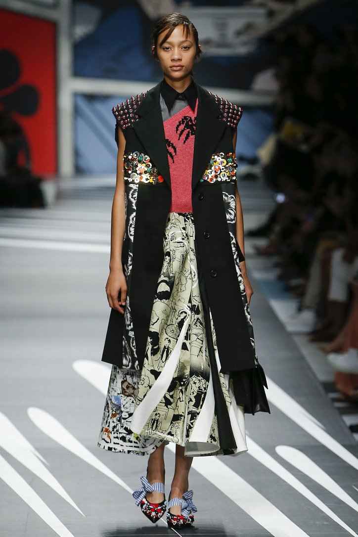 Можно ли с помощью моды изменить мир? Миучча Прада считает, что это вполне возможно. И предлагает женщинам начать «крестовый поход», используя в этой войне за свои права одежду. Для этого, по мнению дизайнера, как нельзя лучше подойдут темные плащи, надетые поверх светлых «офисных» сорочек, пальто, украшенные рисунками из комиксов, жакеты и куртки в стиле оверсайз, короткие шорты, рубашки с пауками, блузы в стиле пэчворк, блестящие плащи и футболки с рисунками-цитатами с выставки художниц середины прошлого века – коллекция Prada весна-лето 2018 демонстрирует необыкновенный микс из уличной моды восьмидесятых, гранжа, романтики и спорта. Именно так должна выглядеть модница новой формации!