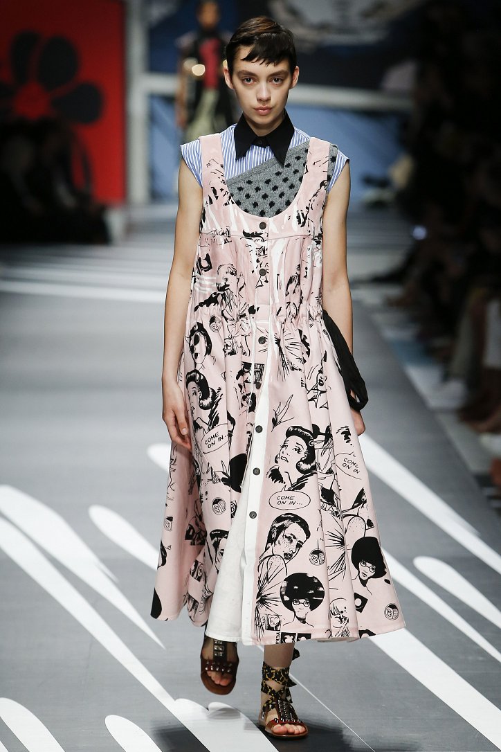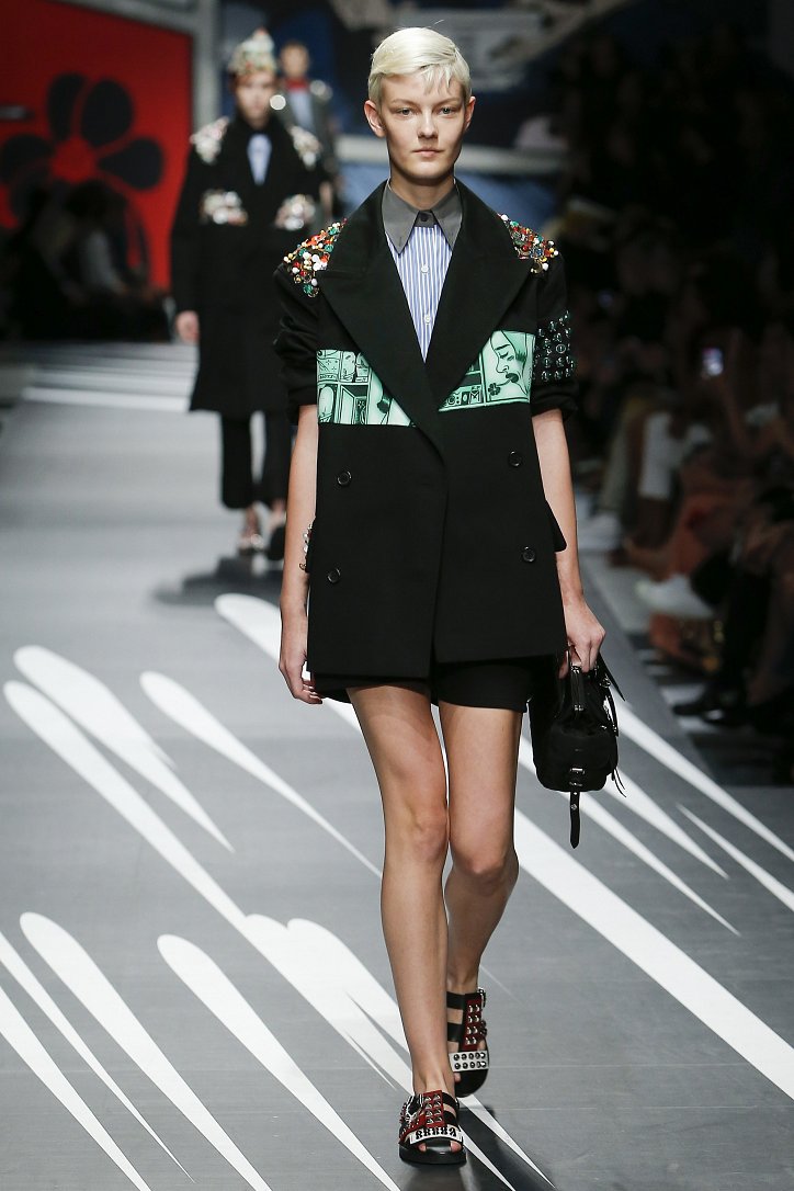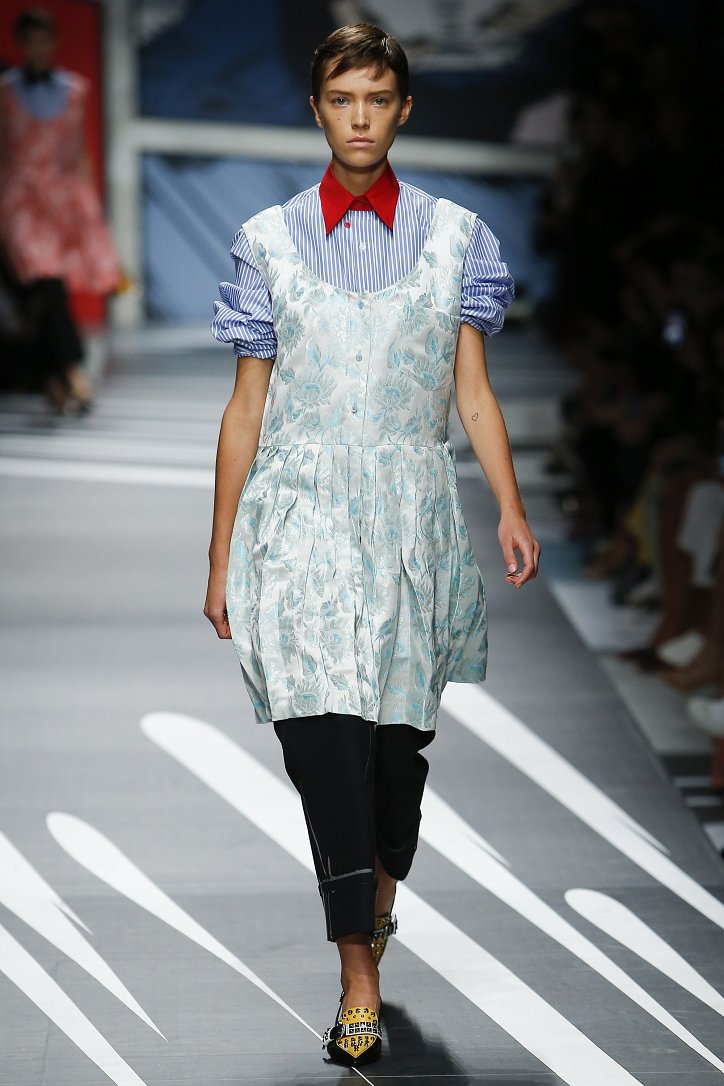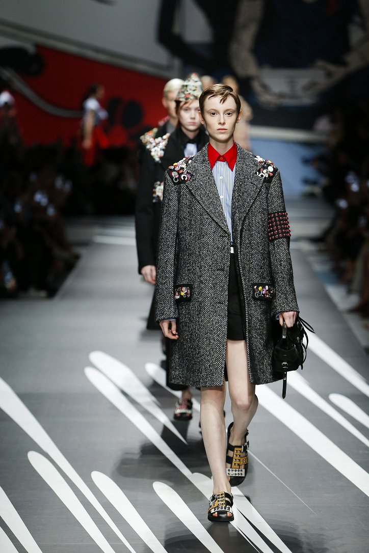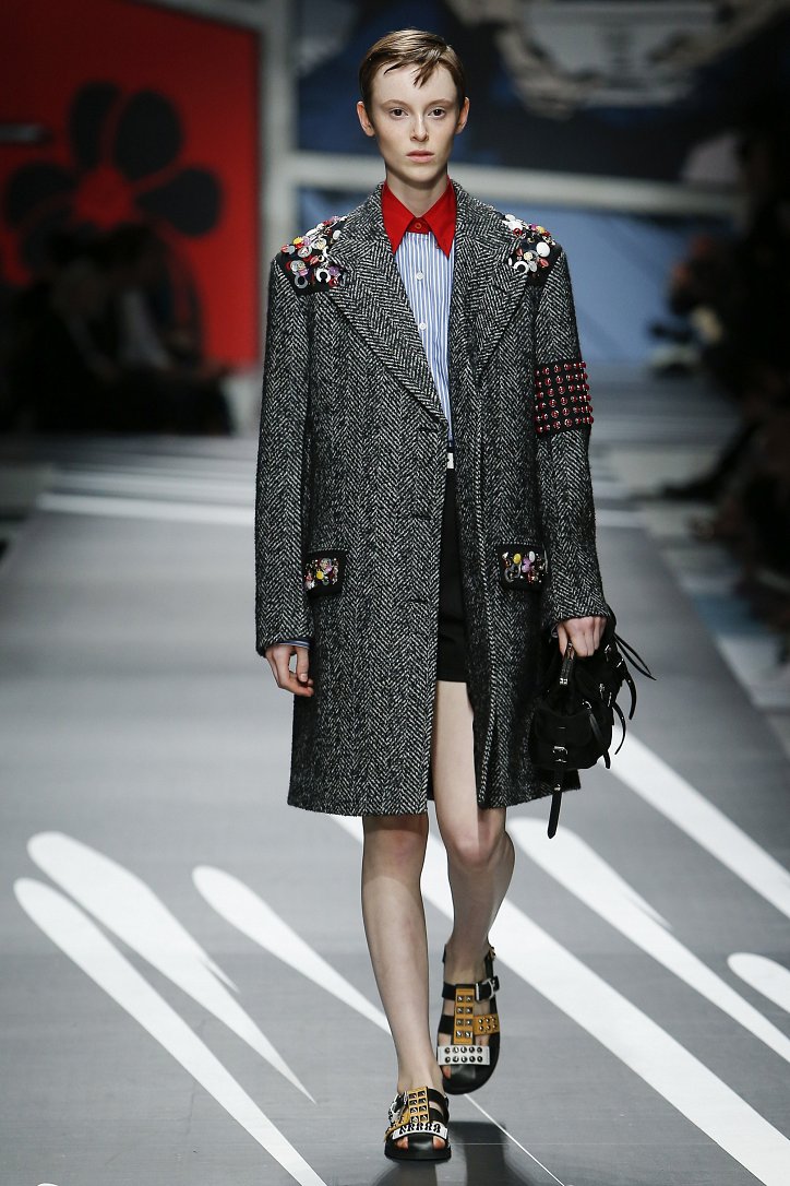 Можно ли с помощью моды изменить мир? Миучча Прада считает, что это вполне возможно. И предлагает женщинам начать «крестовый поход», используя в этой войне за свои права одежду. Для этого, по мнению дизайнера, как нельзя лучше подойдут темные плащи, надетые поверх светлых «офисных» сорочек, пальто, украшенные рисунками из комиксов, жакеты и куртки в стиле оверсайз, короткие шорты, рубашки с пауками, блузы в стиле пэчворк, блестящие плащи и футболки с рисунками-цитатами с выставки художниц середины прошлого века – коллекция Prada весна-лето 2018 демонстрирует необыкновенный микс из уличной моды восьмидесятых, гранжа, романтики и спорта. Именно так должна выглядеть модница новой формации!