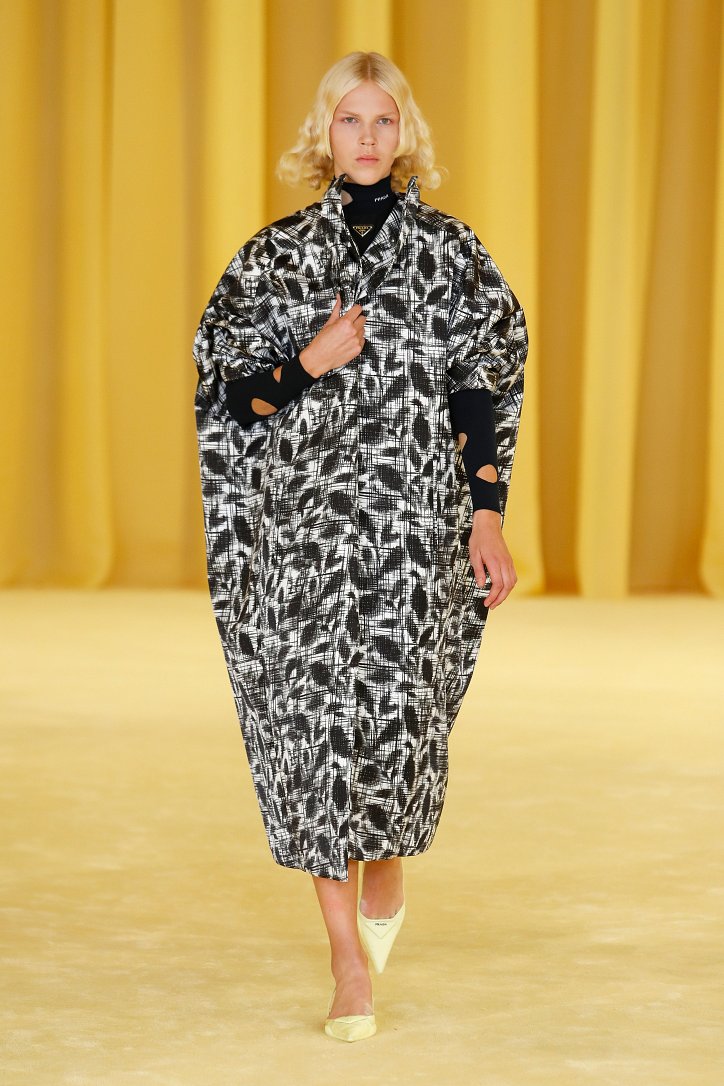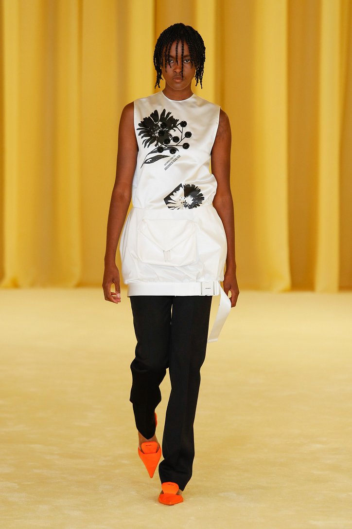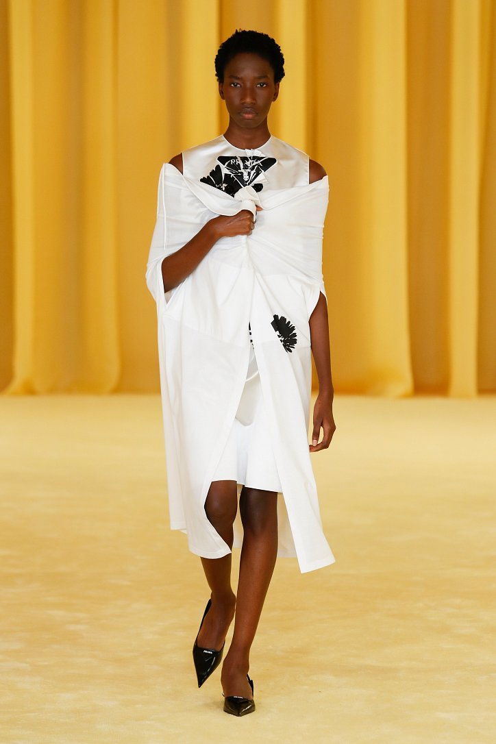 Весенне-летняя коллекция Prada стала первой совместной работой Миуччи Прада и Рафа Симонса. Эксперты сразу же стали выискивать в представленных моделях черты стиля обоих дизайнеров. Так, на толстовках и пышных юбках были «опознаны» принты из коллекции Prada весна 1996, а атласные платья прямого кроя украшали слова и графика – в лучших традициях Симонса. А вот в эффектной и оригинальной верхней одежде угадывались черты творчества обоих директоров модного итальянского дома.