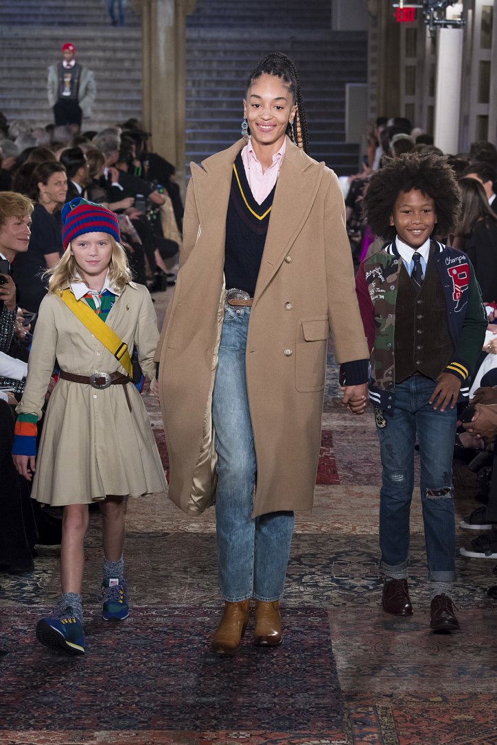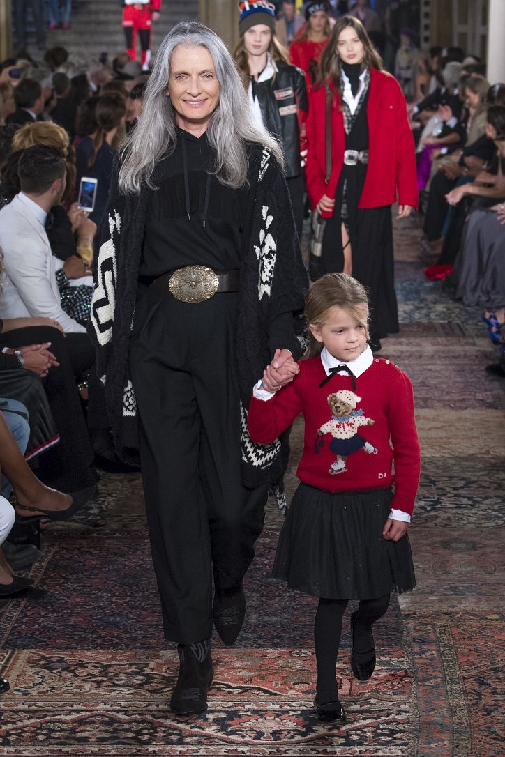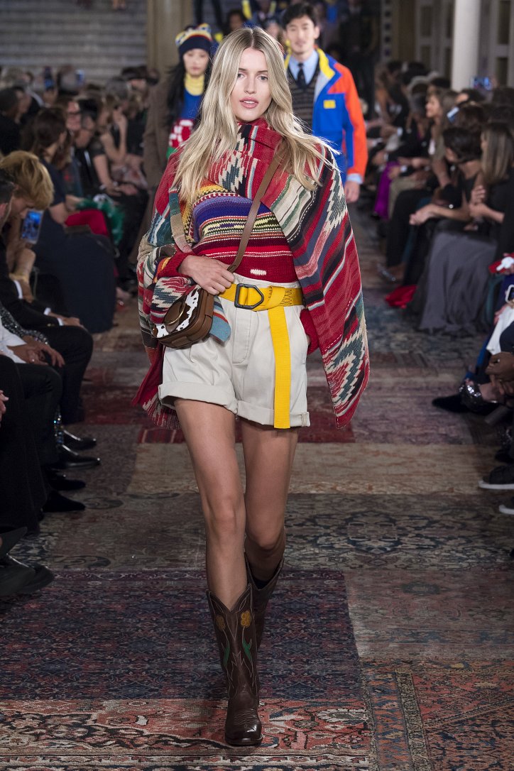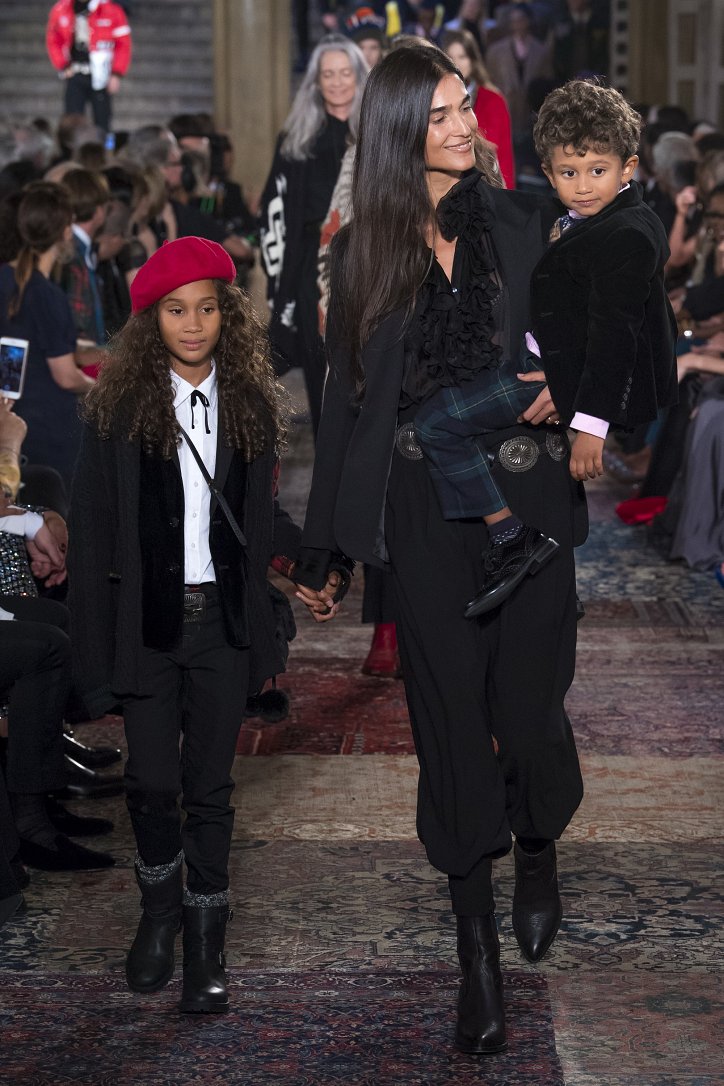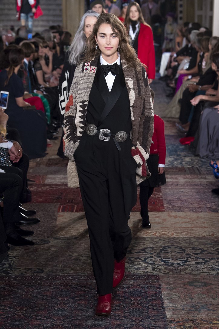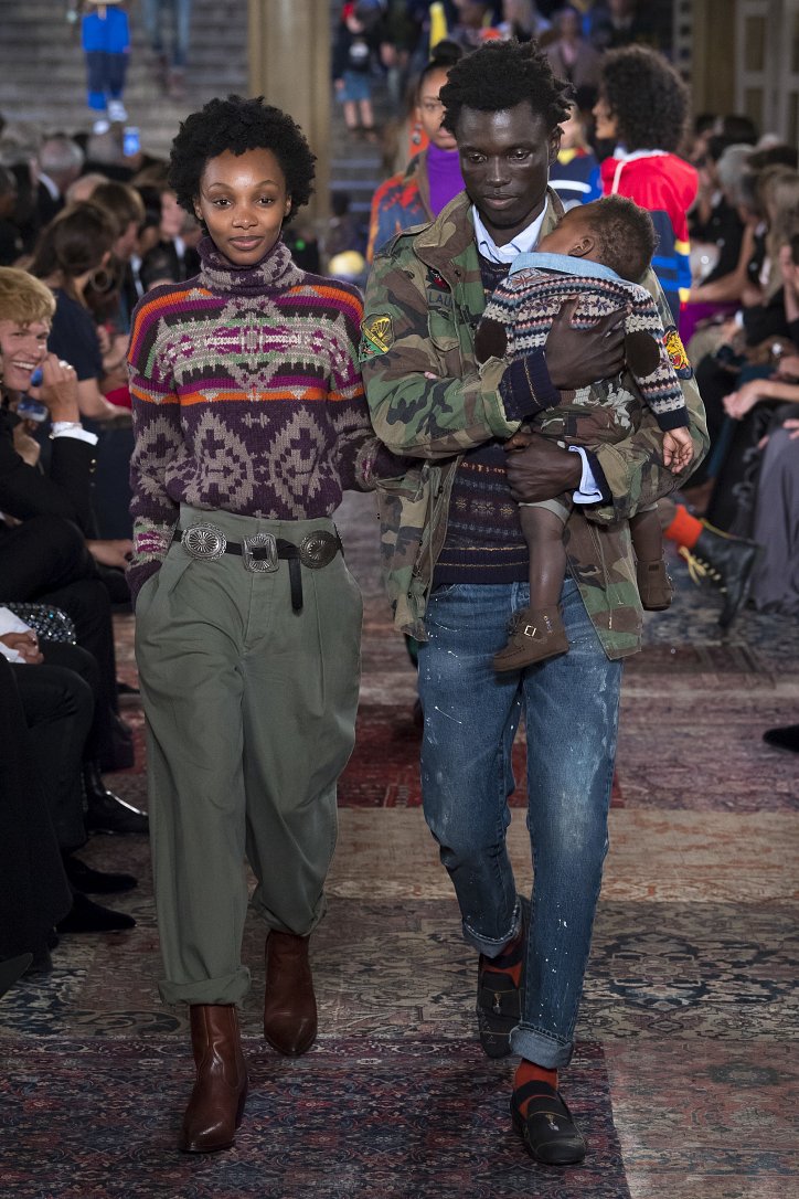 Пестрые кардиганы в стиле индейских накидок, клетчатые рубашки, деним и грубые вязаные свитеры, пэчворк и замша – тема Дикого Запада звучала особенно ярко на юбилейном показе. А показ линейки Polo Ralph Lauren получился по-настоящему семейным: модели выходили парами вместе с детьми.