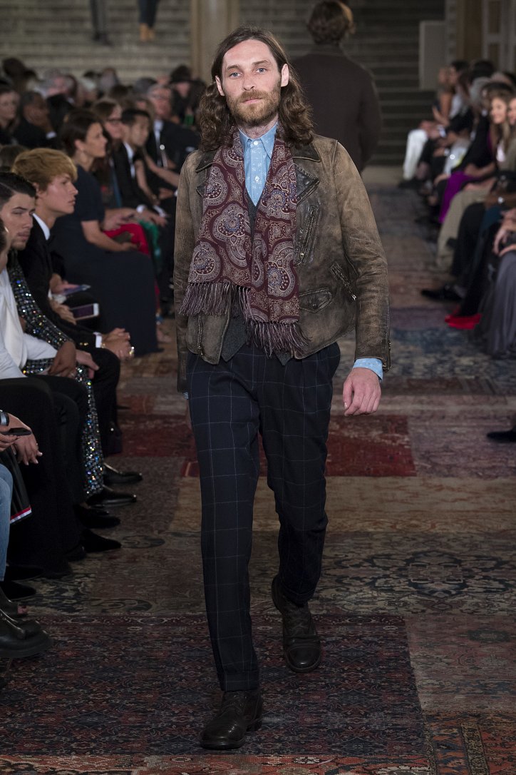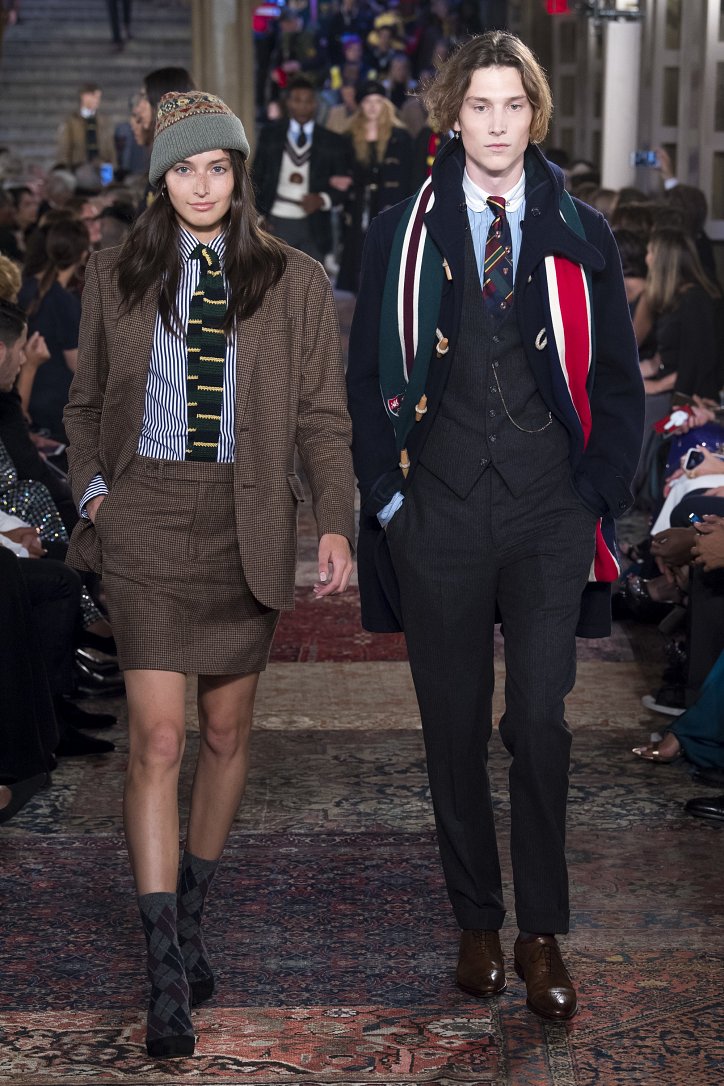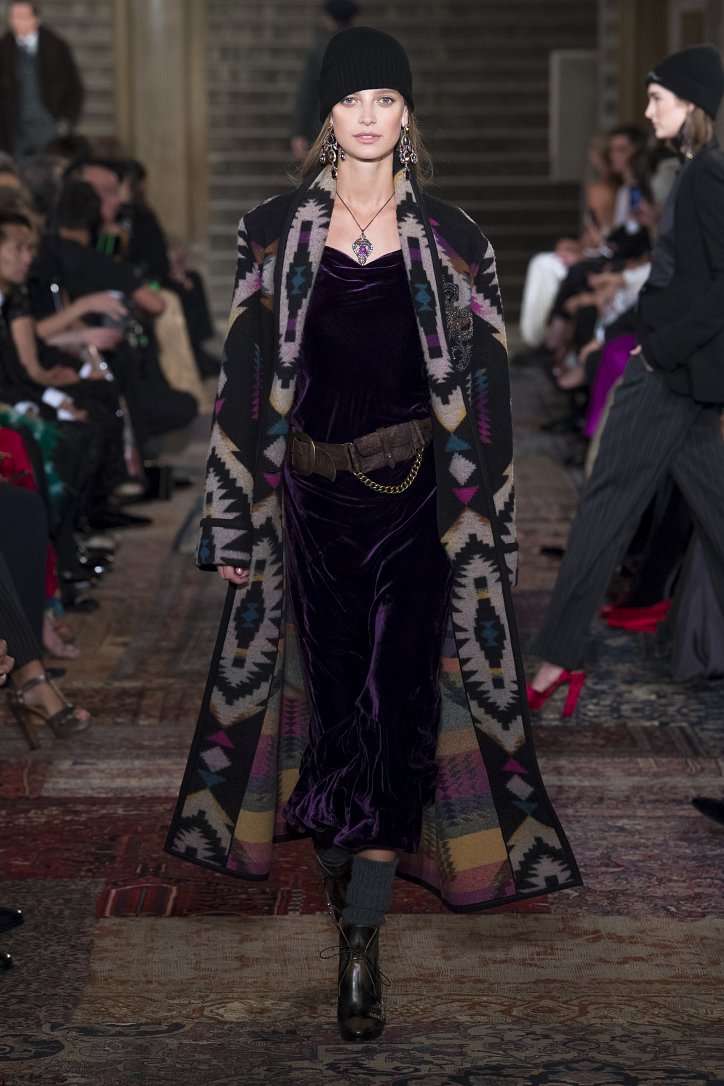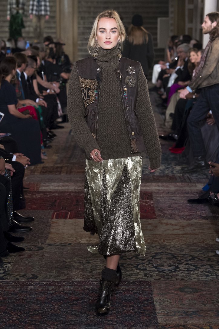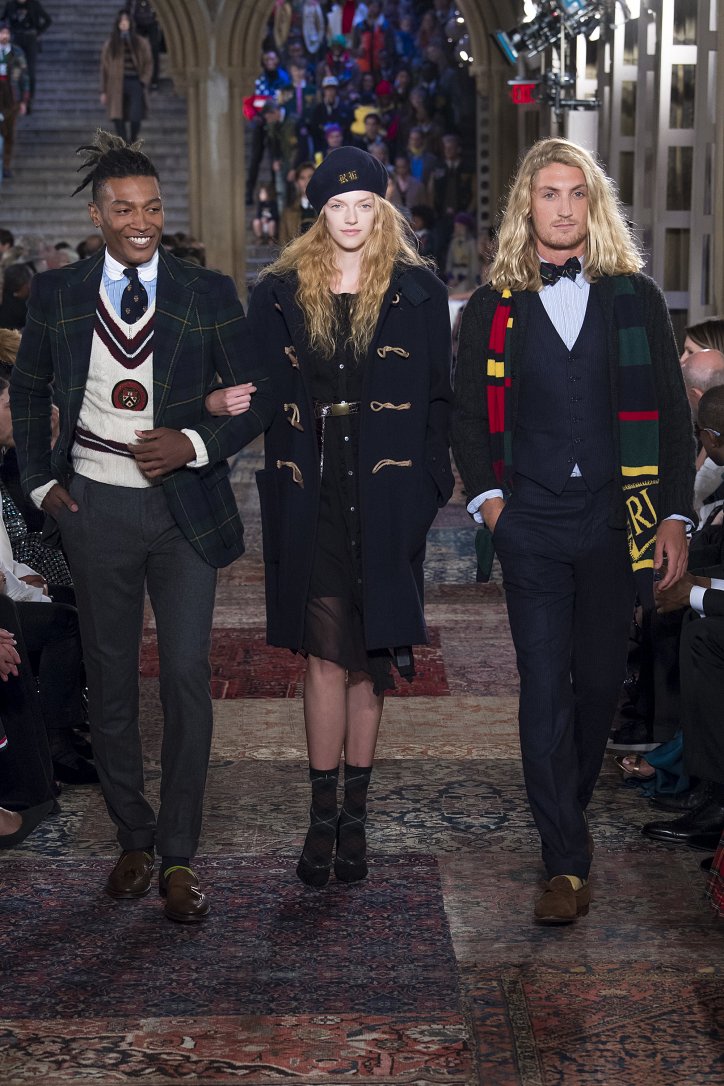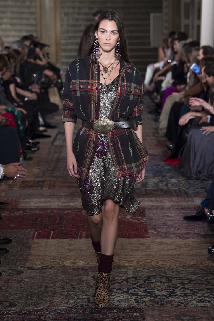 Пестрые кардиганы в стиле индейских накидок, клетчатые рубашки, деним и грубые вязаные свитеры, пэчворк и замша – тема Дикого Запада звучала особенно ярко на юбилейном показе. А показ линейки Polo Ralph Lauren получился по-настоящему семейным: модели выходили парами вместе с детьми.
