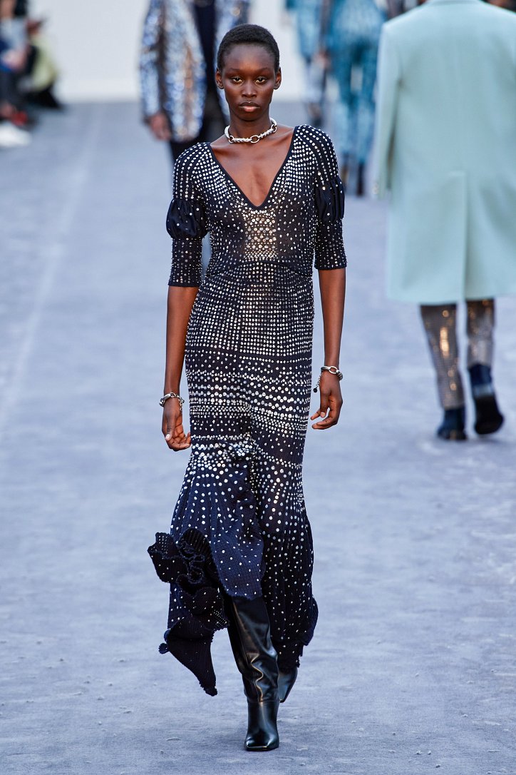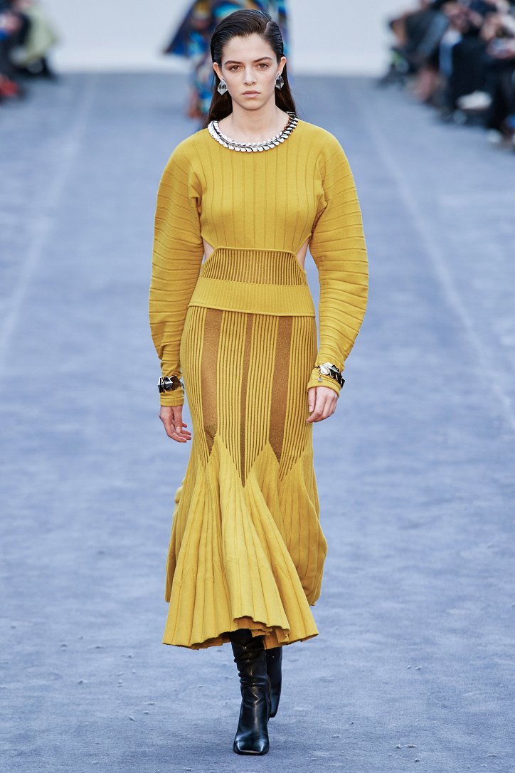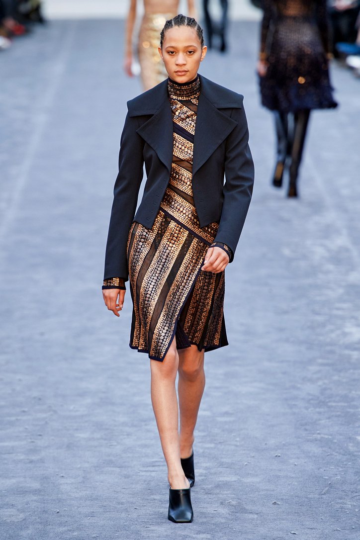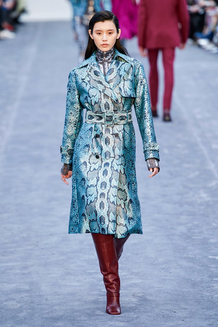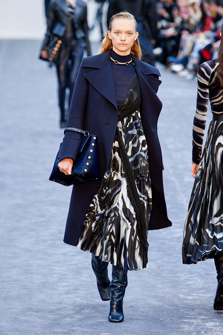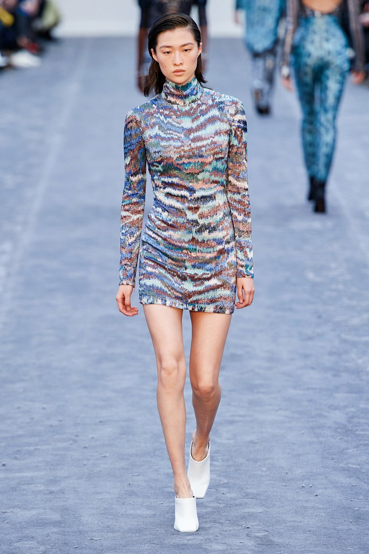 Отношения Пола Сарриджа и дома моды Roberto Cavalli изначально не были простыми и однозначными. Придя на место Питера Дундаса, новый креативный директор решил изменить и ДНК бренда, который прочно ассоциировался с роскошной жизнью, гламуром и туалетами для «особых случаев». Поставив цель – создать модную одежду, которую можно будет носить не только ночью, но и днем – дизайнер «ринулся в бой», максимально снизив градус гламура и яркости. И вот – новая коллекция Roberto Cavalli. И что же? Как видим, «вирус Кавалли» оказался заразен: даже сдержанный по натуре Сарридж не смог долго противостоять ярким цветам, блеску пайеток и анималистике: в осенне-зимней коллекции появился «тигр» (что, правда, не в натуральном окрасе, а в виде яркого абстрактного паттерна) и «змея» в серо-голубой интерпретации.