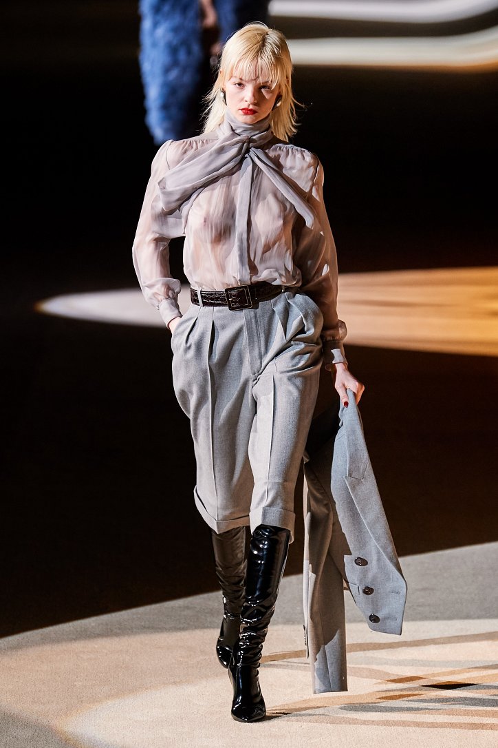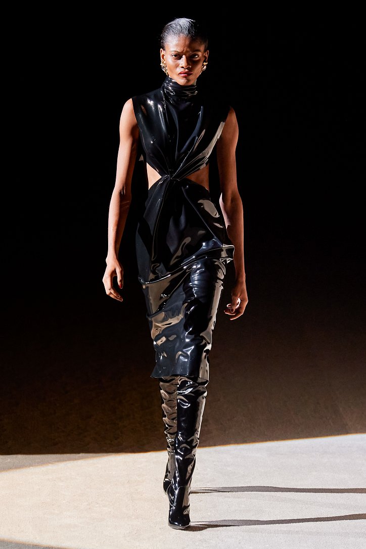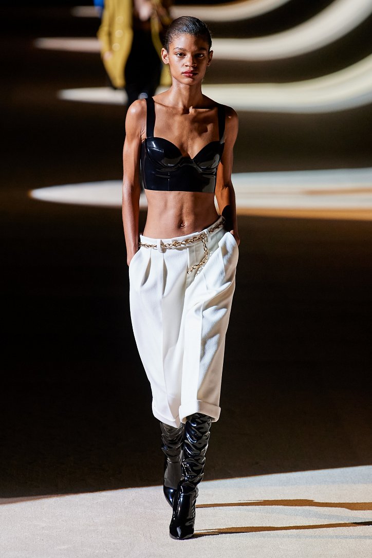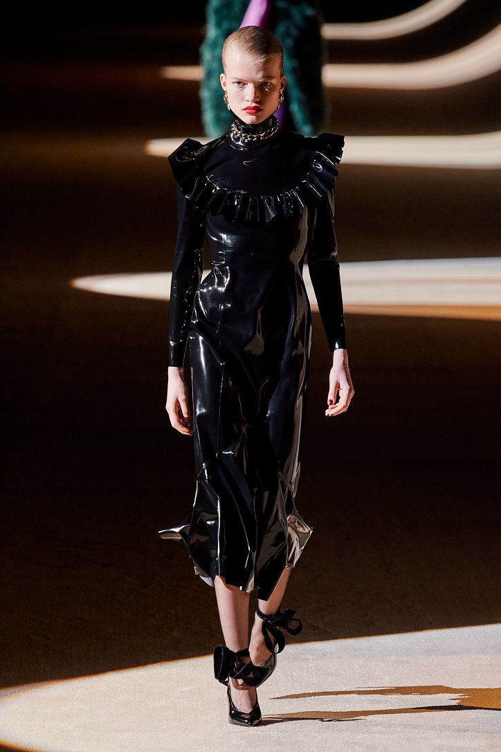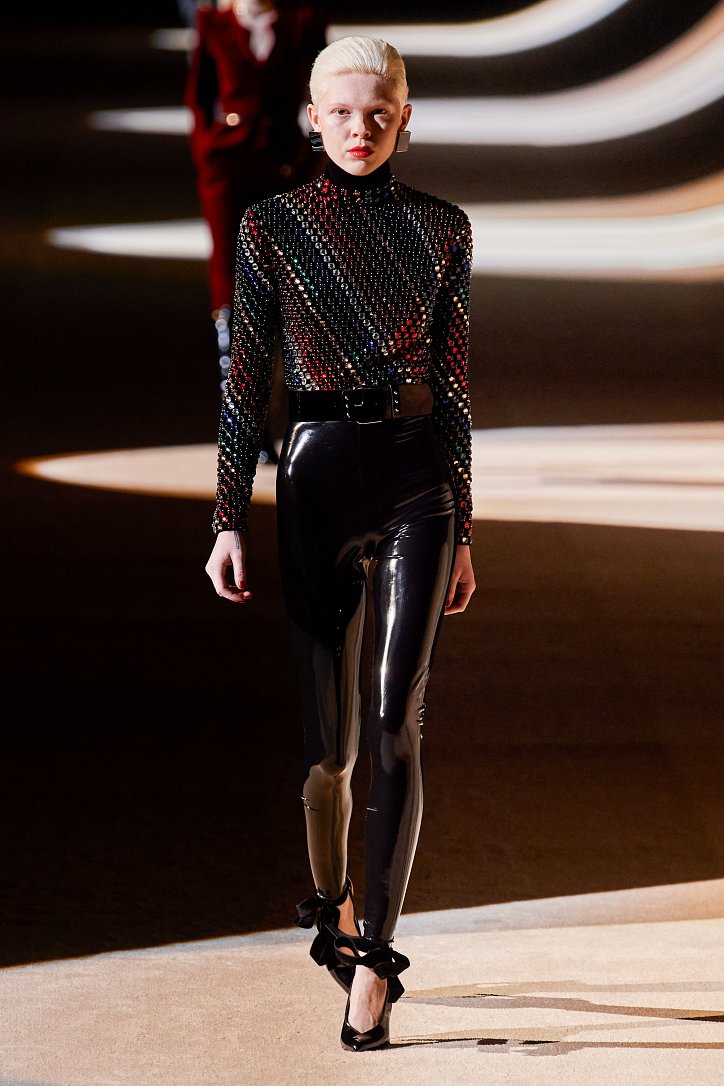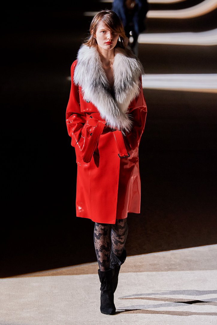 Таким образом Энтони Ваккарелло решил прославить силу женщин и их право на самовыражение. Продолжили тему латексные юбки и сапоги-ботфорты, кожаные и кружевные бра и боди, мужские пальто и шелковые блузы с воротником-бантом, пушистые полушубки из яркого меха и коктейльные платья все из того же латекса.