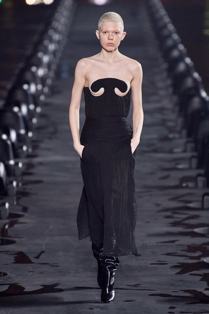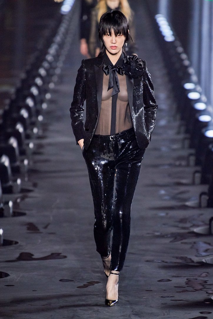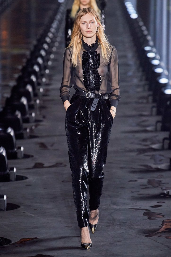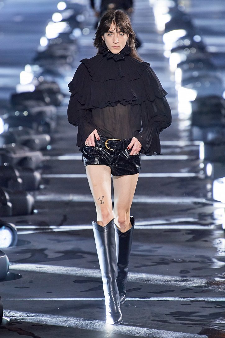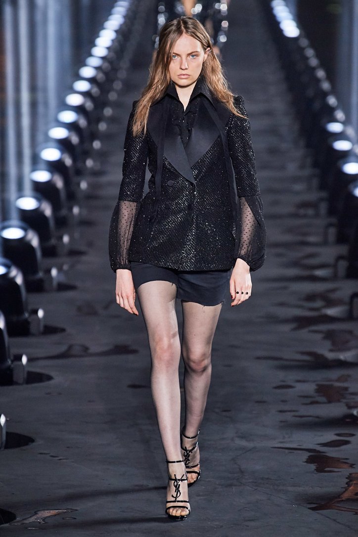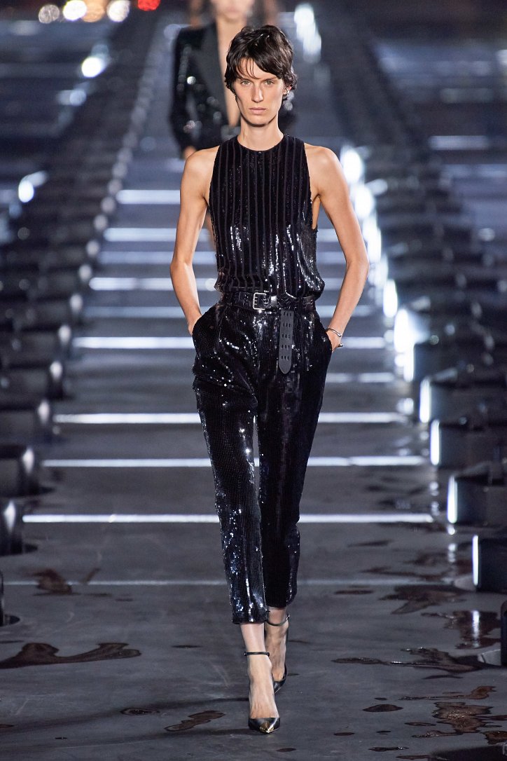 Прозрачные блузы и глубокие декольте, микро-шорты и мини-платья, блеск пайеток и черная кожа, вечерние комбинезоны и смокинги – новая коллекция Saint Laurent, созданная Энтони Ваккарелло, вновь демонстрирует дерзкую красоту и неприкрытую сексуальность. В лучших традициях бренда.