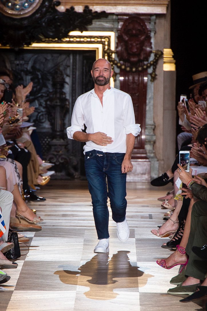 Создавая коллекцию Schiaparelli Haute Сouture осень-зима 2018-2019, Бертран Гийон черпал вдохновение в личном стиле основательницы бренды – Эльзы Скиапарелли. По словам дизайнера, в жизни она строго следовала непреложному правилу: для работы – строгая «униформа» (чаще всего – в черном цвете), а для выходов в свет – блеск, перья и вышивка со стразами и кристаллами. А так как коллекция, которую создал Гийон, все же относится к кутюрным, то, естественно, большая часть моделей воспроизводила стиль «выходного» гардероба дизайнера.