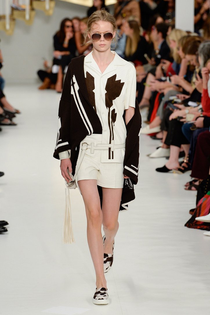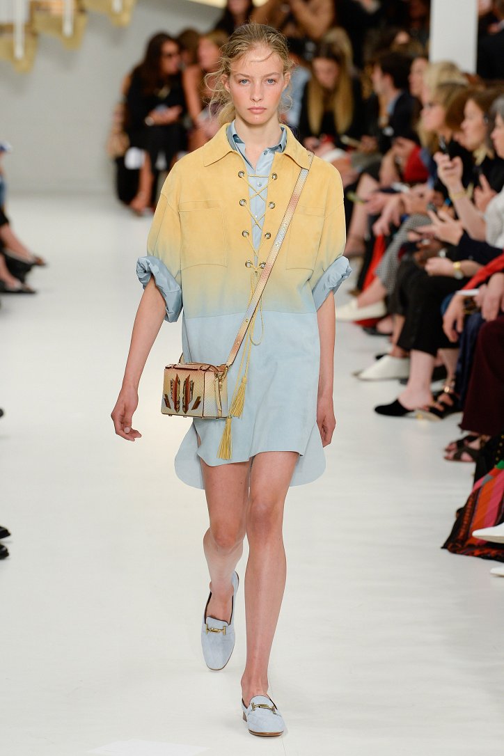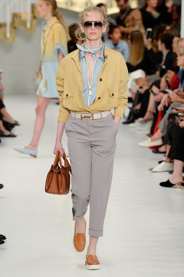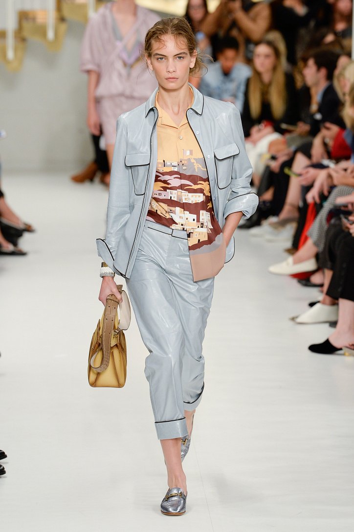 Новая коллекция Tod’s весна-лето 2018 – это Италия в чистом виде. Множество оттенков желтого, бежевого и коричневого навевали мысли о песчаных пляжах, светло-голубой напоминал о морской лазури, а белый и черный – о классике и непреходящих, вечных ценностях. Особенно эффектно выглядел песочно-голубой градиент, в котором угадывалась береговая линия.