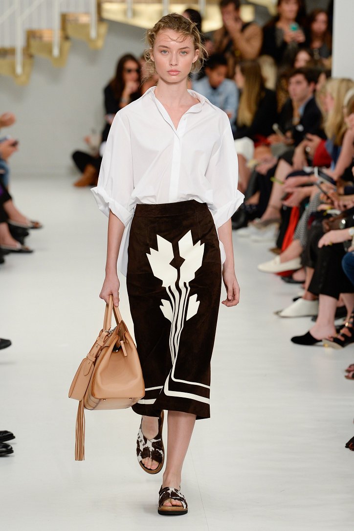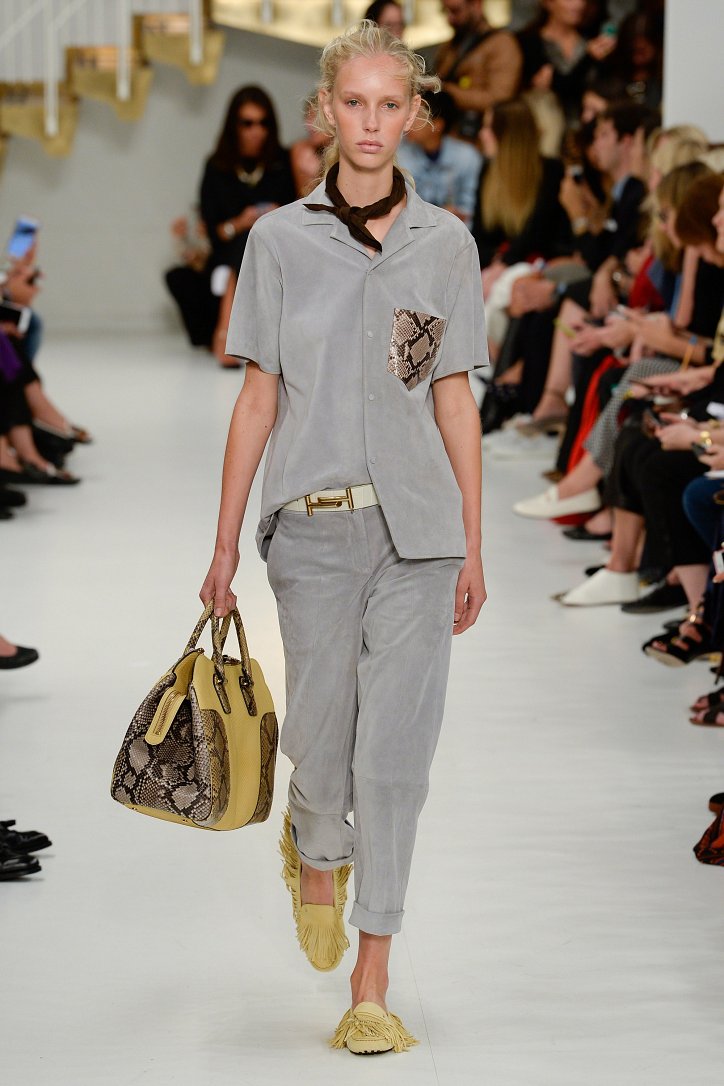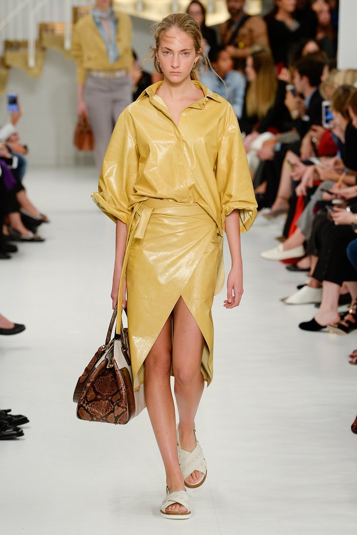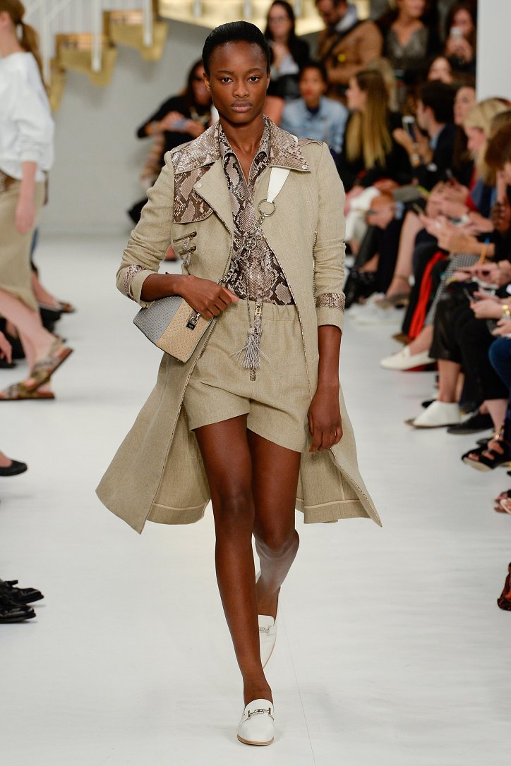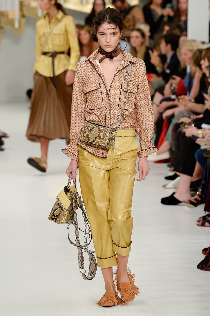 Новая коллекция Tod’s весна-лето 2018 – это Италия в чистом виде. Множество оттенков желтого, бежевого и коричневого навевали мысли о песчаных пляжах, светло-голубой напоминал о морской лазури, а белый и черный – о классике и непреходящих, вечных ценностях. Особенно эффектно выглядел песочно-голубой градиент, в котором угадывалась береговая линия.
