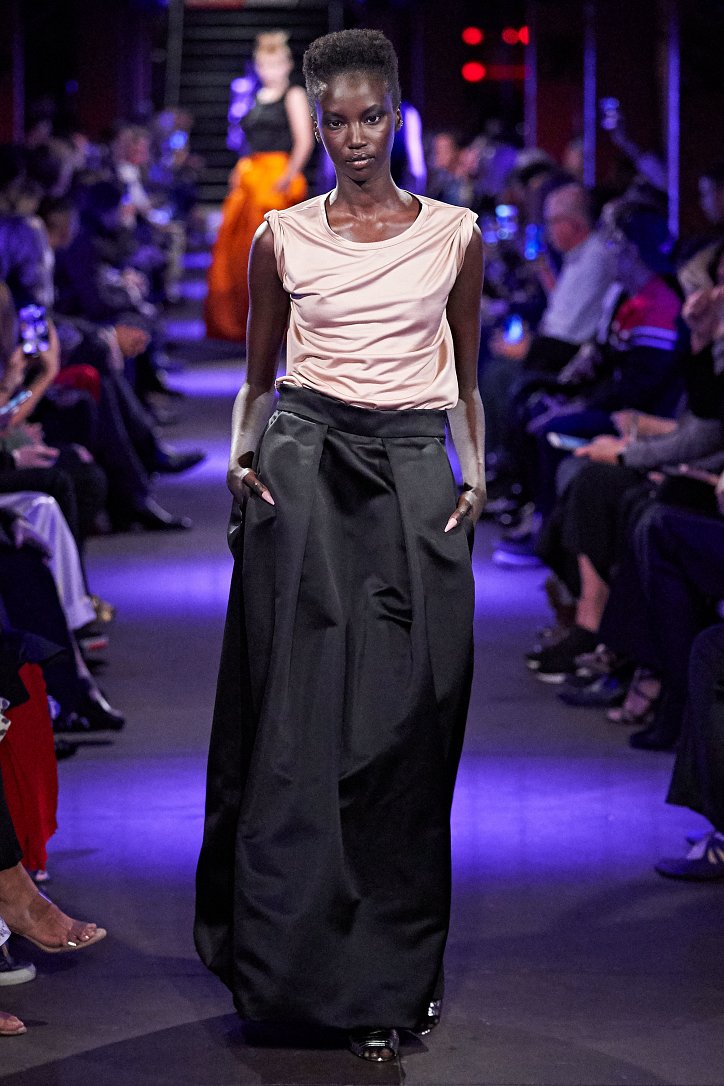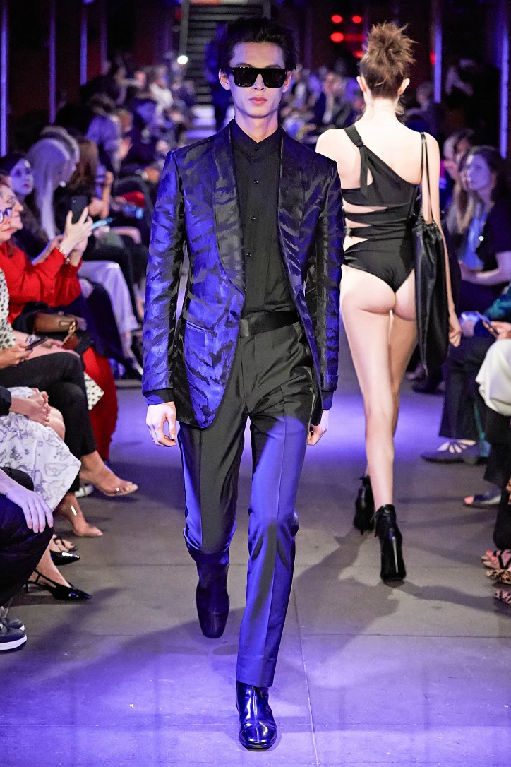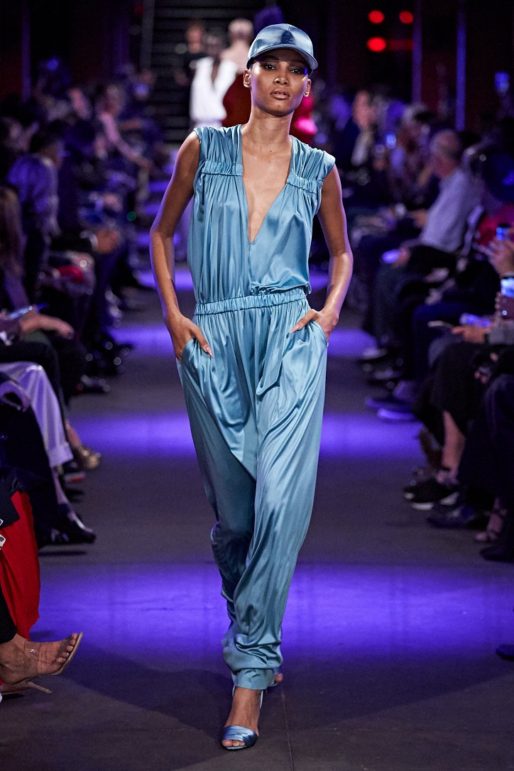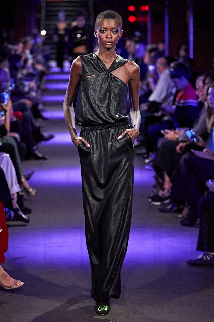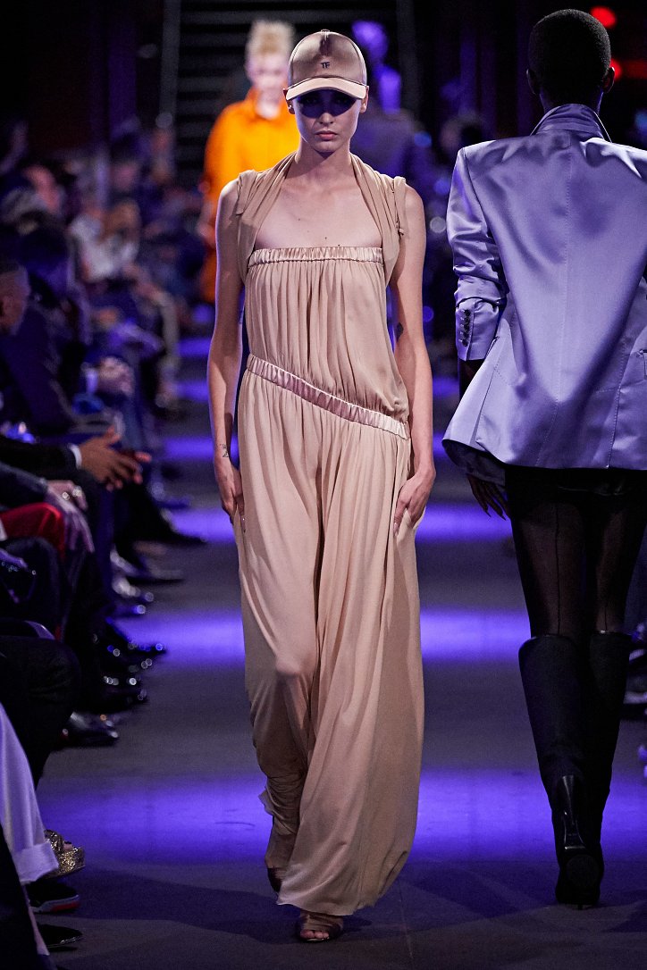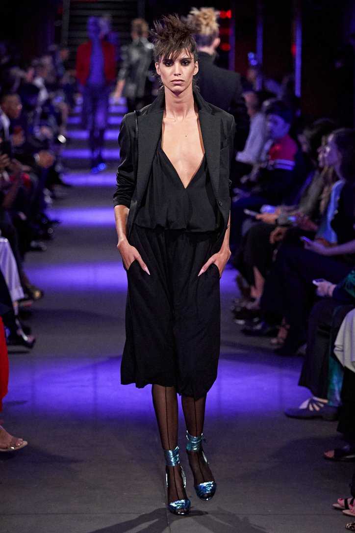 Итак, почти в полной темноте, на подсвеченном электрическим светом подиуме модели демонстрировали всевозможные версии футболок и шорт, которые великолепно сочетались с «фирменной» роскошный одеждой бренда: атласными жакетами, блестящими топами и юбками-макси из сатин-дюшеса.