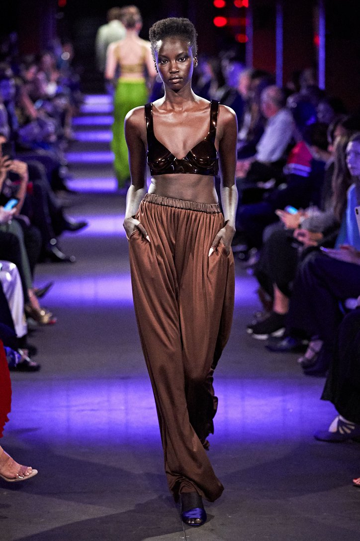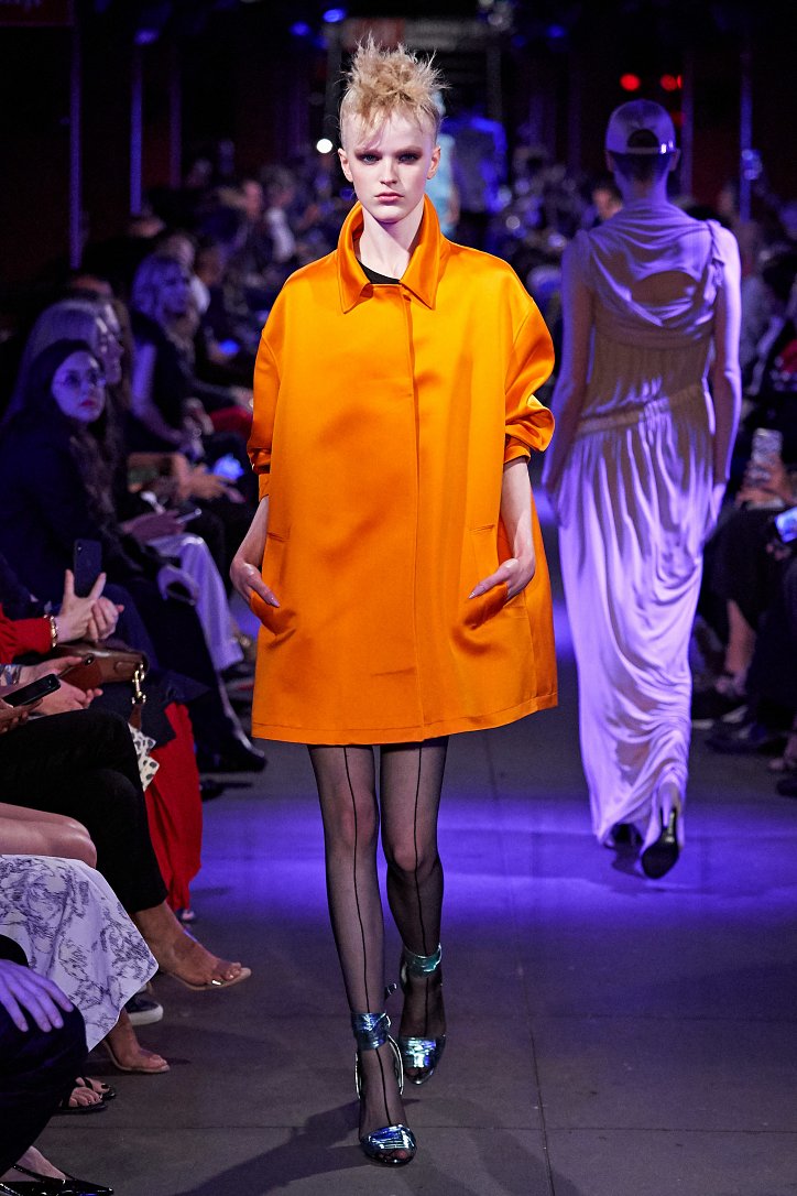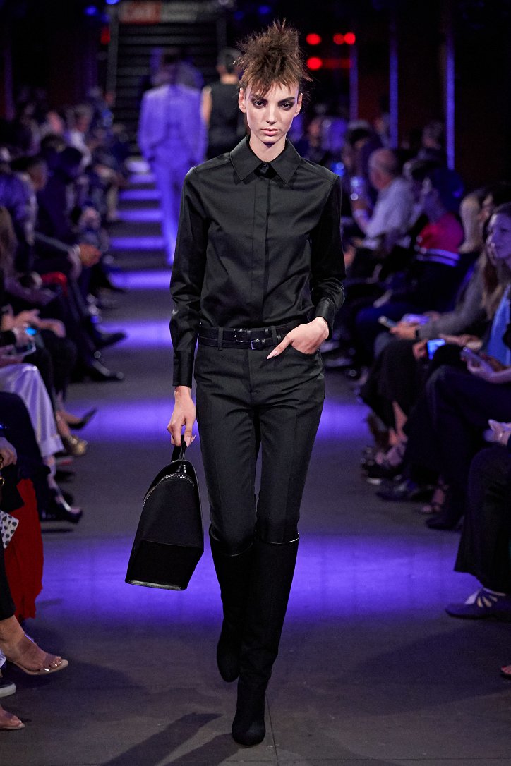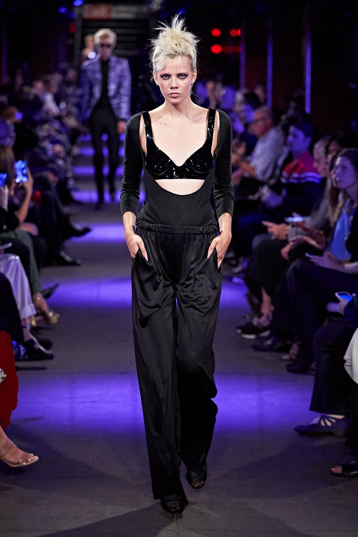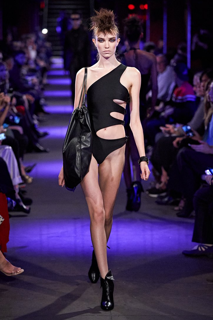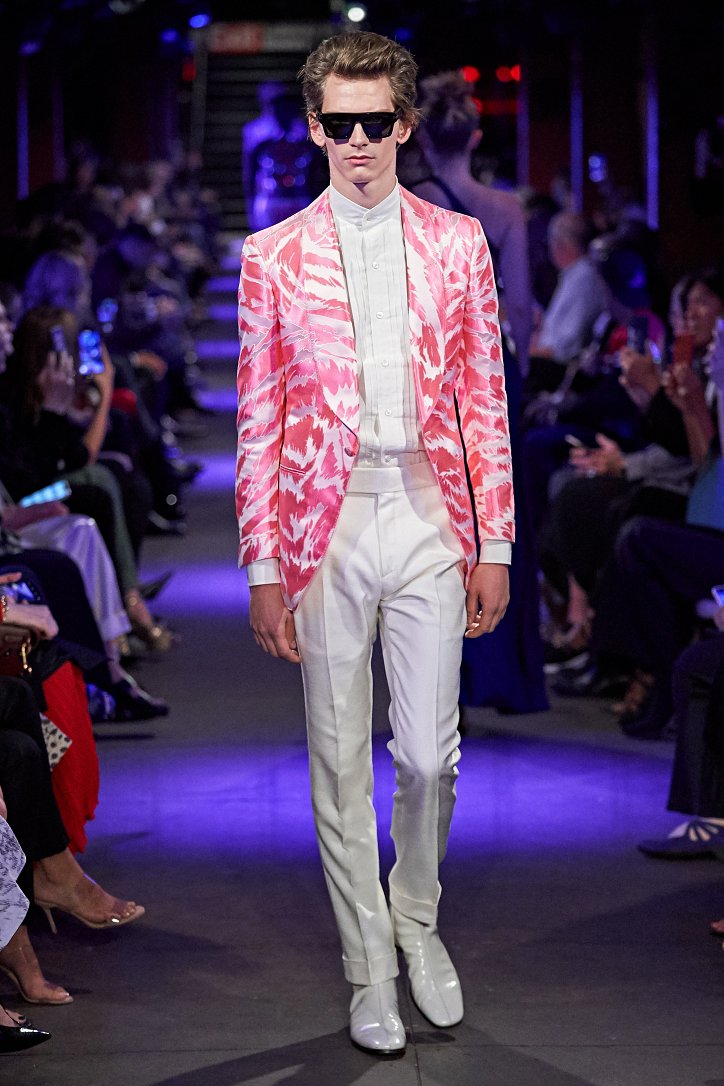 Итак, почти в полной темноте, на подсвеченном электрическим светом подиуме модели демонстрировали всевозможные версии футболок и шорт, которые великолепно сочетались с «фирменной» роскошный одеждой бренда: атласными жакетами, блестящими топами и юбками-макси из сатин-дюшеса.