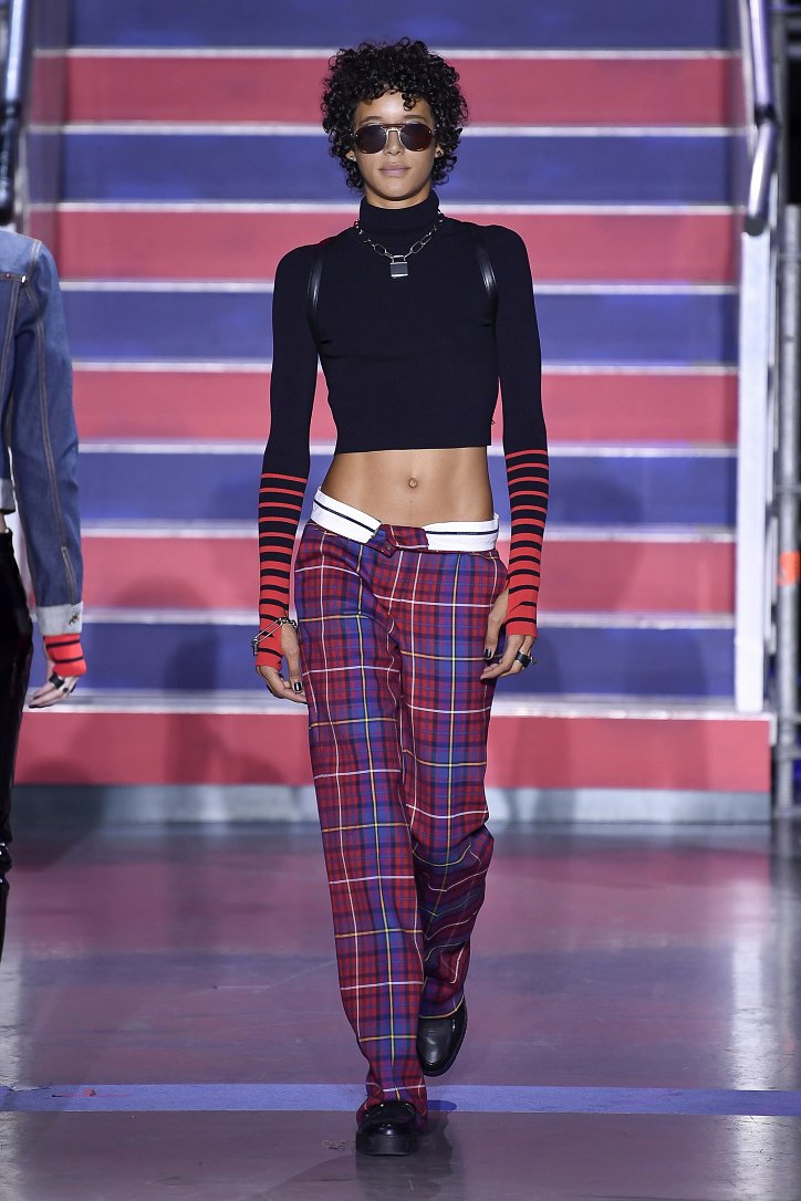 Сине-красная коллекция Tommy Hilfiger осень-зима 2017-2018 включала модные юбки в клетку и джинсы с лампасами, рубашки из фланели и пуловеры с принтами, цветочные платья и лакированные брюки, кожаные и джинсовые шорты, длинные пальто и сетчатые топы, платья-слипы в стиле гранж и худи, косухи и стеганые пуховики. Под стать одежде были и аксессуары. Словом, надпись Rock Circus, висевшая посреди концертного зала Roundhouse, себя полностью оправдала.