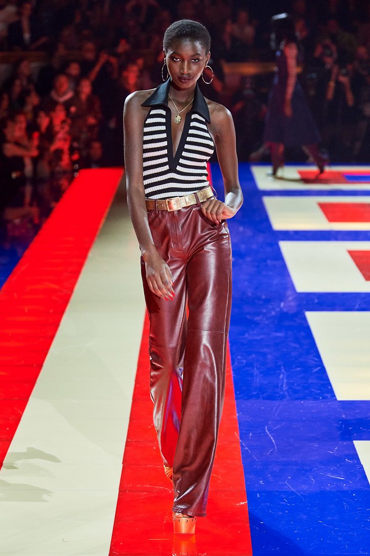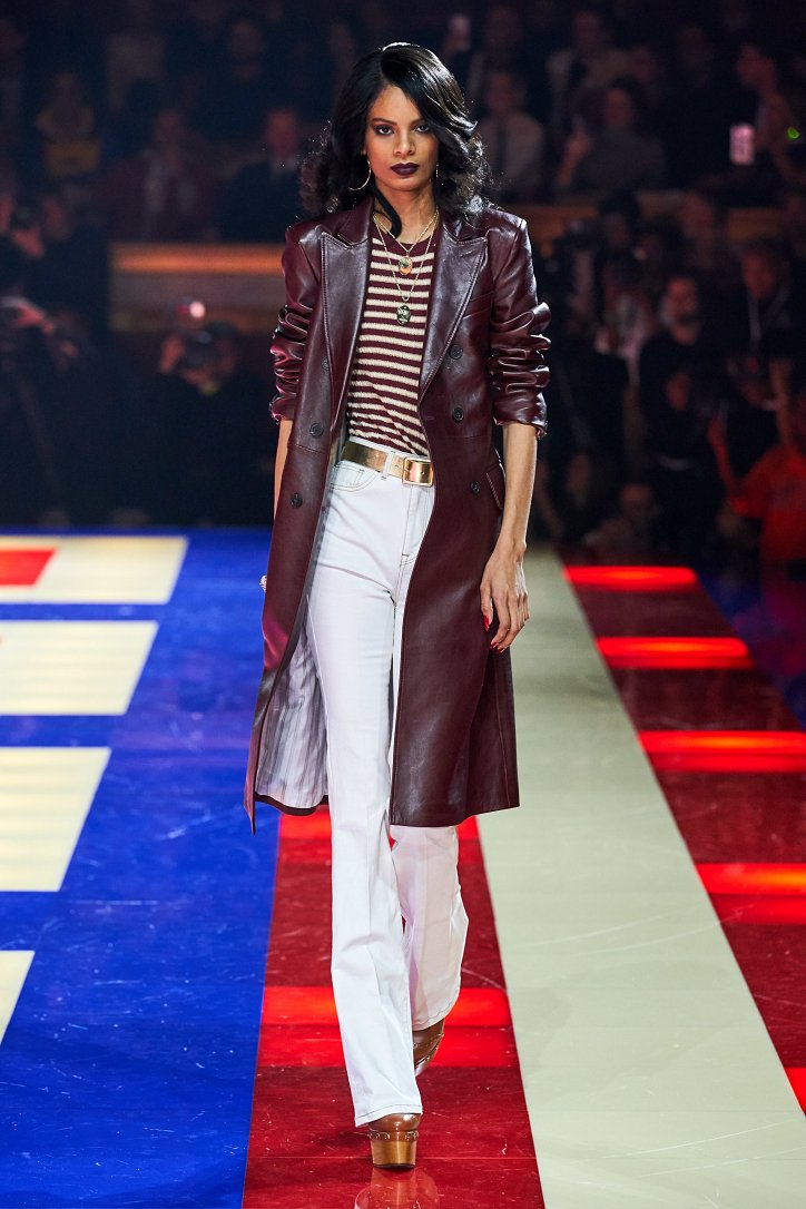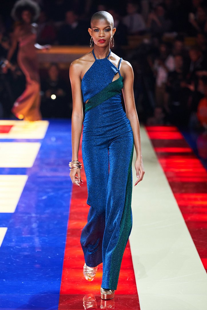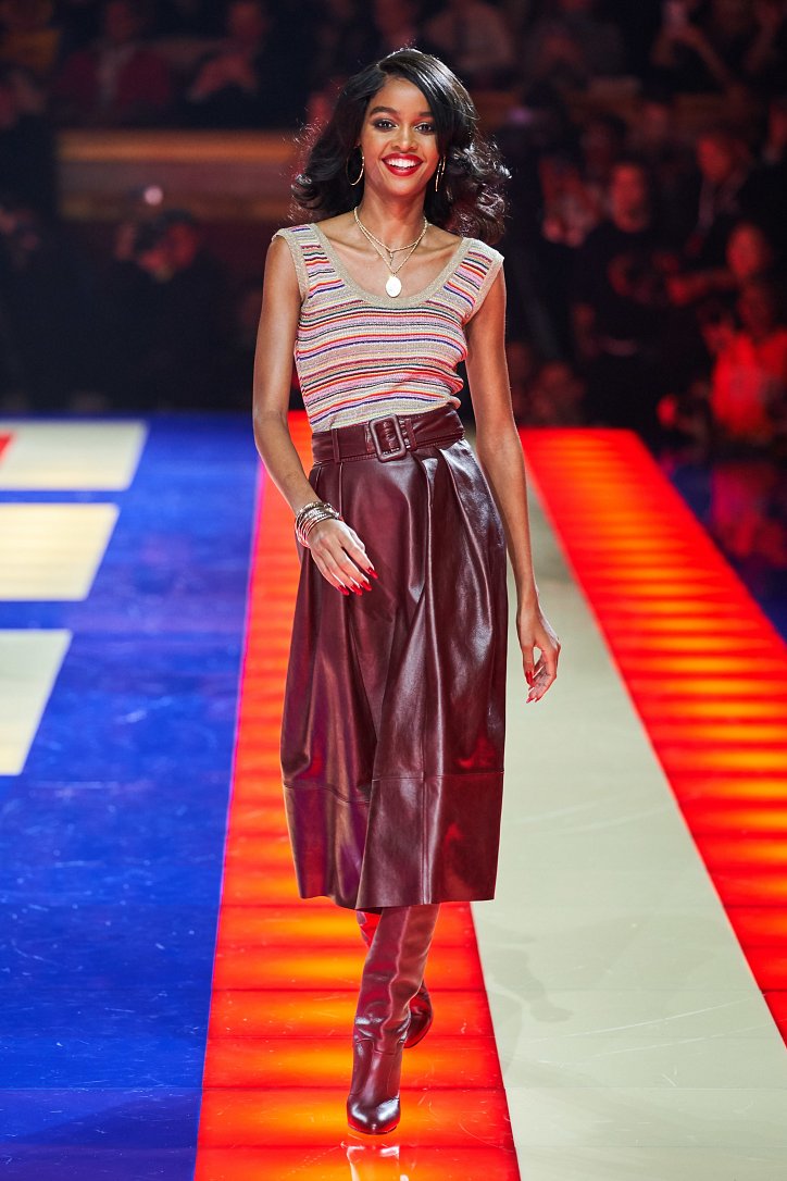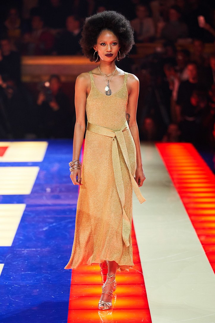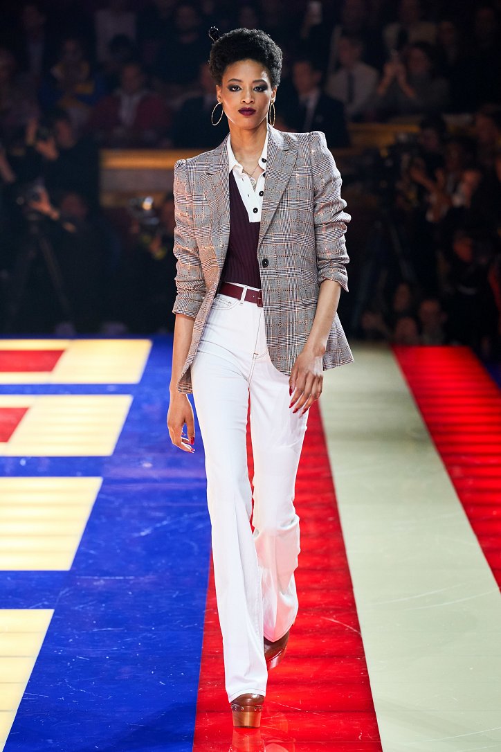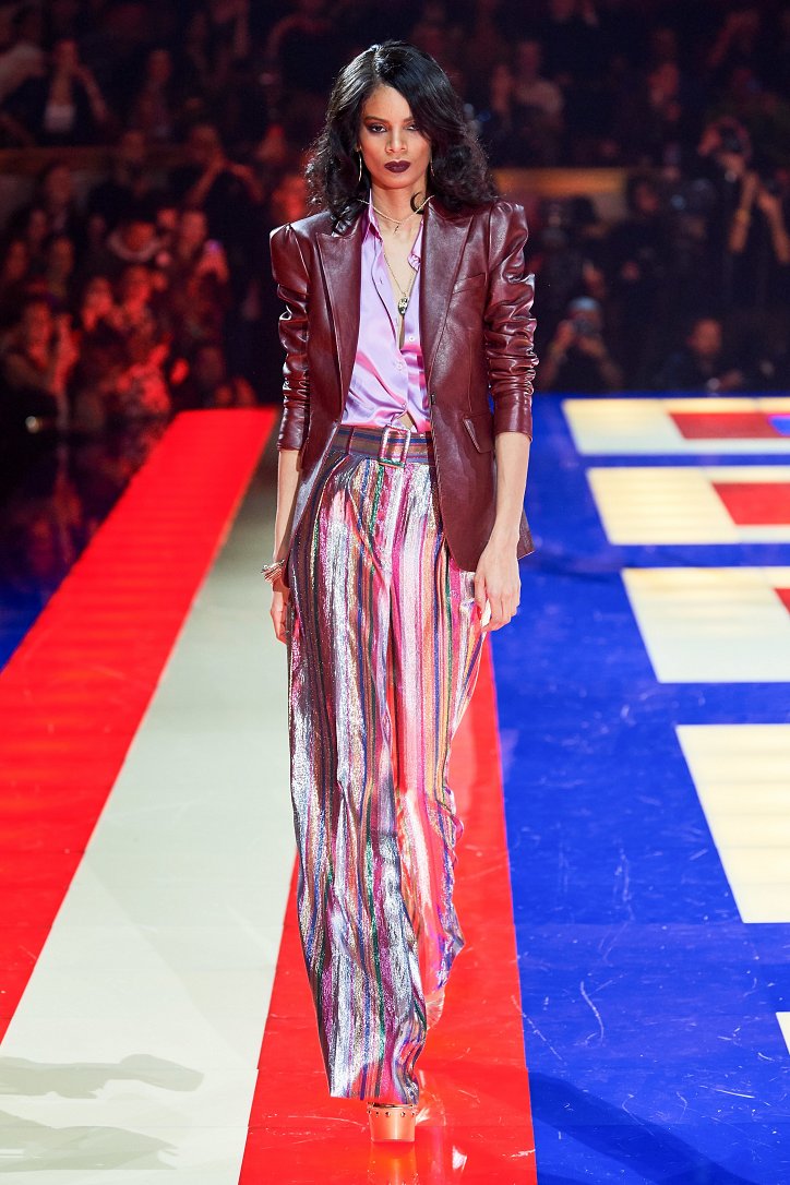 Деним и люрекс, брюки клеш и полосатый трикотаж, кожаные пальто и футболки-поло, клетчатые костюмы и обувь на высокой платформе – на подиуме вновь эстетика 70-ых. Новая коллекция Tommy Hilfiger, созданная американским дизайнером в сотрудничестве с певицей и актрисой Zendaya, выглядела не просто ярко – он буквально ослепляла! И не только блеском тканей: к «звездопаду» моделей сегодняшнего подиума добавили сияния и звезды эпохи семидесятых.