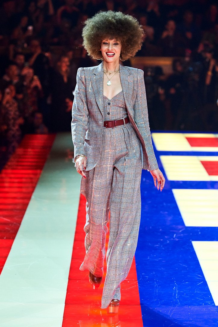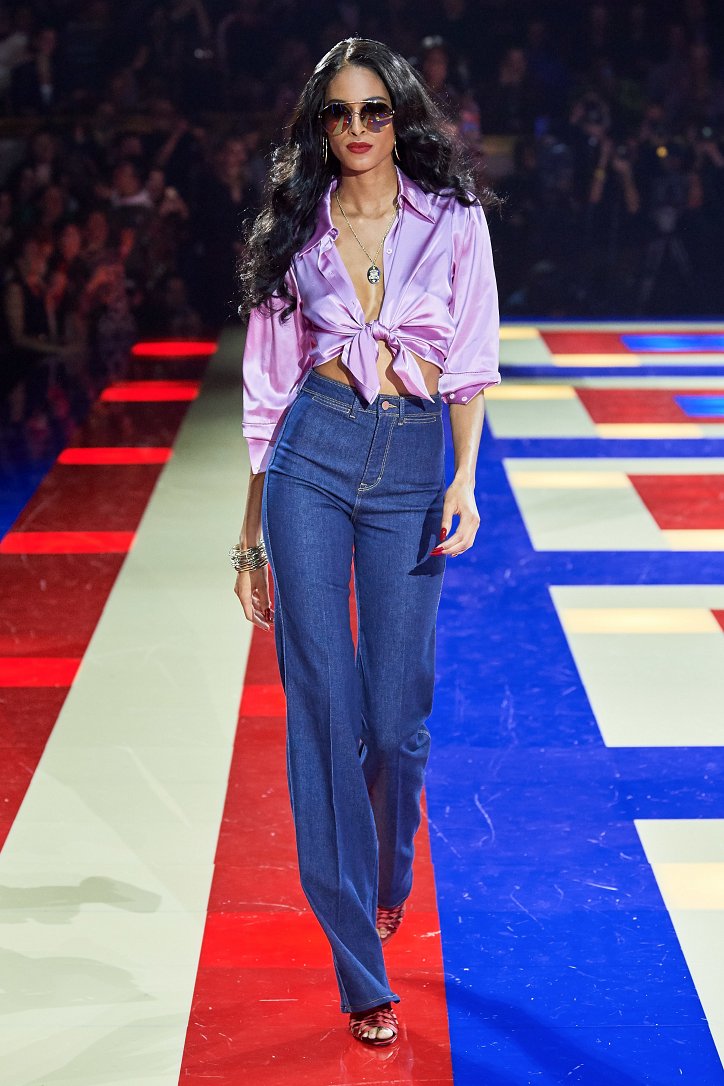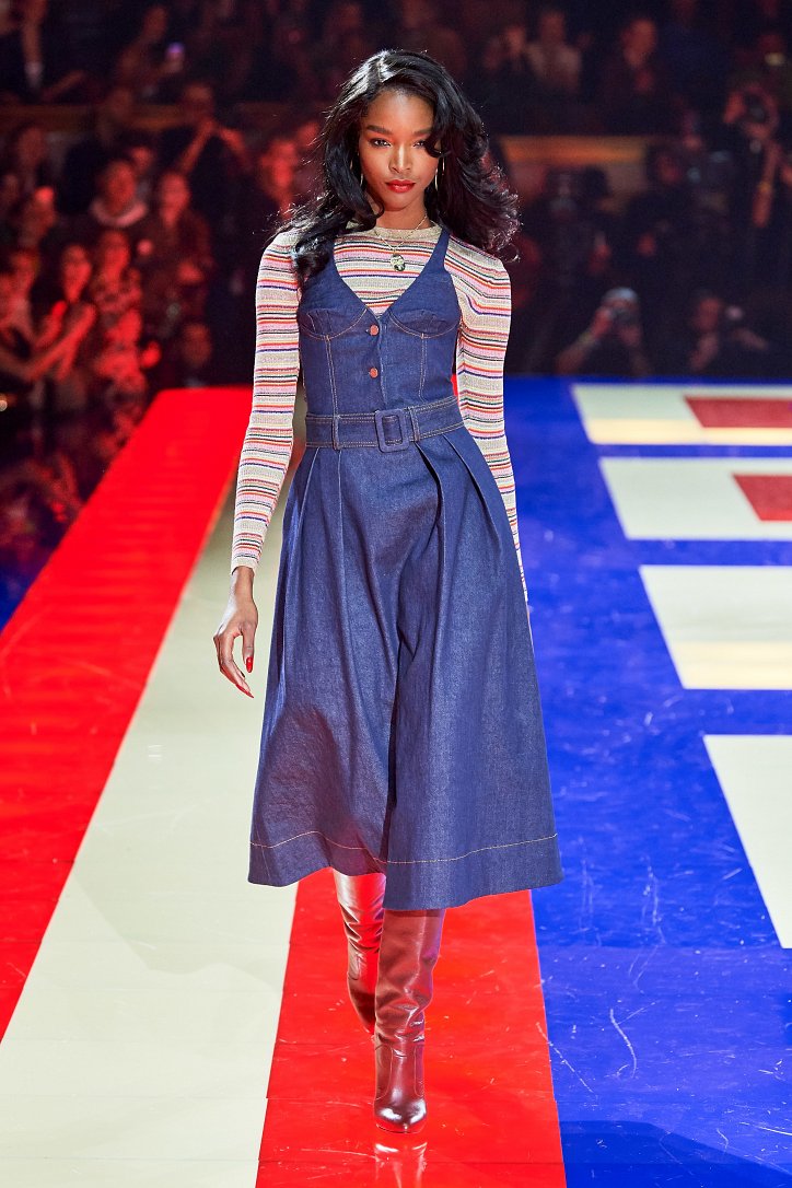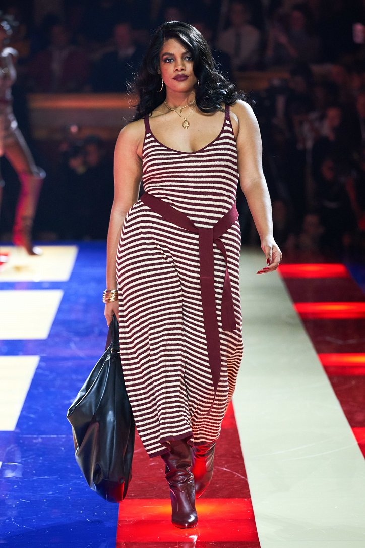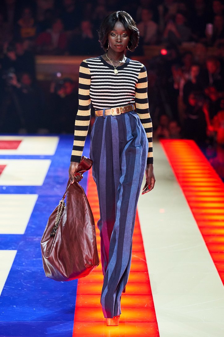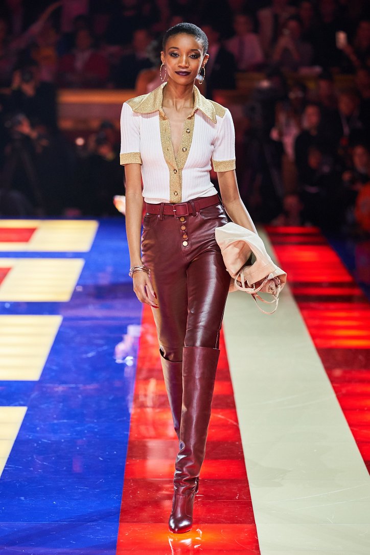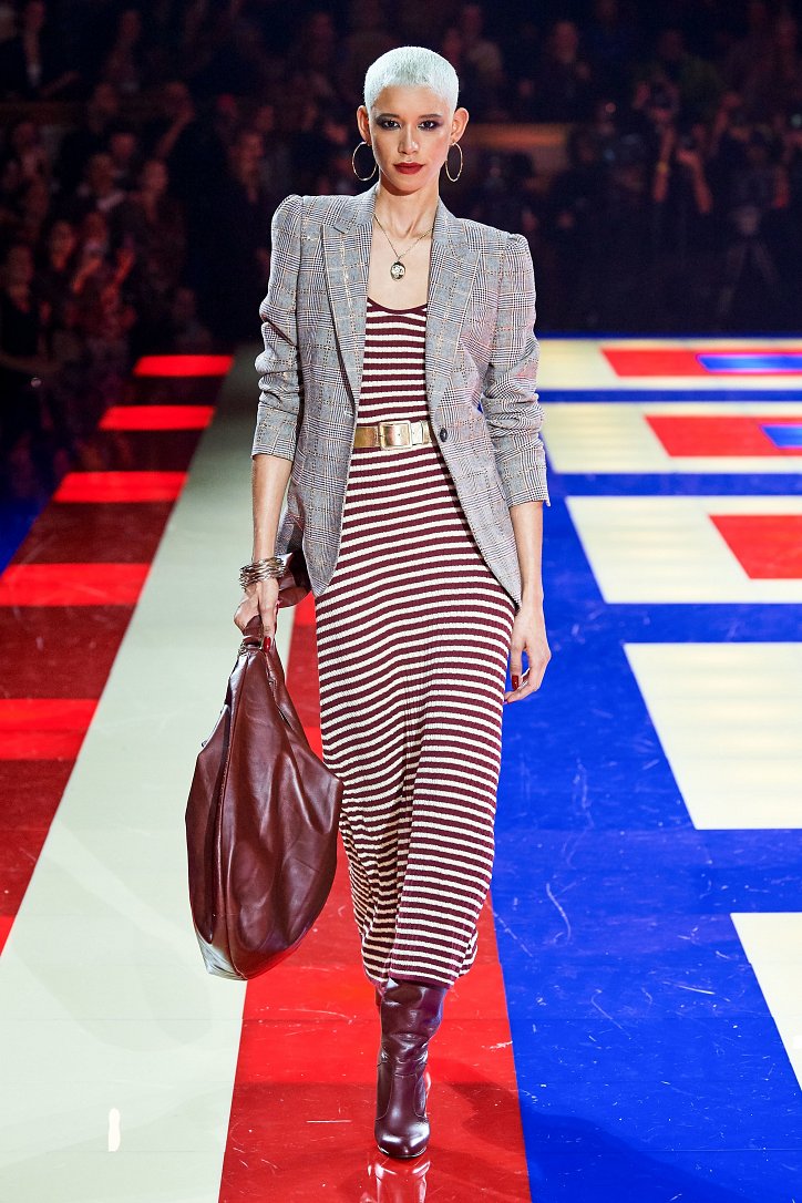 Деним и люрекс, брюки клеш и полосатый трикотаж, кожаные пальто и футболки-поло, клетчатые костюмы и обувь на высокой платформе – на подиуме вновь эстетика 70-ых. Новая коллекция Tommy Hilfiger, созданная американским дизайнером в сотрудничестве с певицей и актрисой Zendaya, выглядела не просто ярко – он буквально ослепляла! И не только блеском тканей: к «звездопаду» моделей сегодняшнего подиума добавили сияния и звезды эпохи семидесятых.