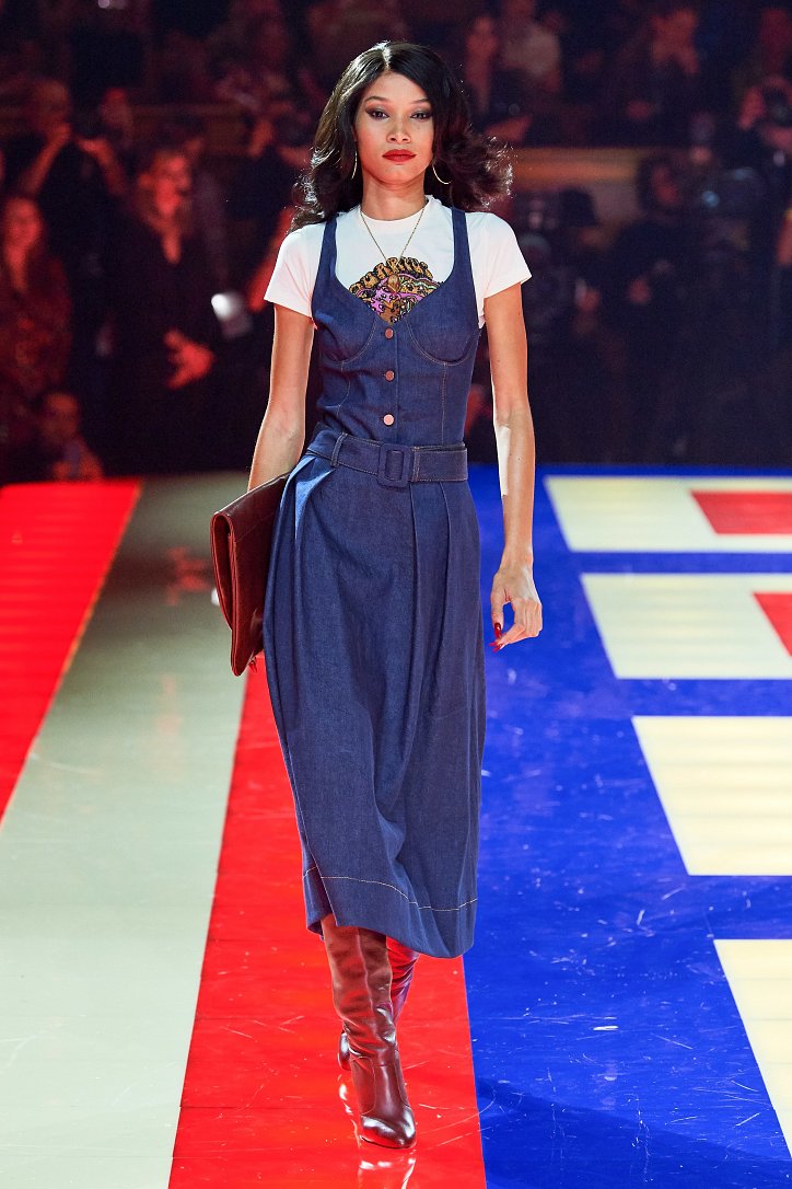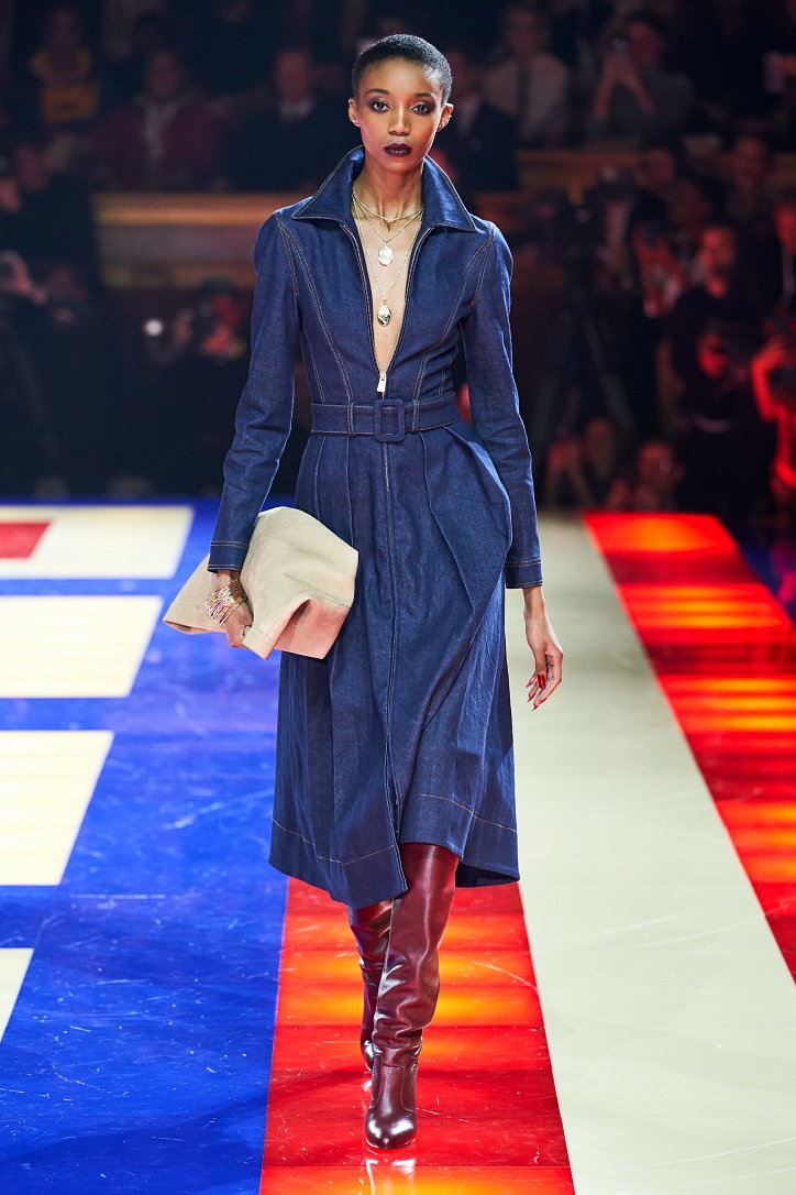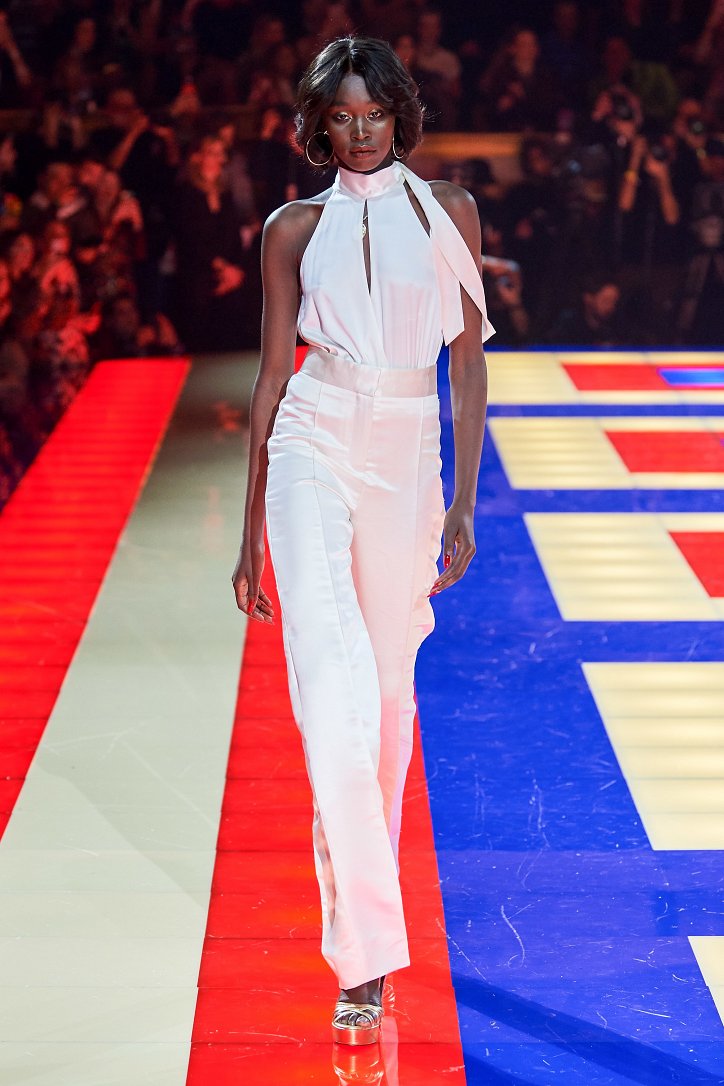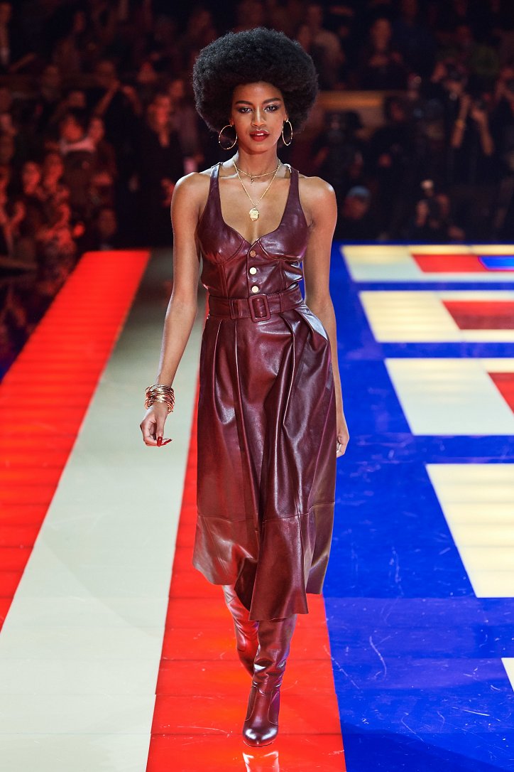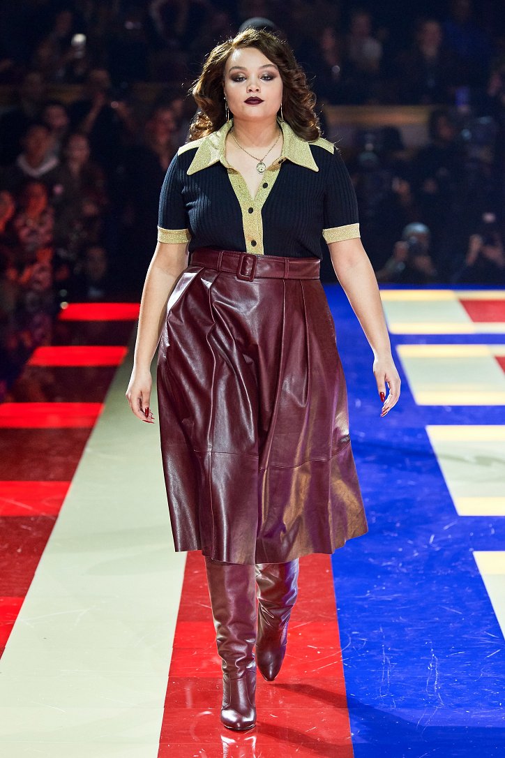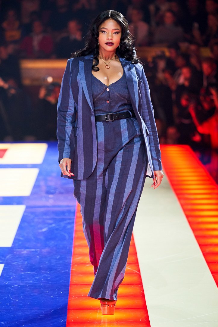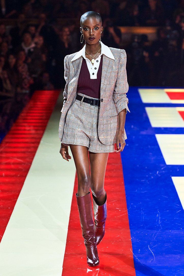 Деним и люрекс, брюки клеш и полосатый трикотаж, кожаные пальто и футболки-поло, клетчатые костюмы и обувь на высокой платформе – на подиуме вновь эстетика 70-ых. Новая коллекция Tommy Hilfiger, созданная американским дизайнером в сотрудничестве с певицей и актрисой Zendaya, выглядела не просто ярко – он буквально ослепляла! И не только блеском тканей: к «звездопаду» моделей сегодняшнего подиума добавили сияния и звезды эпохи семидесятых.