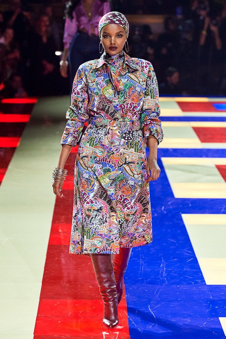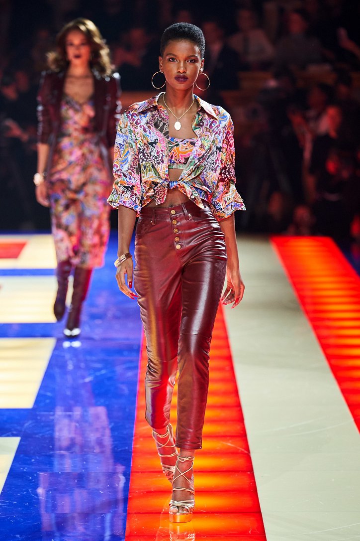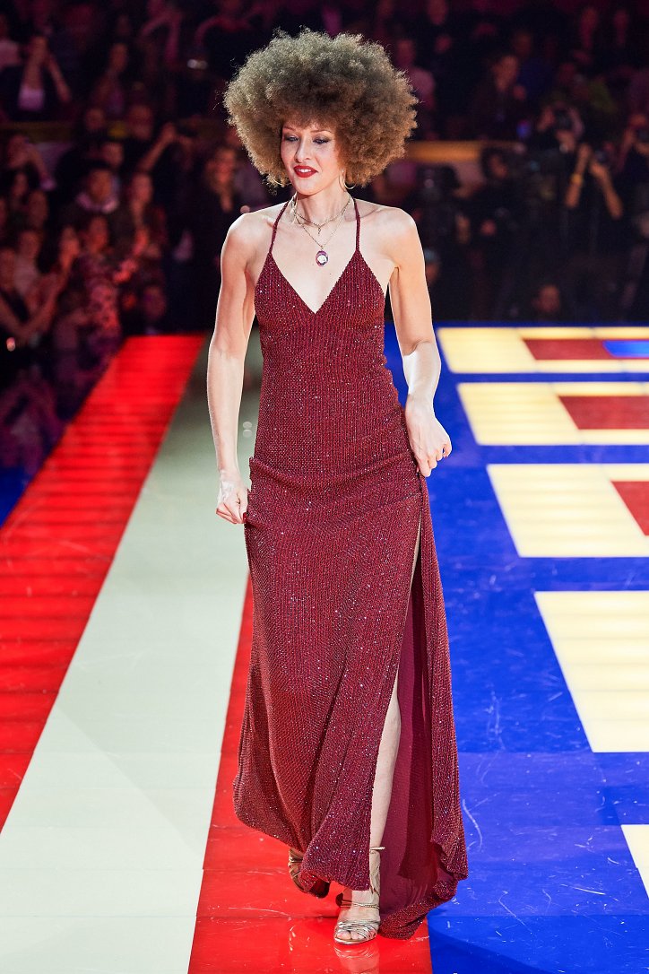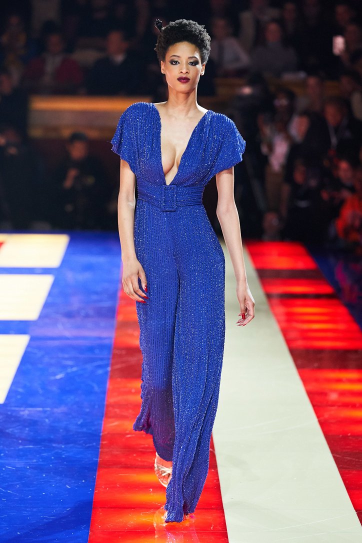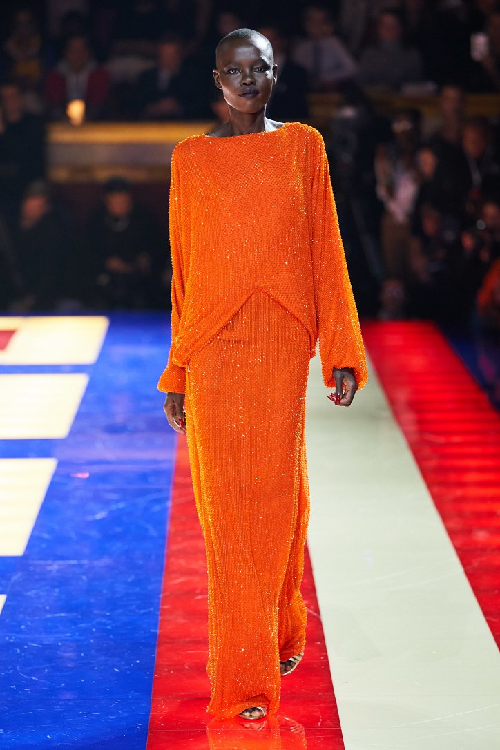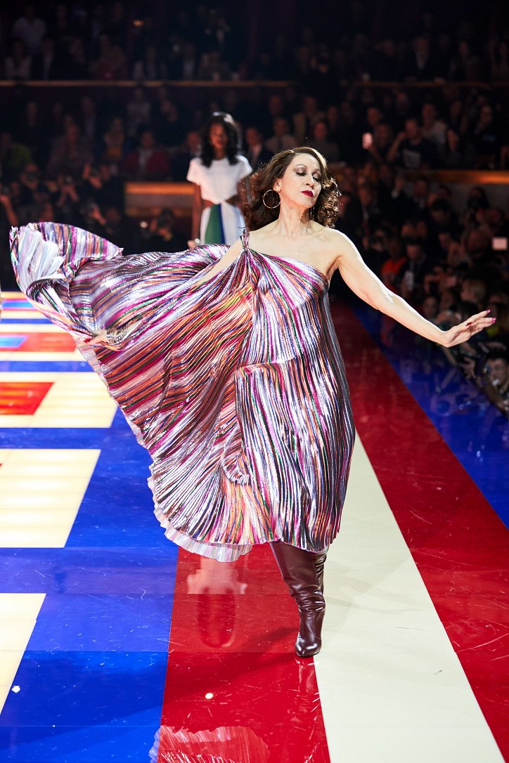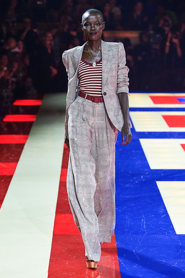 Деним и люрекс, брюки клеш и полосатый трикотаж, кожаные пальто и футболки-поло, клетчатые костюмы и обувь на высокой платформе – на подиуме вновь эстетика 70-ых. Новая коллекция Tommy Hilfiger, созданная американским дизайнером в сотрудничестве с певицей и актрисой Zendaya, выглядела не просто ярко – он буквально ослепляла! И не только блеском тканей: к «звездопаду» моделей сегодняшнего подиума добавили сияния и звезды эпохи семидесятых.