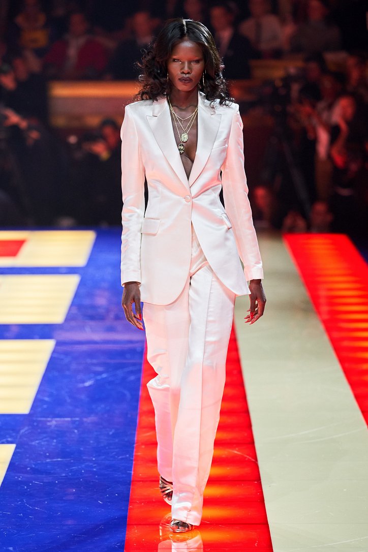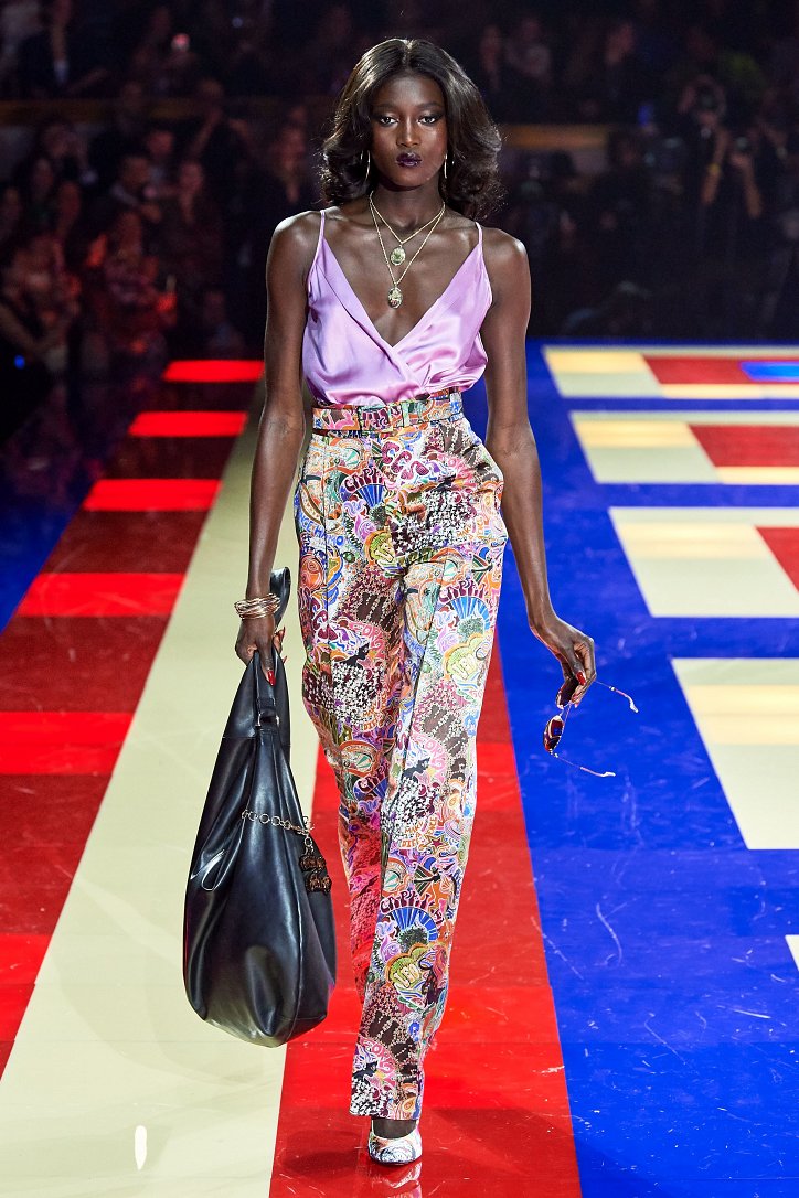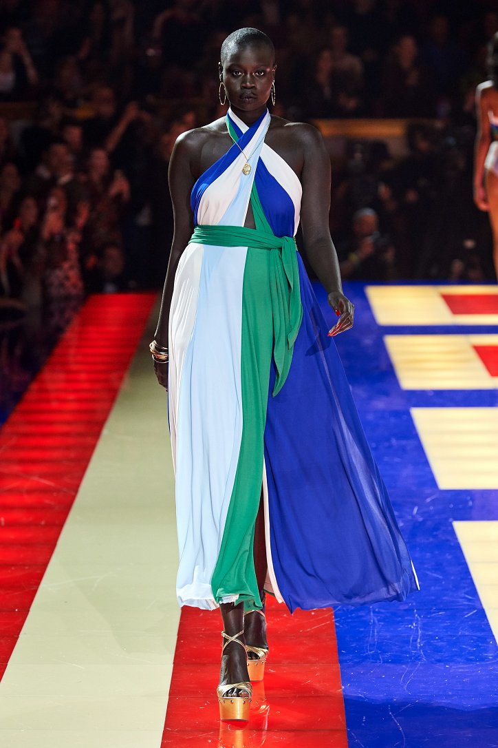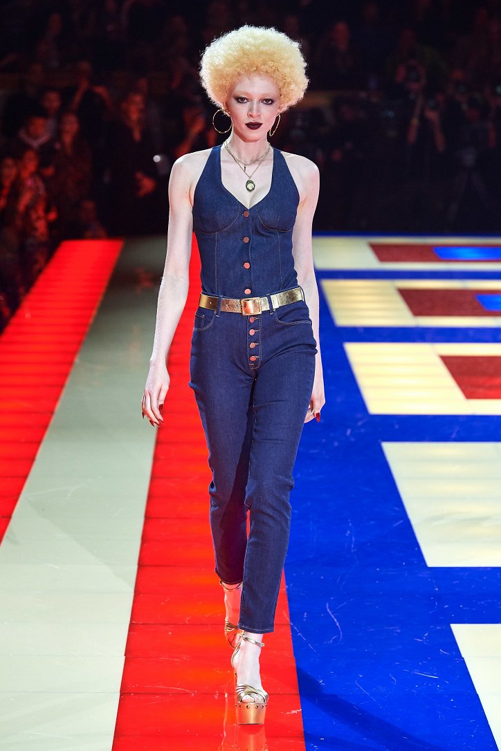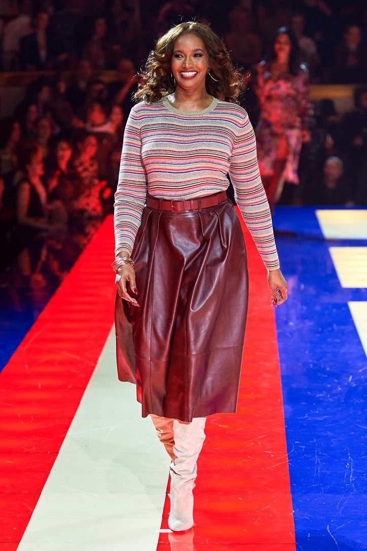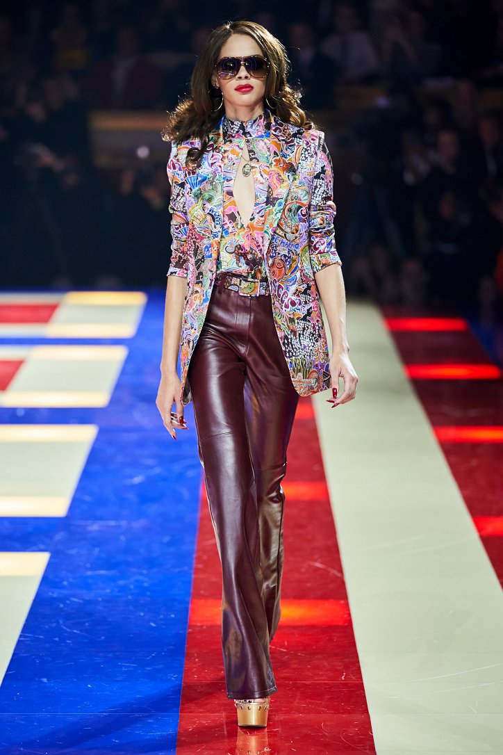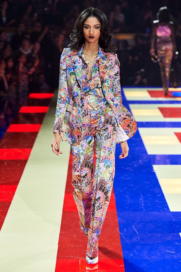 Деним и люрекс, брюки клеш и полосатый трикотаж, кожаные пальто и футболки-поло, клетчатые костюмы и обувь на высокой платформе – на подиуме вновь эстетика 70-ых. Новая коллекция Tommy Hilfiger, созданная американским дизайнером в сотрудничестве с певицей и актрисой Zendaya, выглядела не просто ярко – он буквально ослепляла! И не только блеском тканей: к «звездопаду» моделей сегодняшнего подиума добавили сияния и звезды эпохи семидесятых.