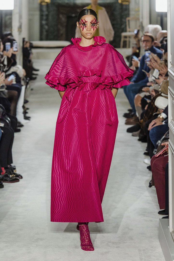Кутюрная коллекция Valentino настолько растрогала Селин Дион, что та едва смогла сдержать слезы, а после показа певица, поздравляя Пьерпаоло Пиччоли, отметила, что он вернул женщинам красоту. Коллекция была действительно прекрасна: используя весь «язык couture» - оборки, рюши, бахрому, объем, цветы, вышивку, кружева – дизайнер создал потрясающие вечерние платья и необыкновенно яркий и красивый дневной гардероб.
