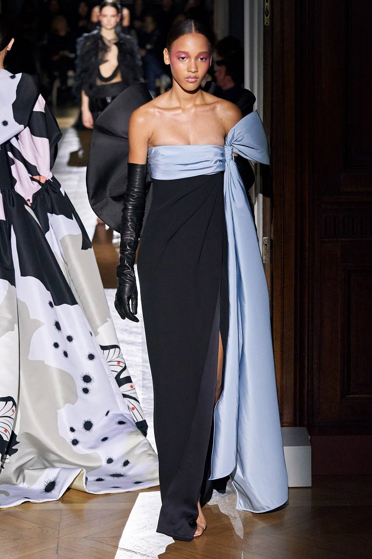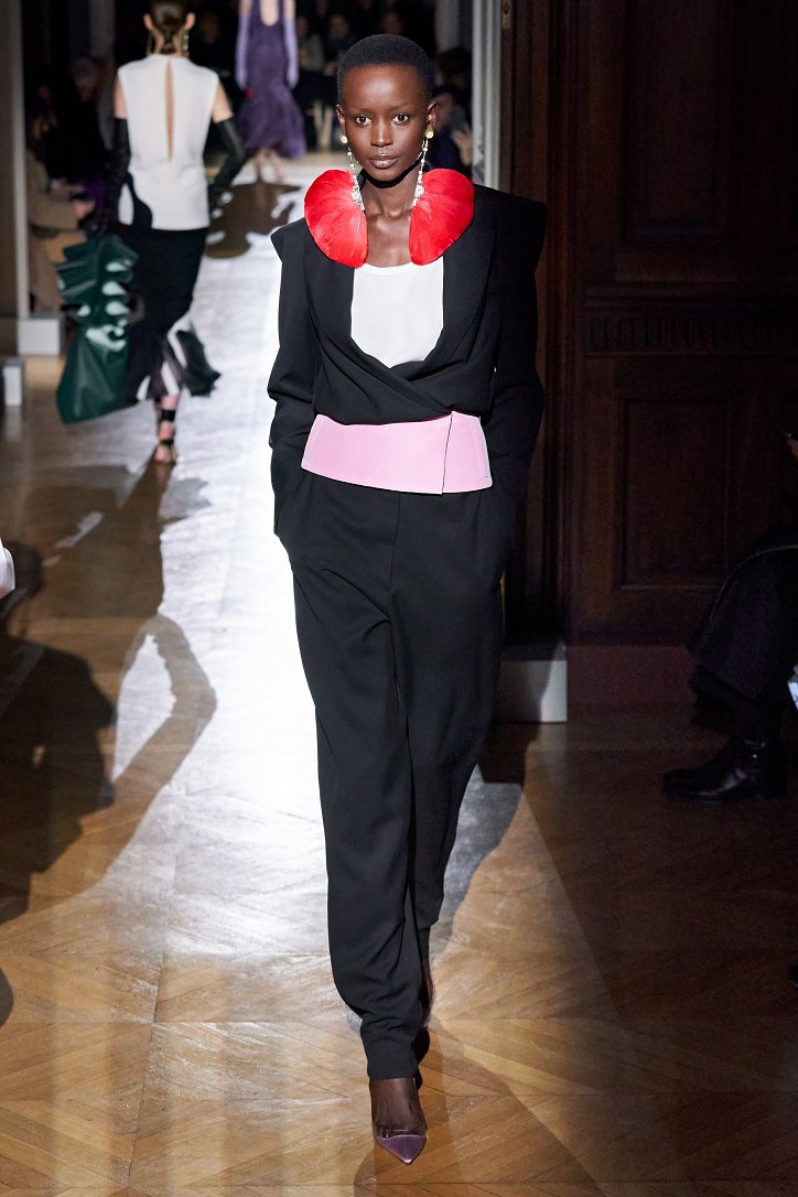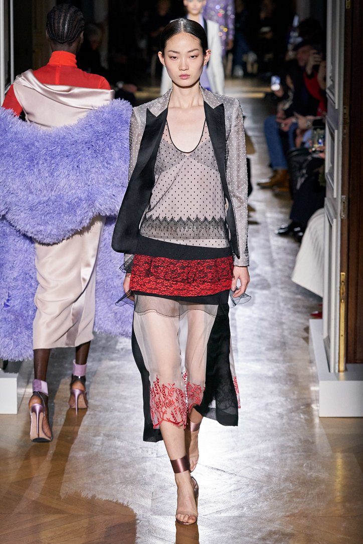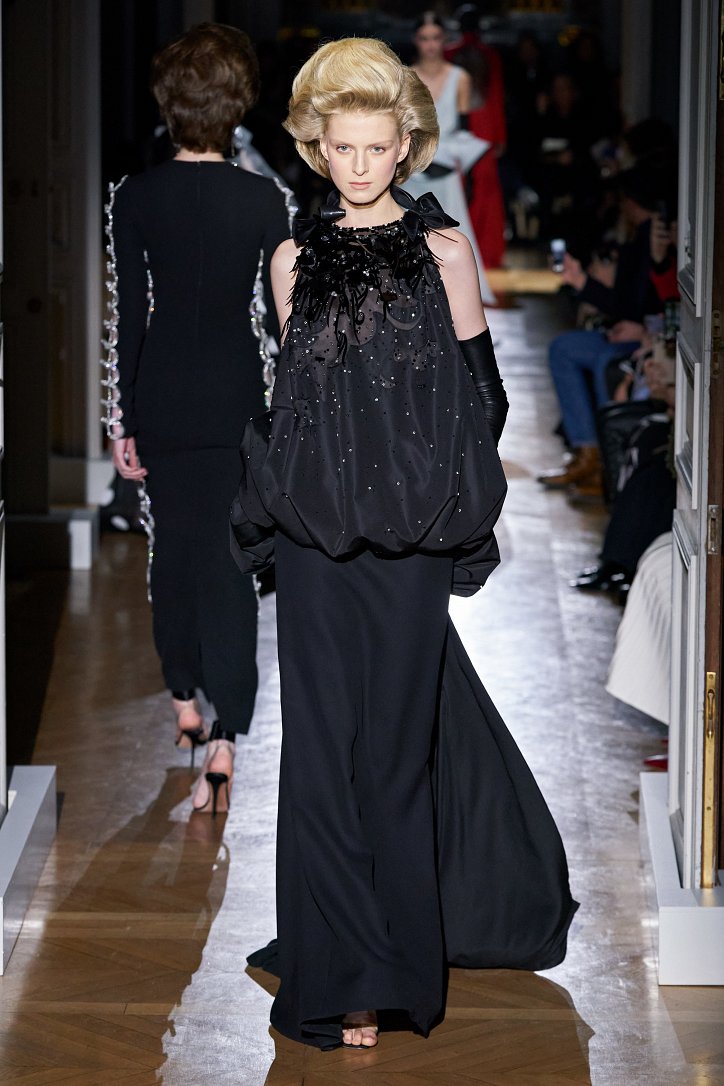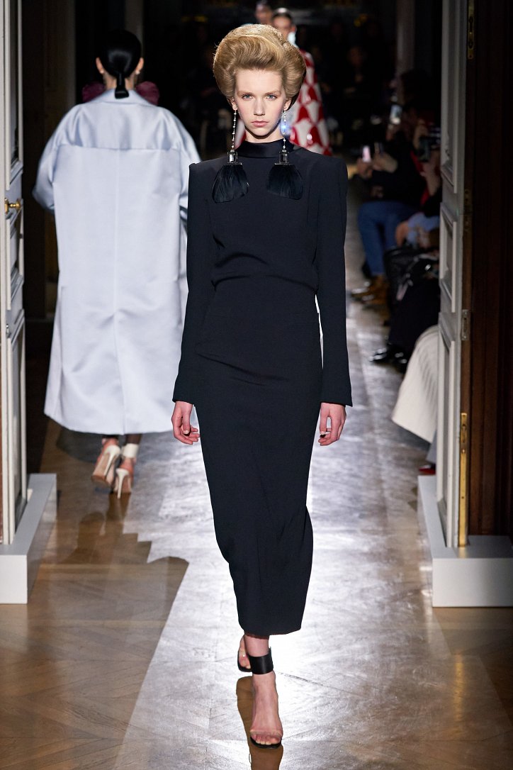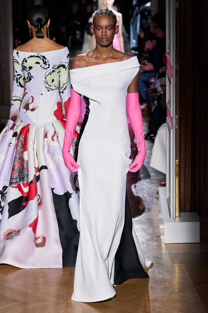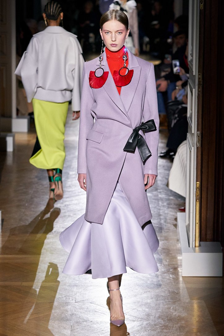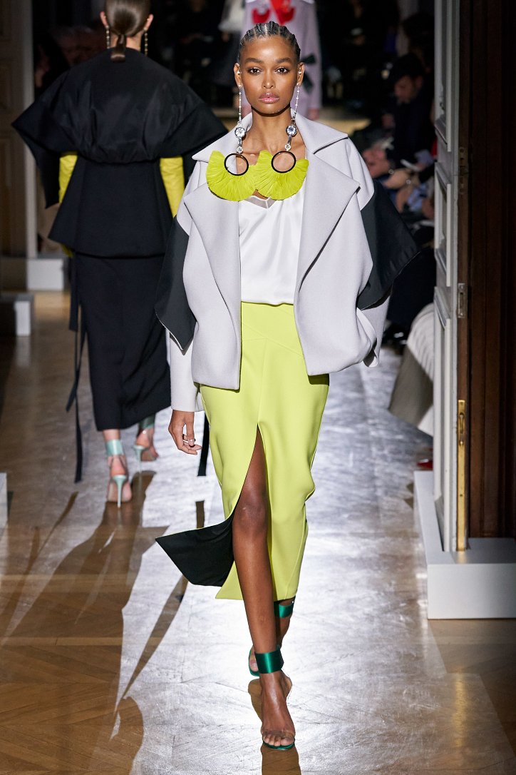 Пьерпаоло Пиччоли ищет новые силуэты. На смену уже привычными пышным платьям и объёмным силуэтам в новой коллекции Valentino пришли платья-русалки, напоминающие шаровары атласные брюки, длинные платья-бюстье с «монументальными» басками и модели с расклешенным низом. Но объем не исчез полностью – он просто изменил свою дислокацию. Пыщные банты на талии - в роли пояса, многочисленные воланы, полностью покрывающие юбку, объёмные топы, незаметно соединённые с пышными юбками – и все это в «фирменных» ярких цветах и принтах, которые уже стали визитной карточкой дома моды. Помимо главного цвета Valentino – красного – в палитру коллекции дизайнер включил оттенки фиолетового, шартрез, розовый, мятный, синий и, конечно же, черный и белый – свобода самовыражения «по Пиччоли» всегда окрашена в яркие и смелые краски.