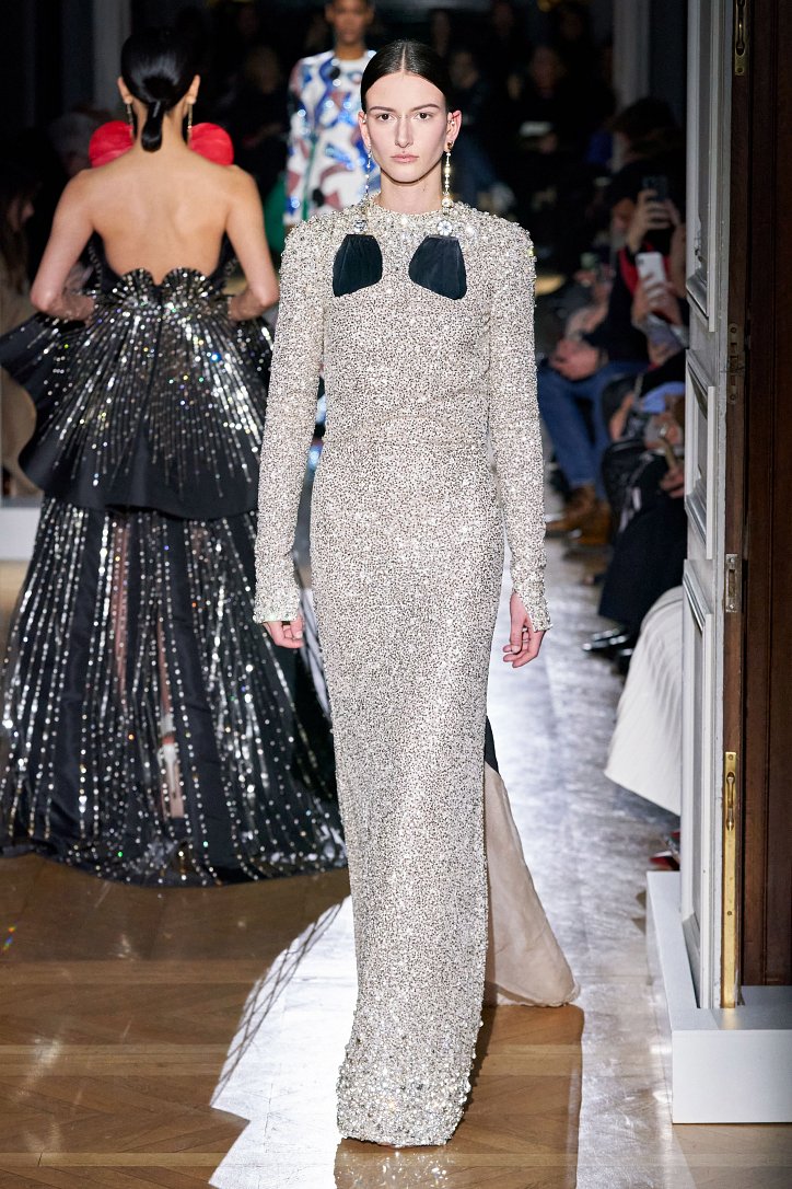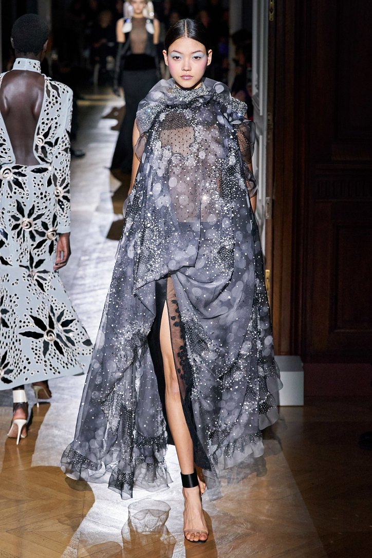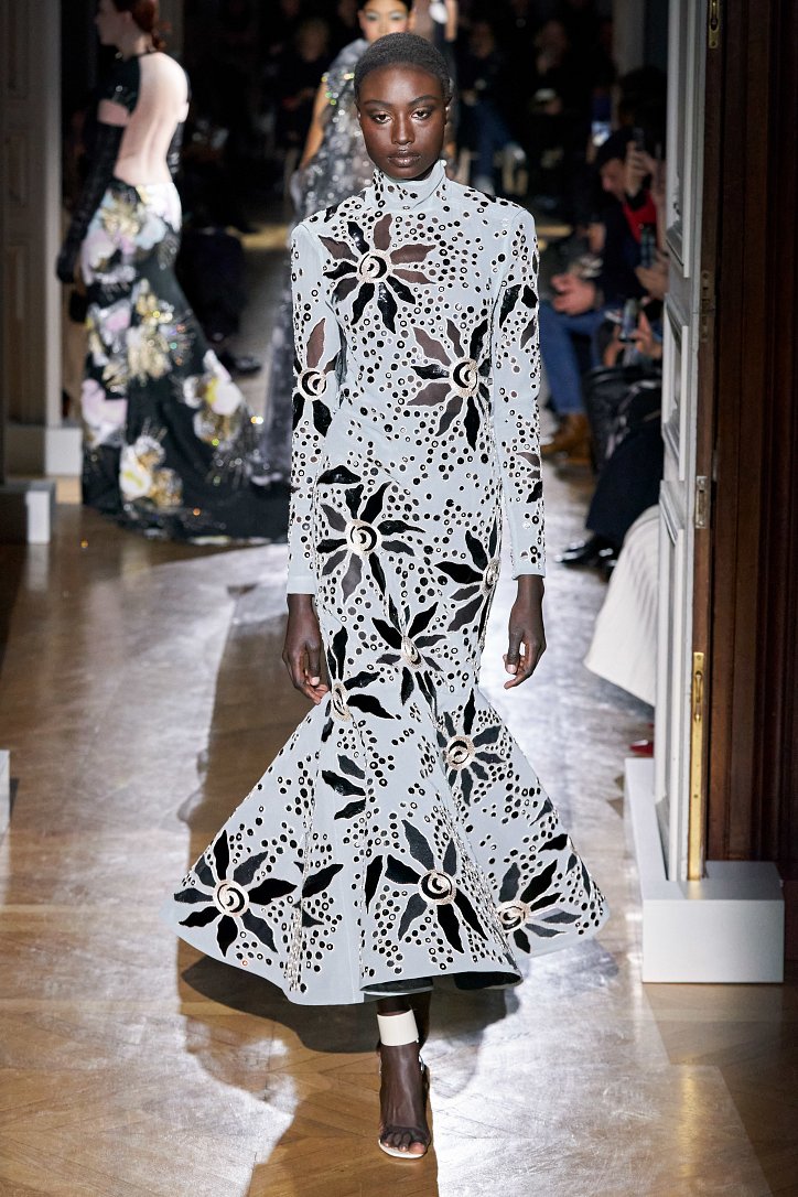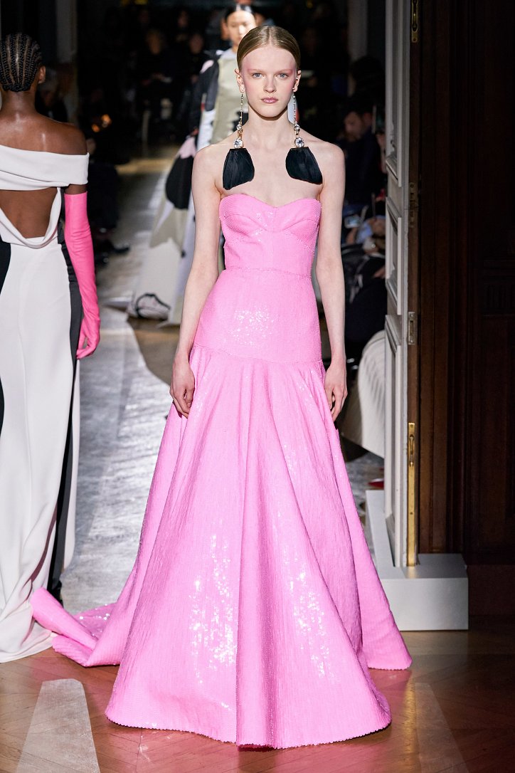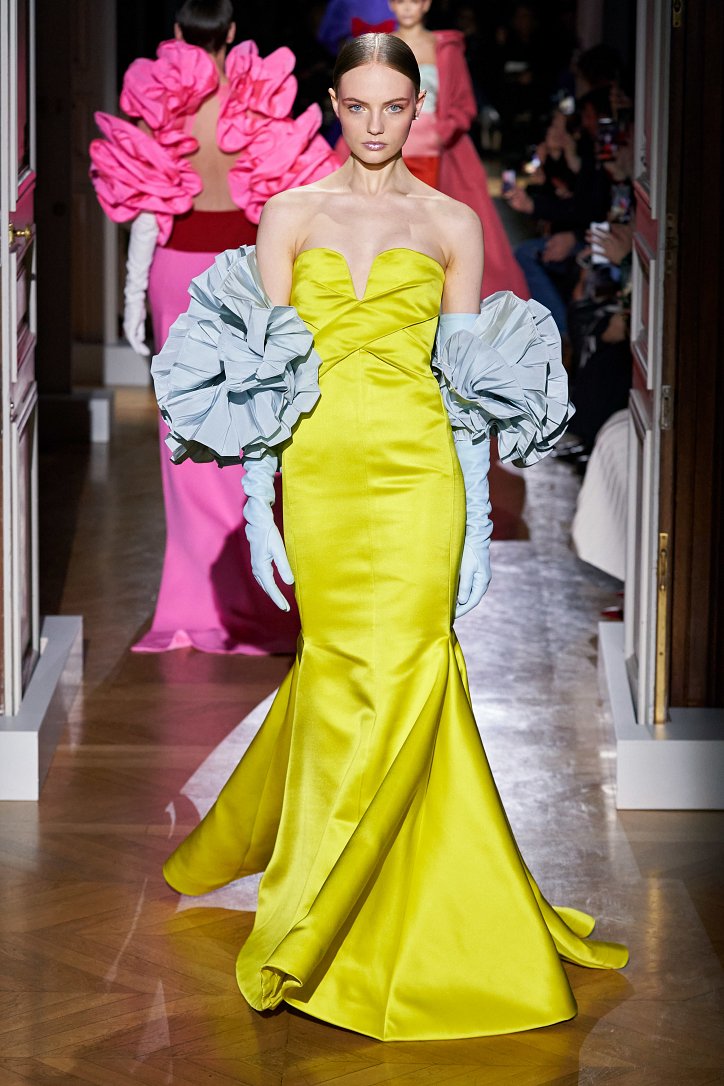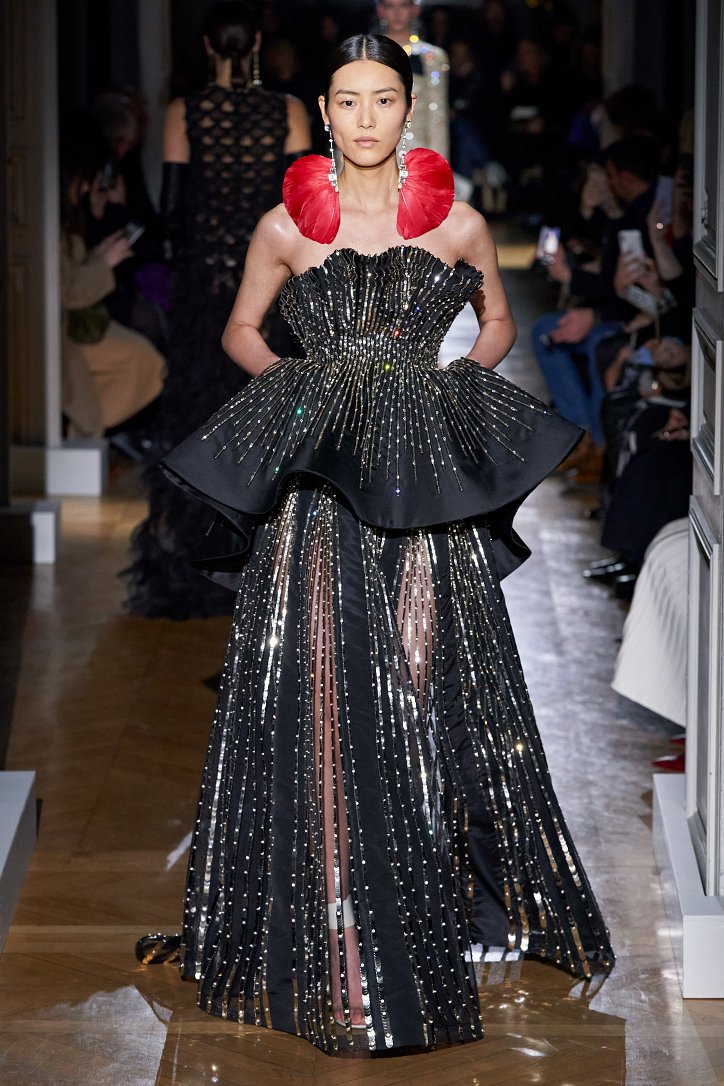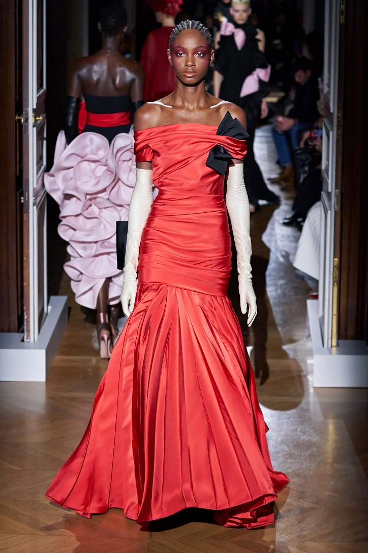 Пьерпаоло Пиччоли ищет новые силуэты. На смену уже привычными пышным платьям и объёмным силуэтам в новой коллекции Valentino пришли платья-русалки, напоминающие шаровары атласные брюки, длинные платья-бюстье с «монументальными» басками и модели с расклешенным низом. Но объем не исчез полностью – он просто изменил свою дислокацию. Пыщные банты на талии - в роли пояса, многочисленные воланы, полностью покрывающие юбку, объёмные топы, незаметно соединённые с пышными юбками – и все это в «фирменных» ярких цветах и принтах, которые уже стали визитной карточкой дома моды. Помимо главного цвета Valentino – красного – в палитру коллекции дизайнер включил оттенки фиолетового, шартрез, розовый, мятный, синий и, конечно же, черный и белый – свобода самовыражения «по Пиччоли» всегда окрашена в яркие и смелые краски.